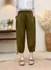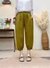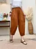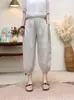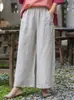 Pantalones Haren de lino con encaje de calidad para mujer, estilo coreano, holgados, adelgazantes, de pierna ancha, informales, de verano 2024