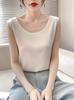 Nueva camiseta de verano a la moda que combina con todo, limpia, agradable para la piel, fresca, sin mangas, de acetato satinado, con cuello redondo bajo para mujer