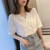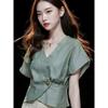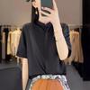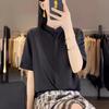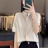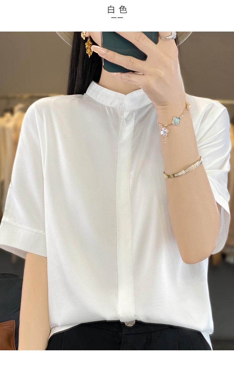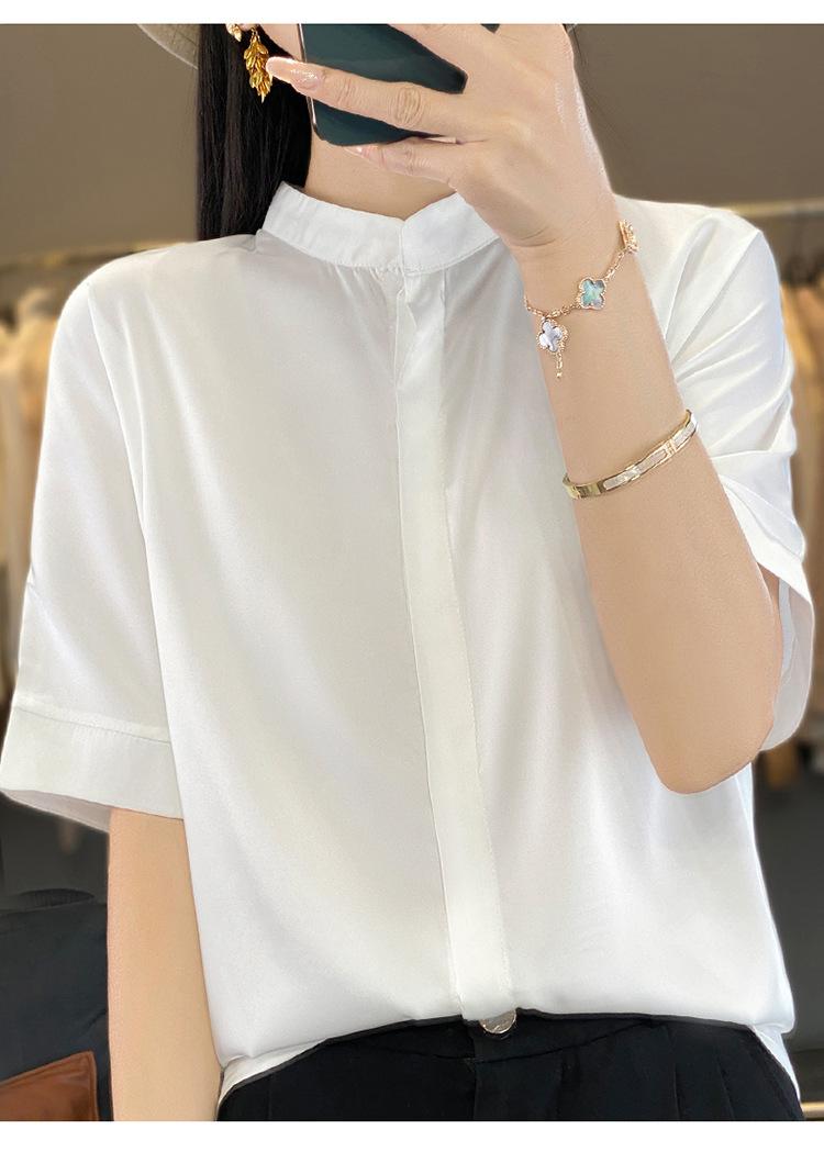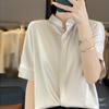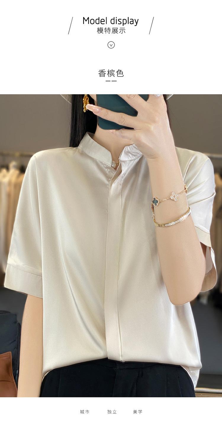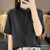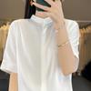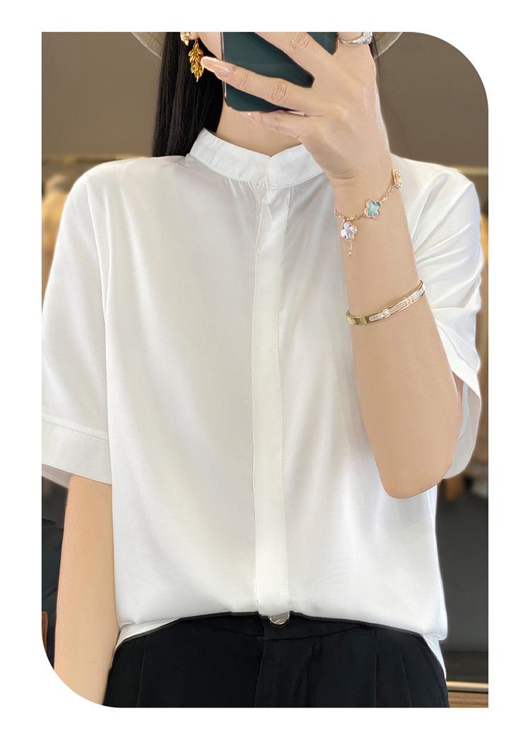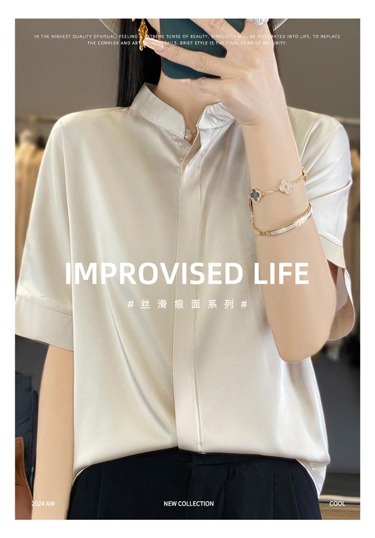 Primavera y Verano 2024 Nueva Camisa Camiseta de Manga Corta para Mujer Cuello Vertical Satén de Acetato Elegante Simple Holgada Top para Uso Exterior