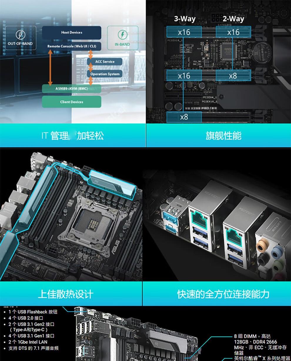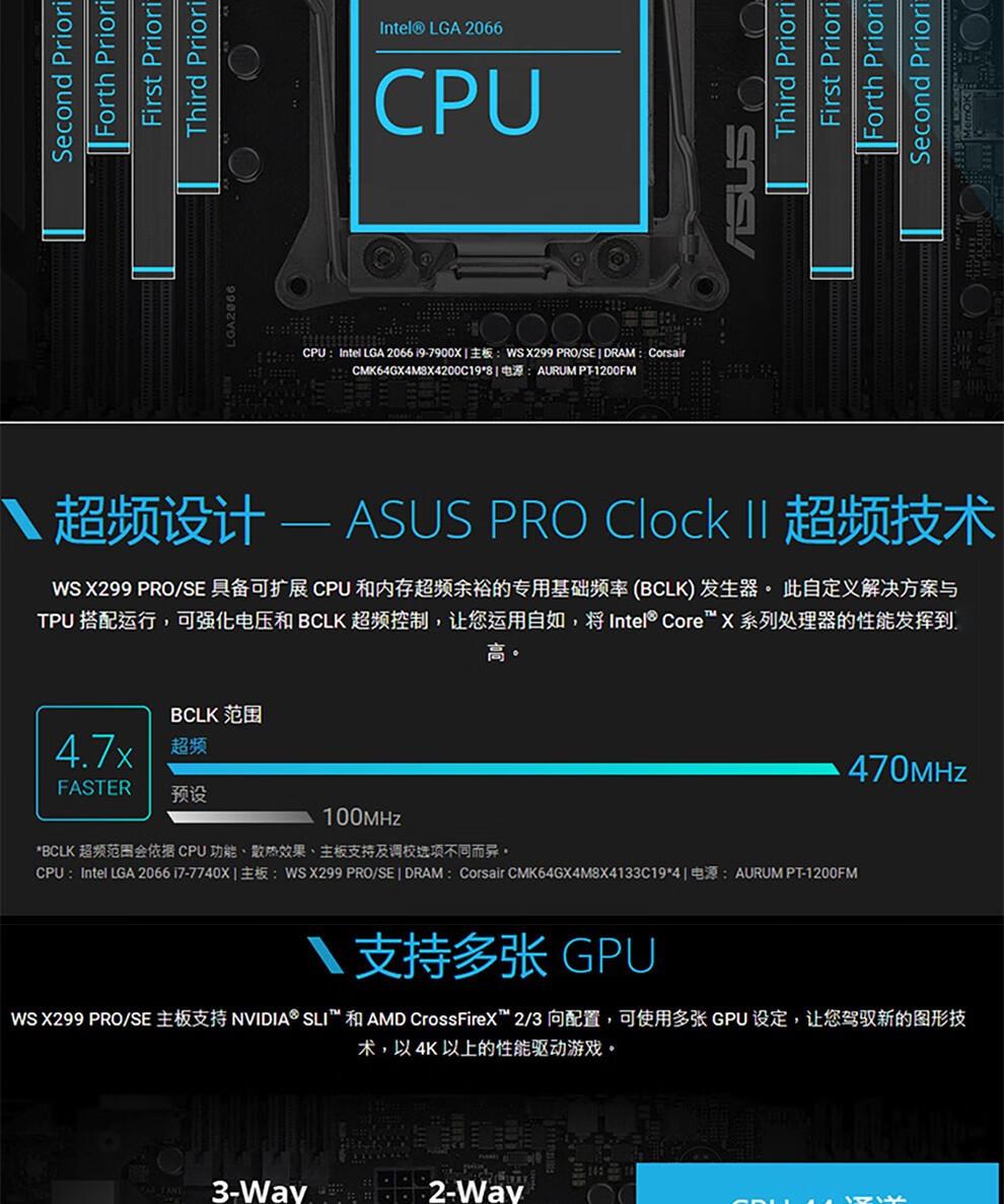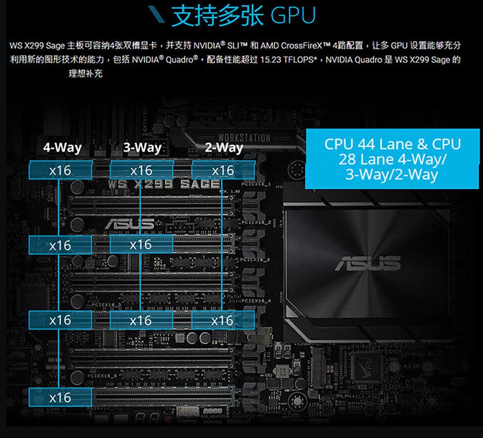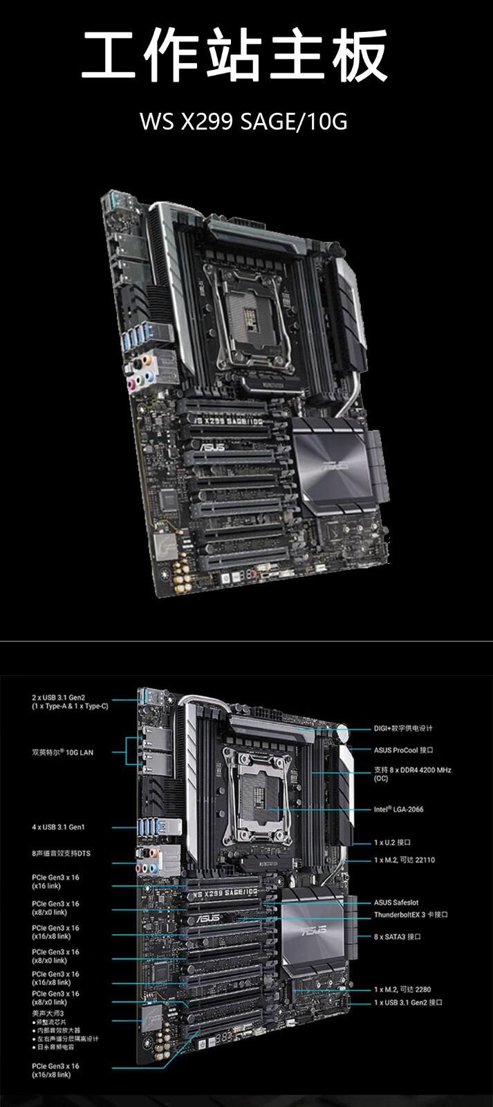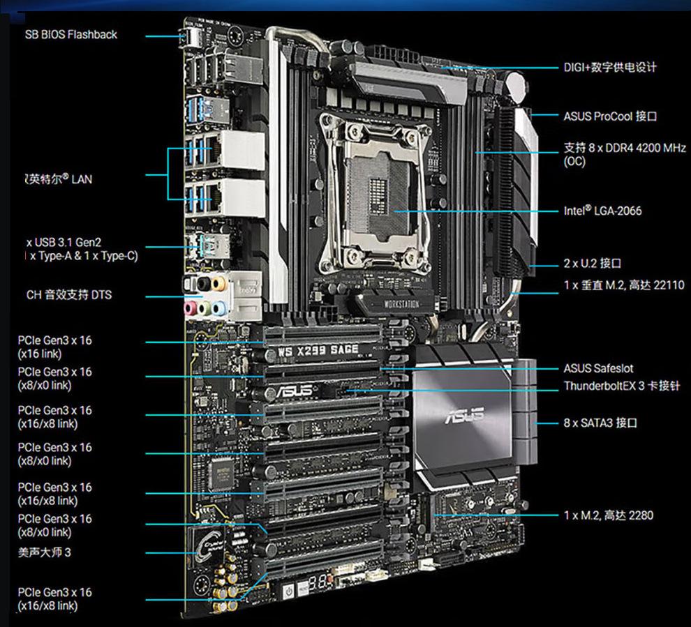 Estación de trabajo aplicable: la placa base Intel Asus WS X299 PRO admite tarjetas duales Crossfire de velocidad completa doble mil
