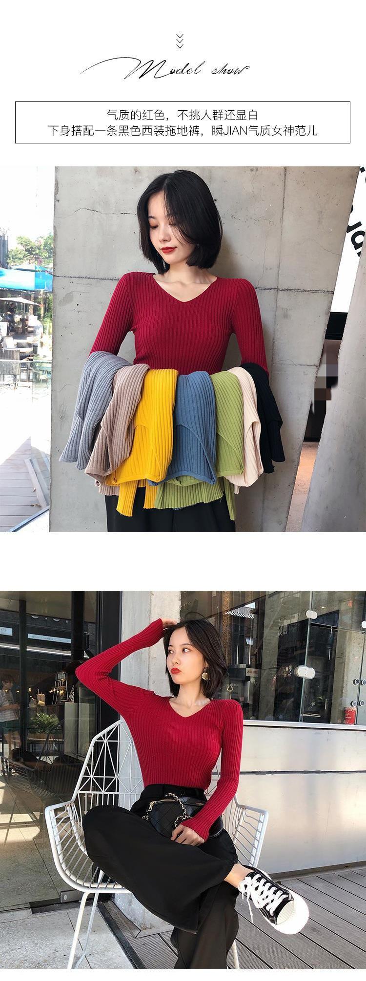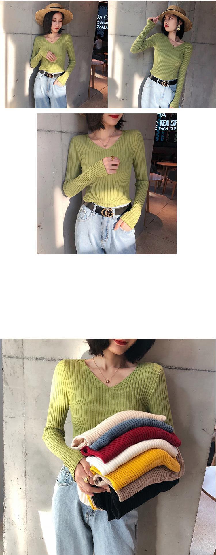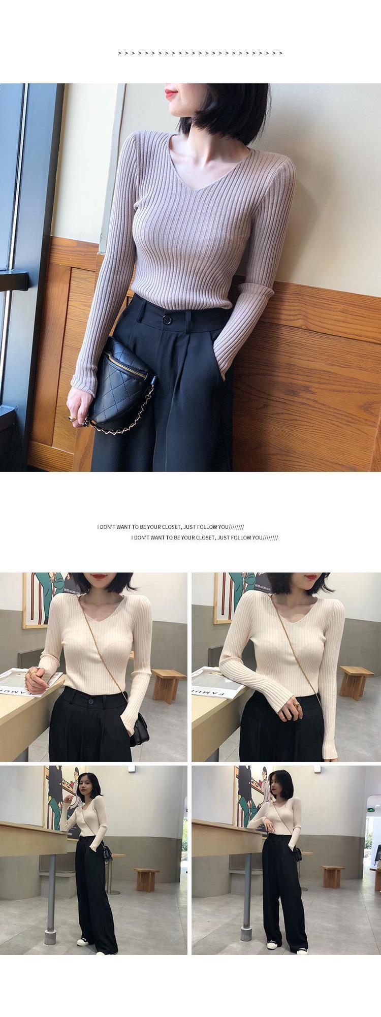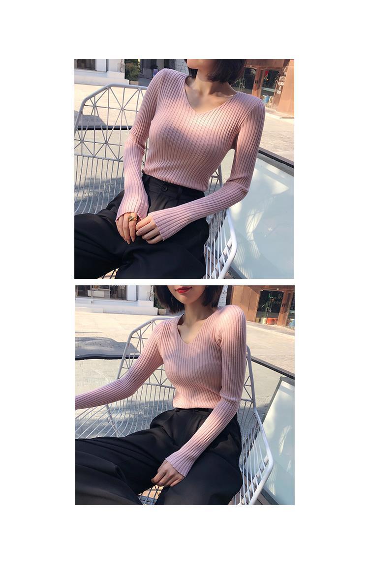 Suéter de Buena Calidad 2024 Ropa Exterior para Mujer Versátil Estilo Coreano Ajustado Cuello en V Jersey Tejido Camiseta de Fondo