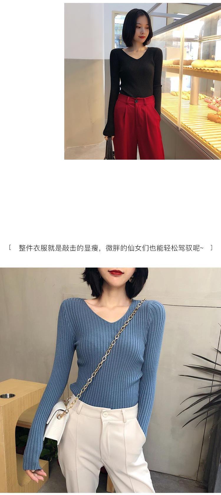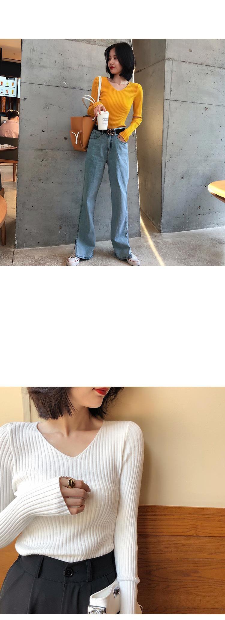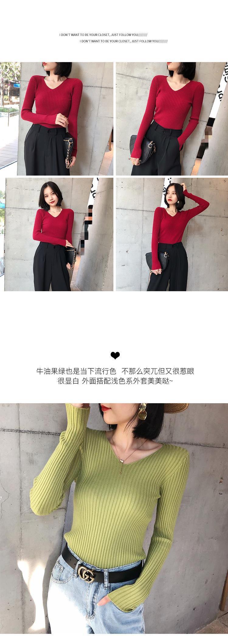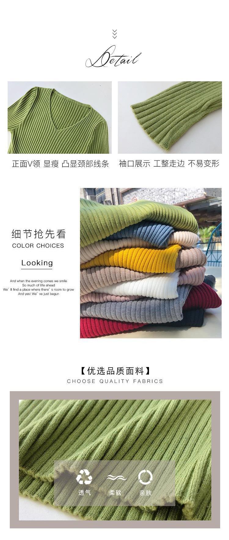 Suéter de Buena Calidad 2024 Ropa Exterior para Mujer Versátil Estilo Coreano Ajustado Cuello en V Jersey Tejido Camiseta de Fondo