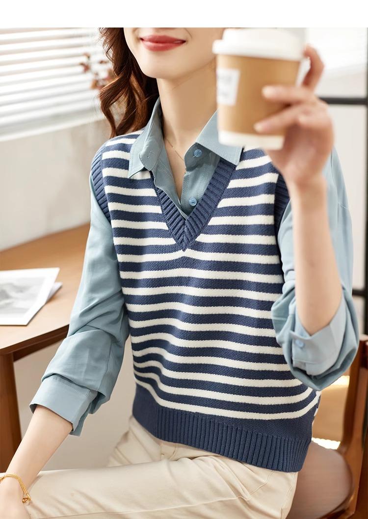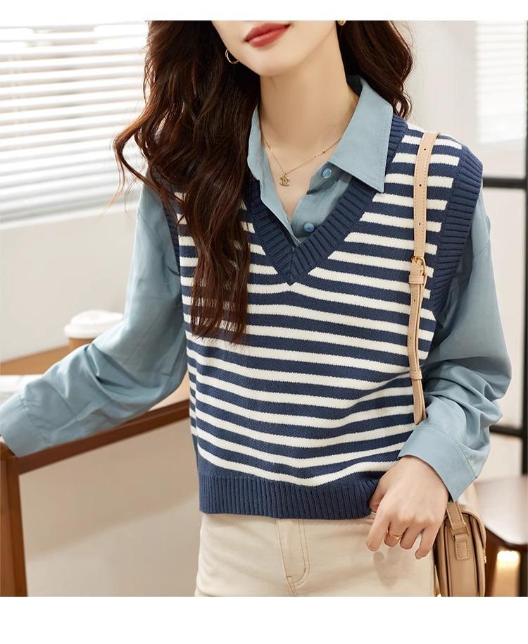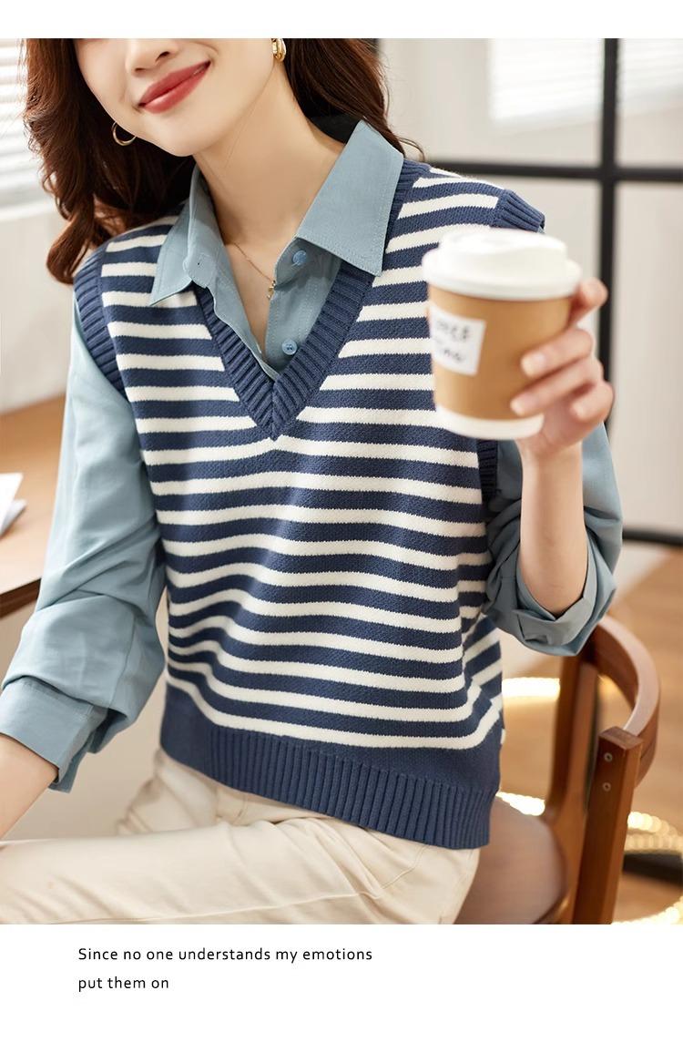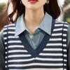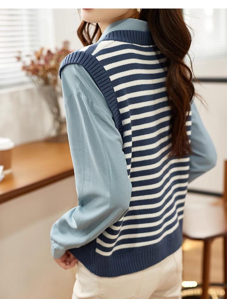 Chaleco Rayado Ropa de Primavera Temprana para Mujer 2024 Primavera Nuevo Estilo Chaleco para Mujer Ropa Reductora de Edad Tops Elegantes