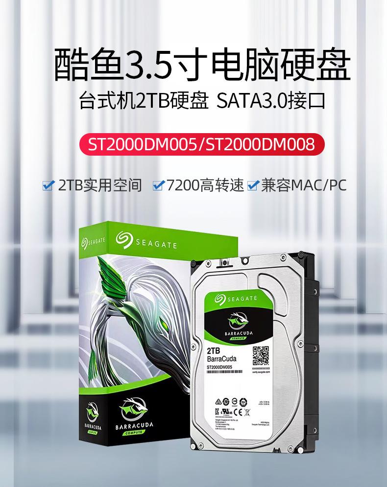 Adecuado para disco duro mecánico de computadora Seagate Desktop de 2 TB, disco duro Cool Fish de 3,5 pulgadas con interfaz SATA3.0