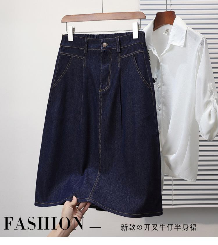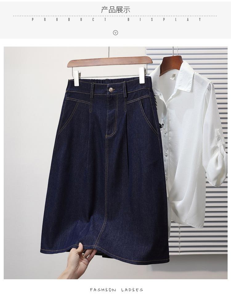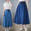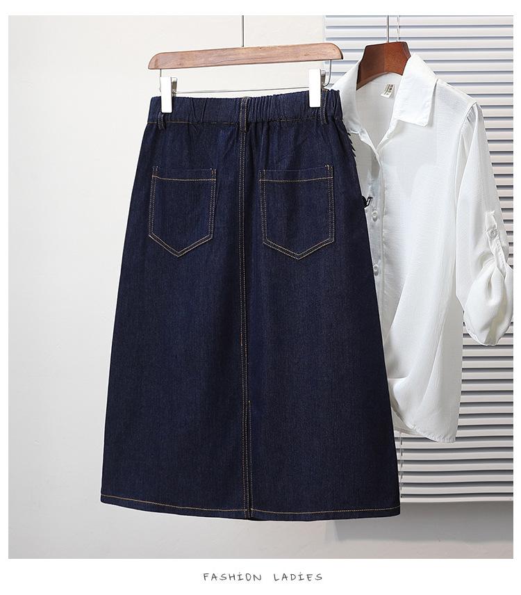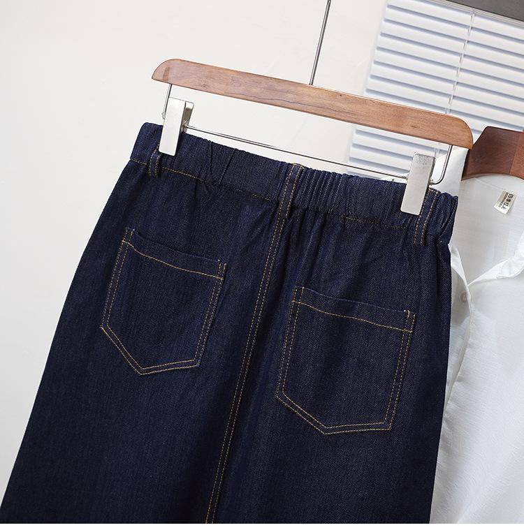 Falda vaquera de cintura alta, holgada, de longitud media, con cintura elástica, para verano de 2024, para mujeres gorditas.