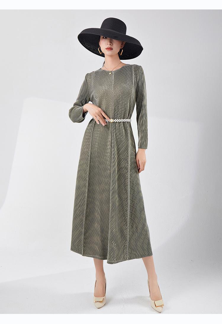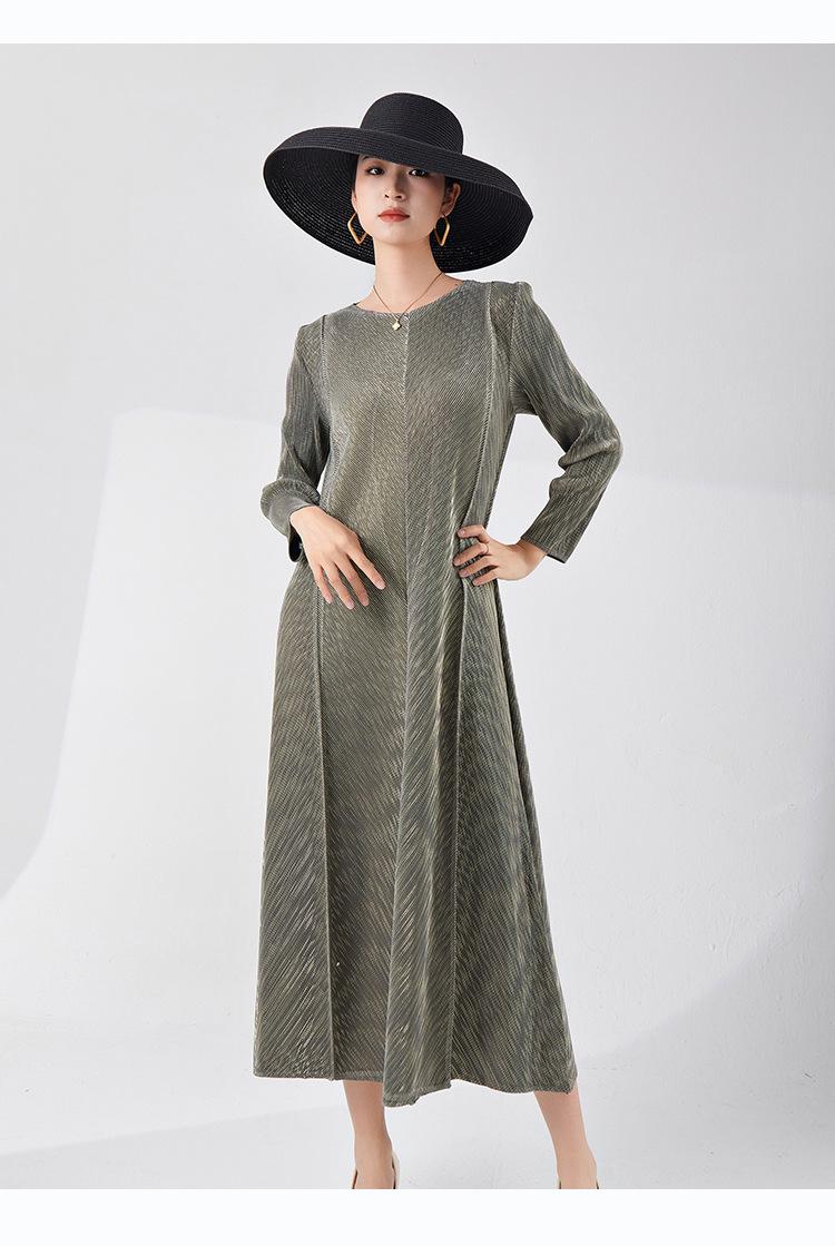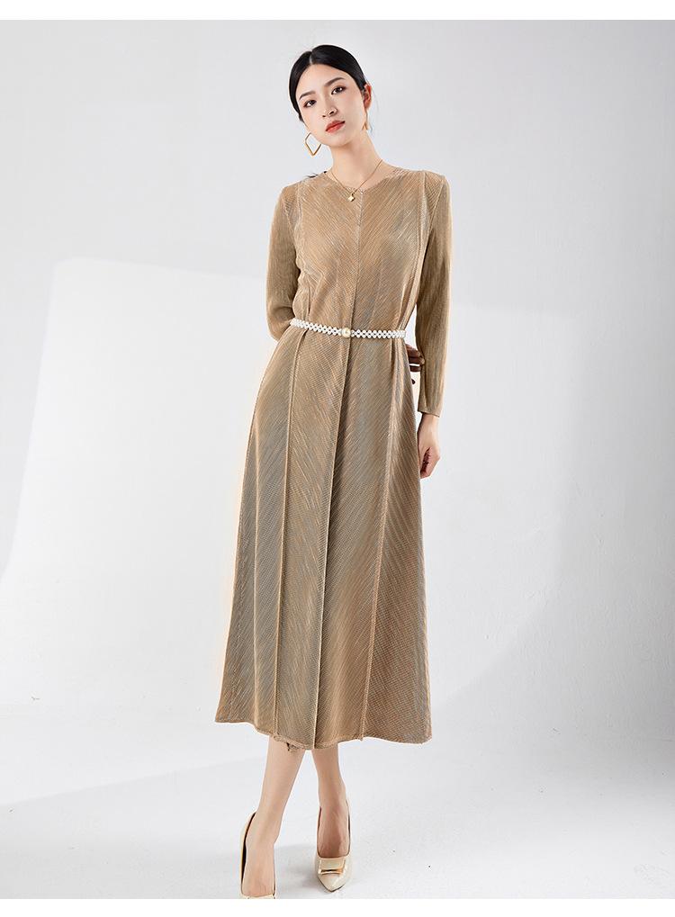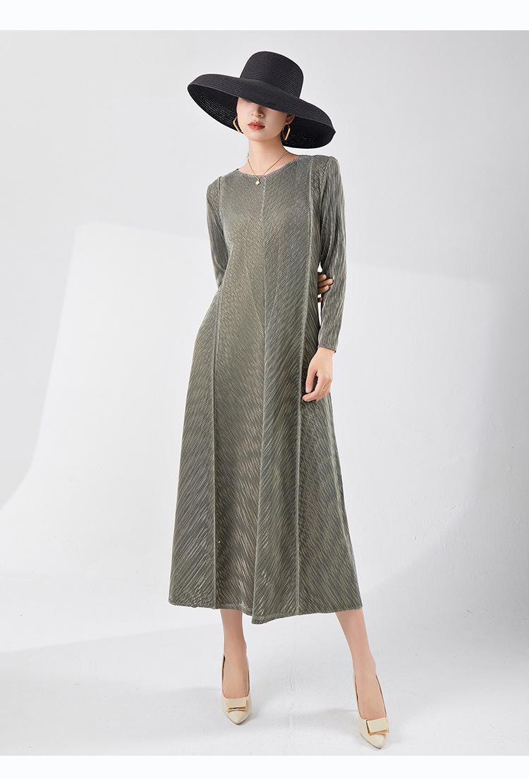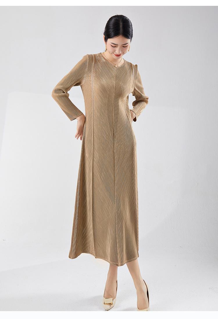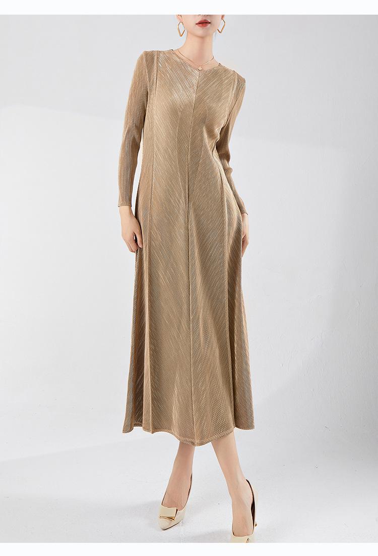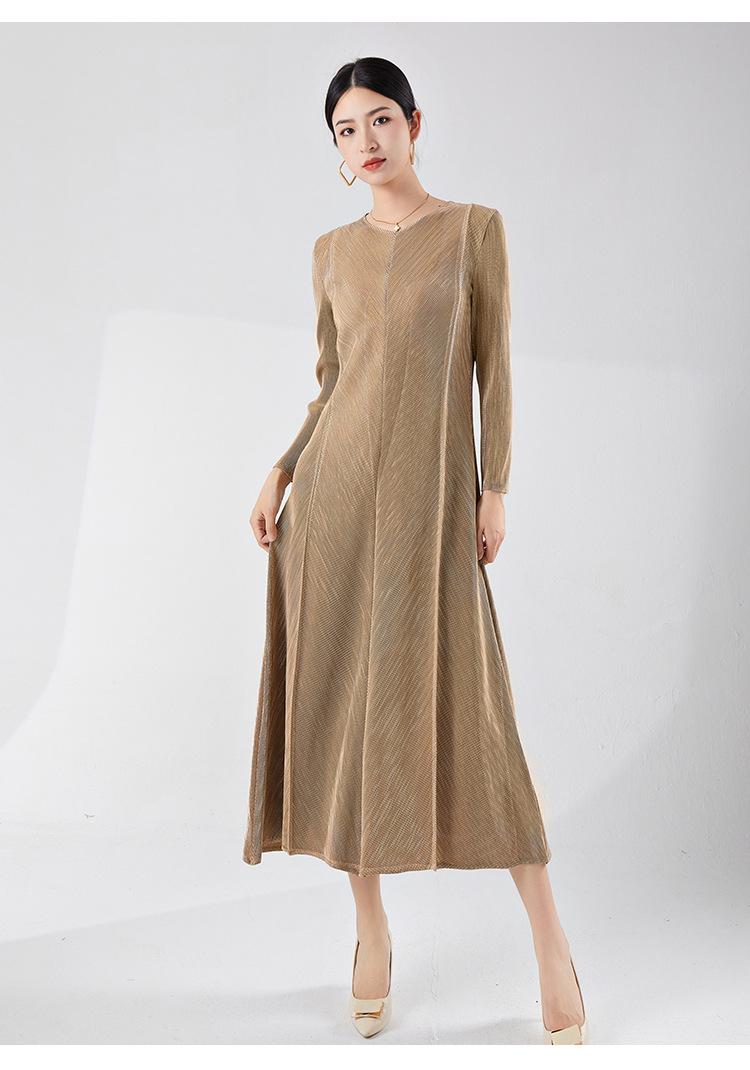 Vestido Miyake Primavera y Verano para Mujer Elegante Bronceado Manga Larga Holgado Adelgazante Look Elegante Elegante Vestido Falda Larga