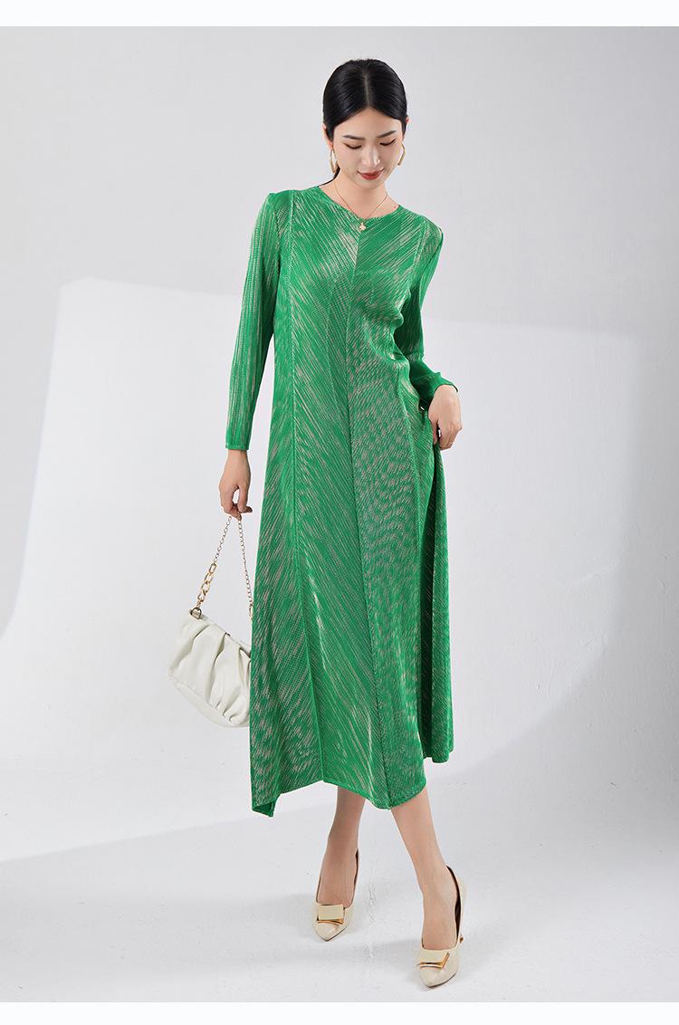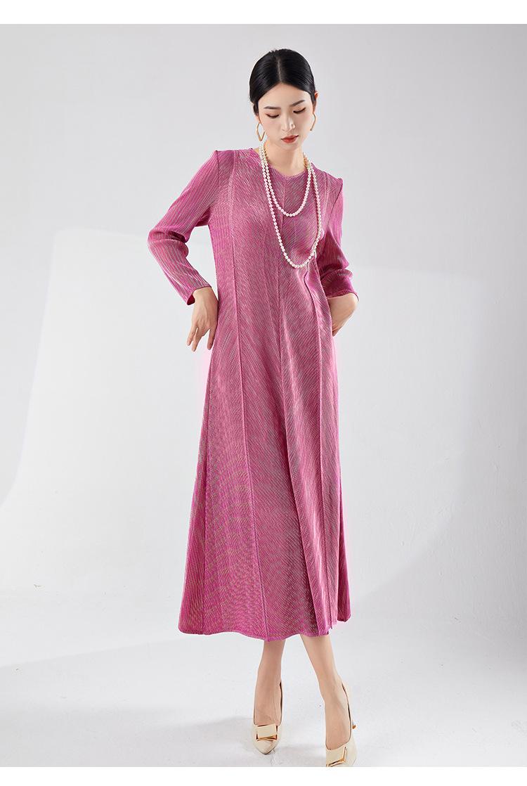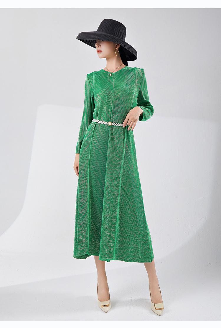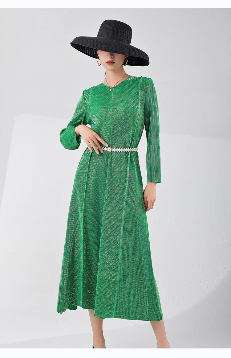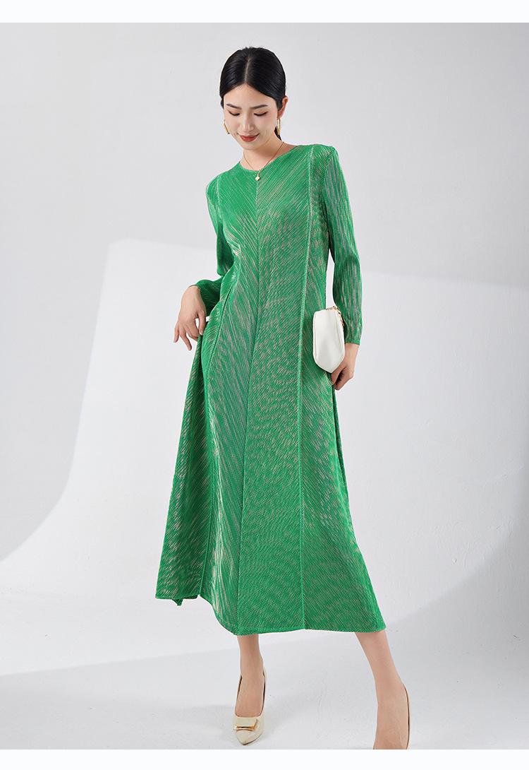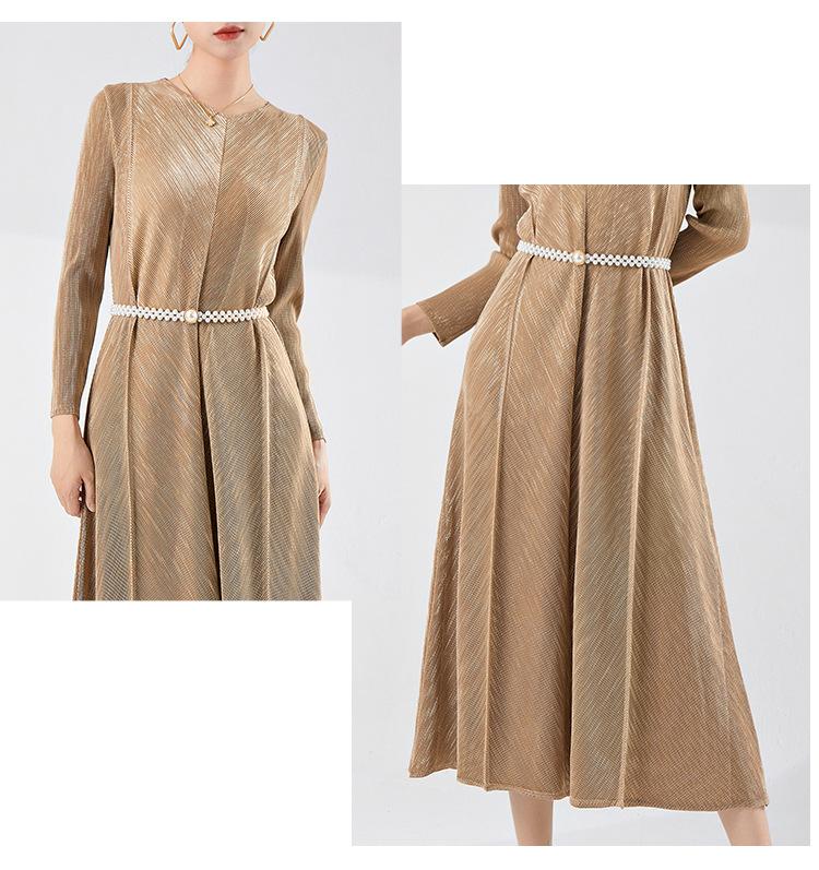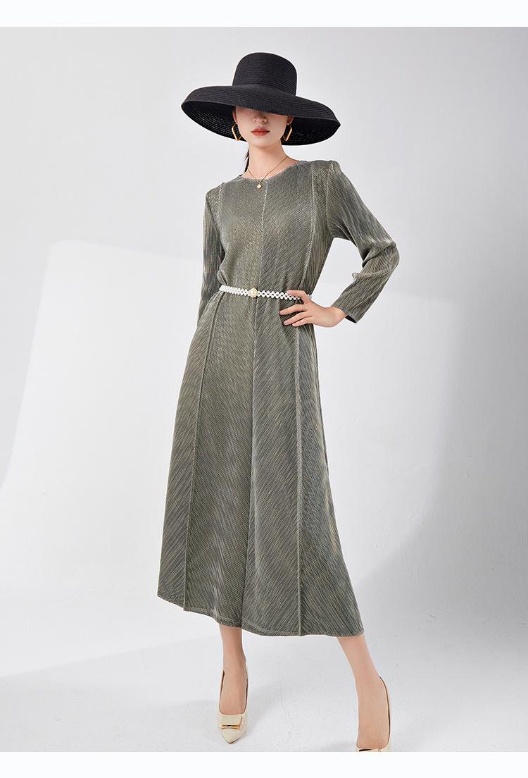 Vestido Miyake Primavera y Verano para Mujer Elegante Bronceado Manga Larga Holgado Adelgazante Look Elegante Elegante Vestido Falda Larga