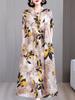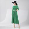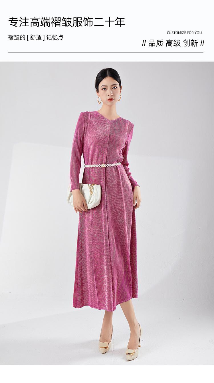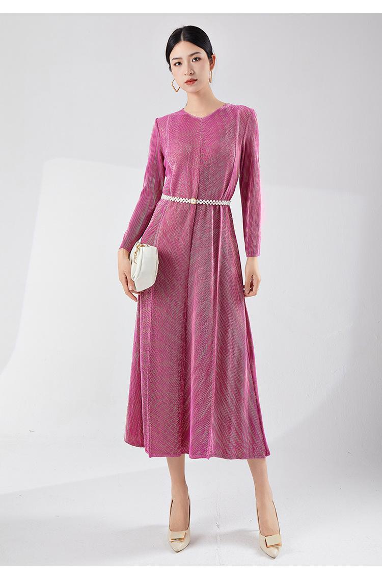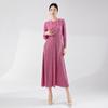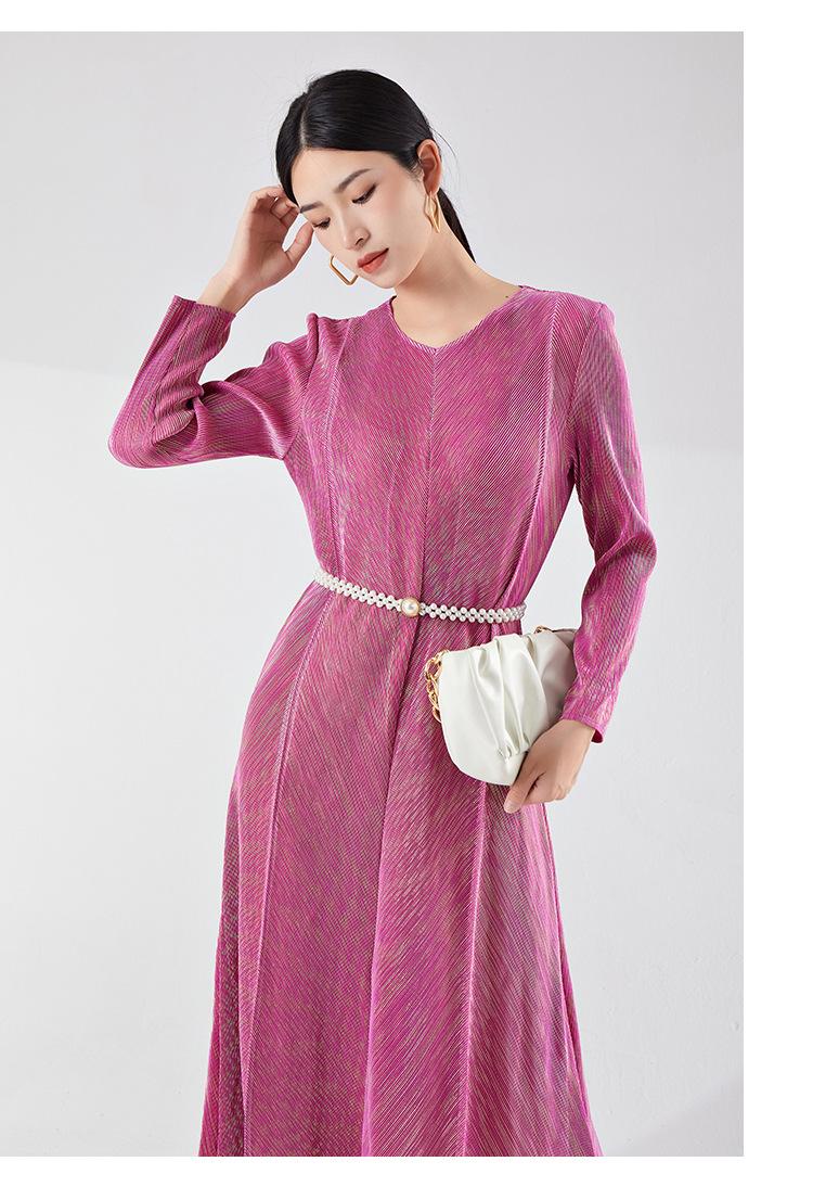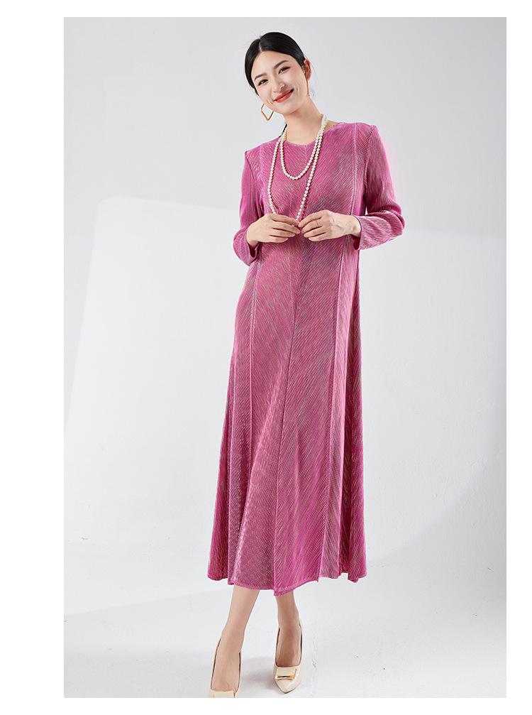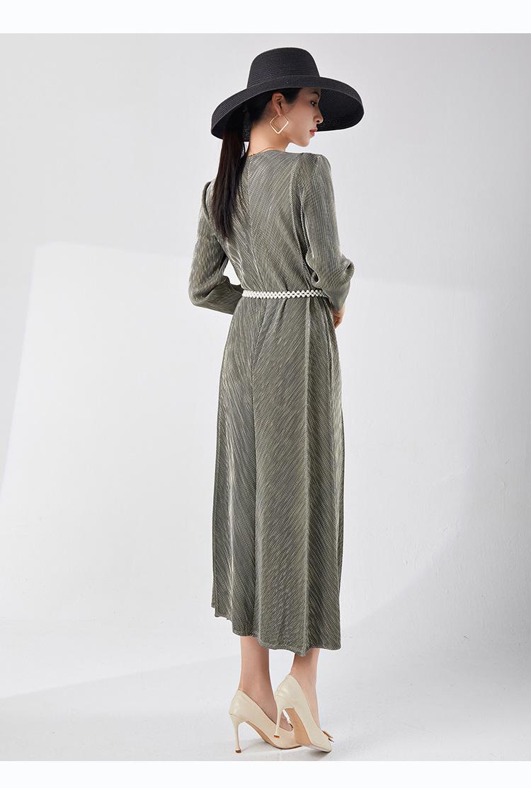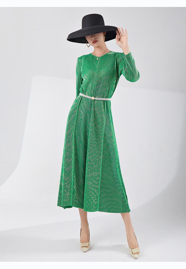 Vestido Miyake Primavera y Verano para Mujer Elegante Bronceado Manga Larga Holgado Adelgazante Look Elegante Elegante Vestido Falda Larga