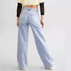 Jeans de Algodón Lavado No Elástico Transfronterizo Europeo y Americano para Mujer, Personalizados para la Calle, de Cintura Alta, Rectos, Casuales, Tendencia