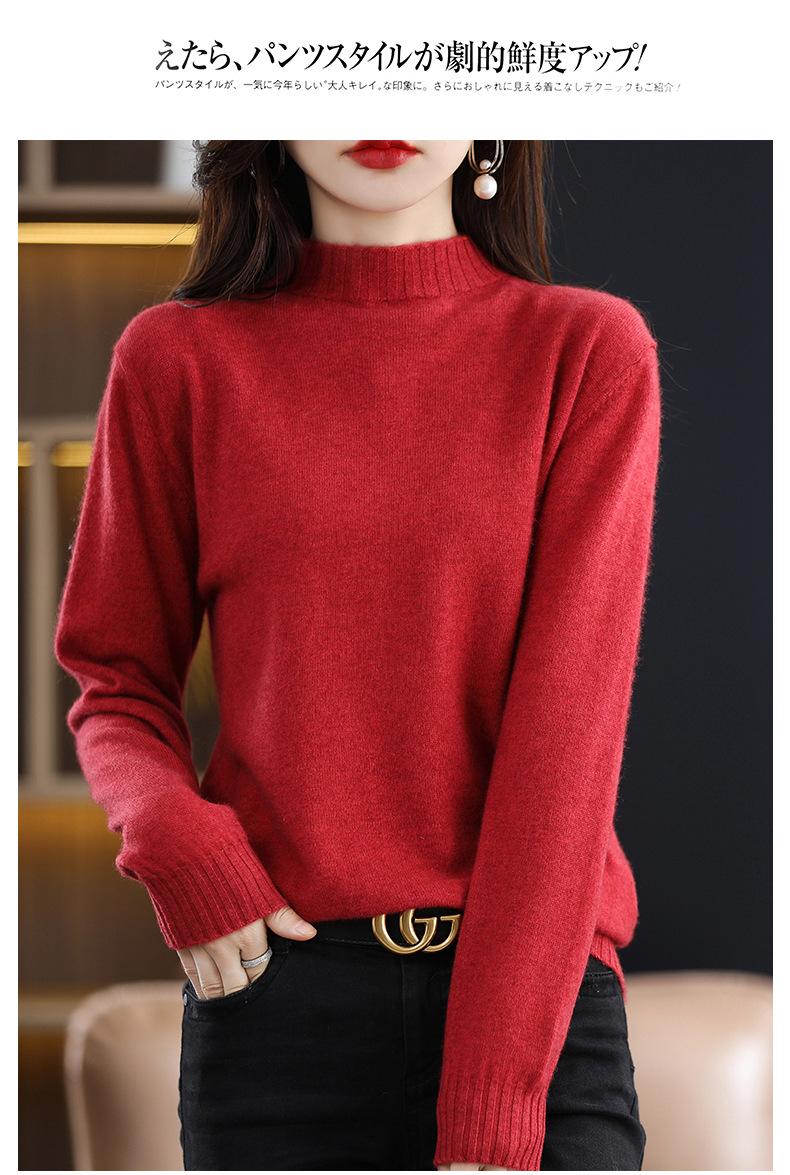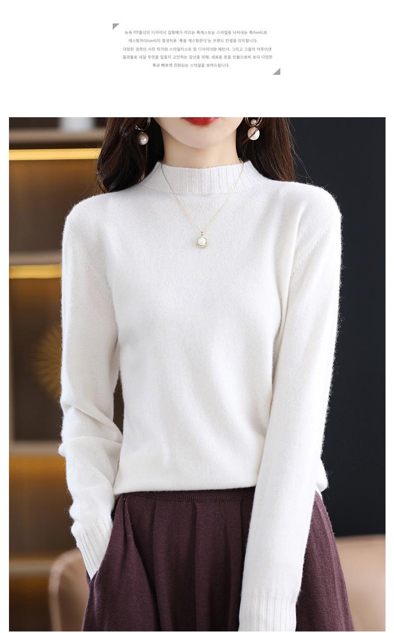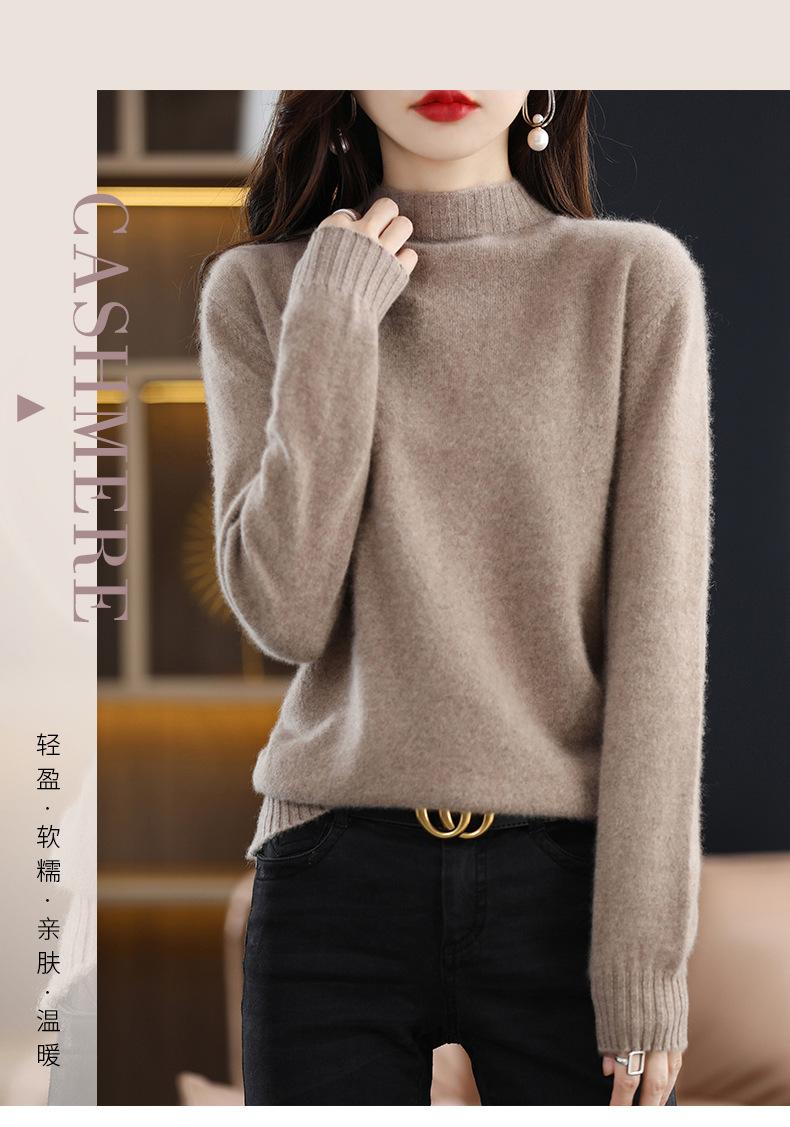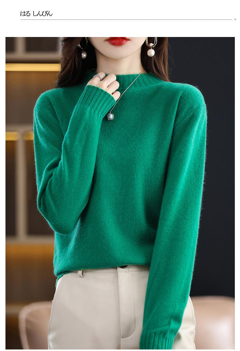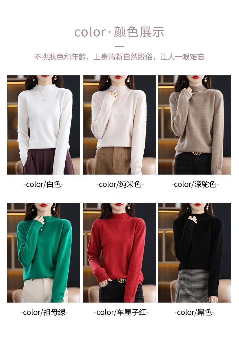 2022 Nuevo Otoño e Invierno Jersey de Punto de Lana Pura de Cuello Medio Alto y Manga Larga a la Moda de Color Puro Versátil Camiseta Básica de Punto
