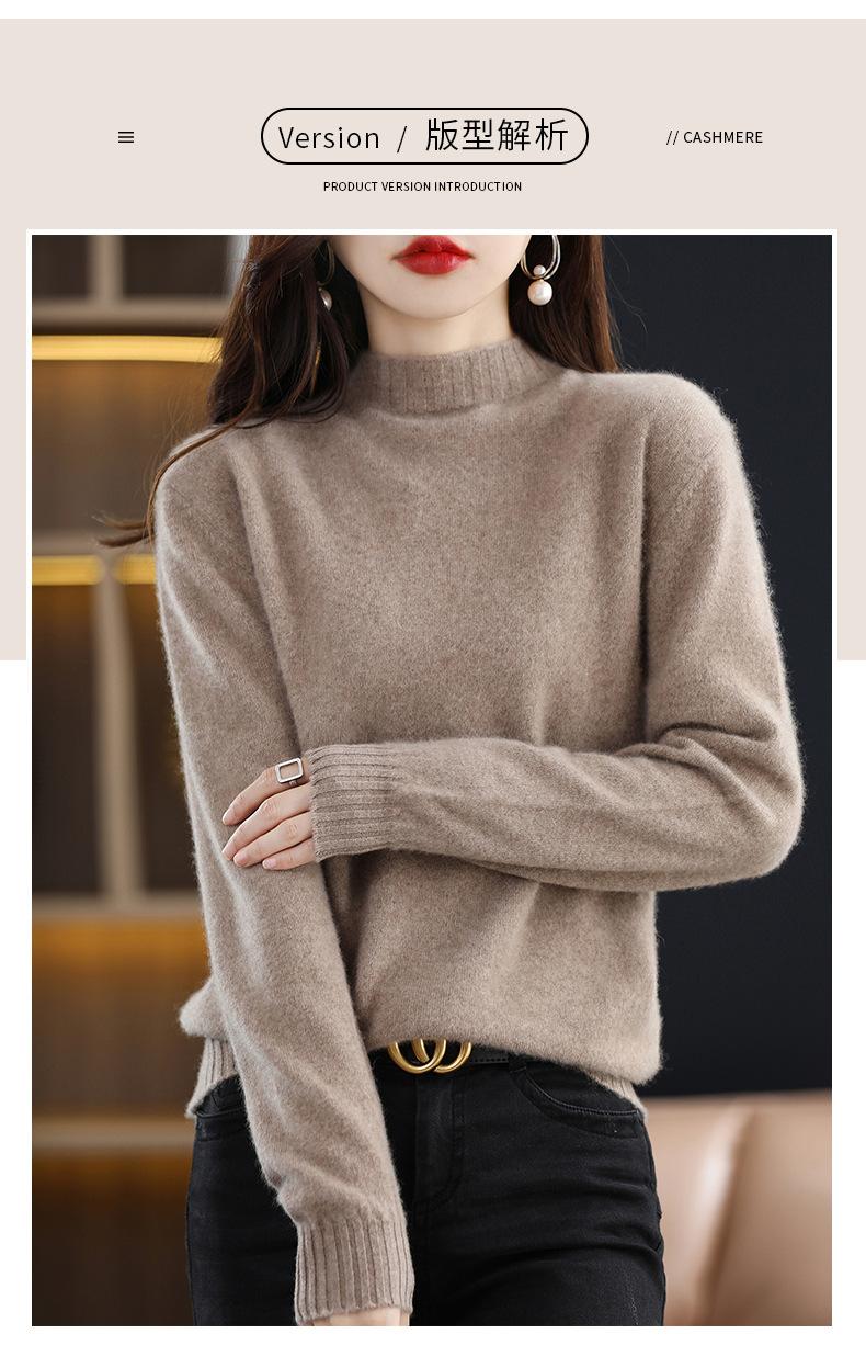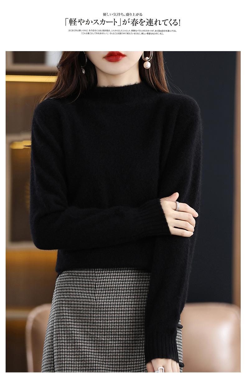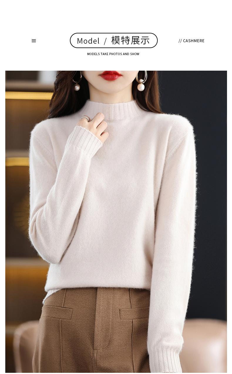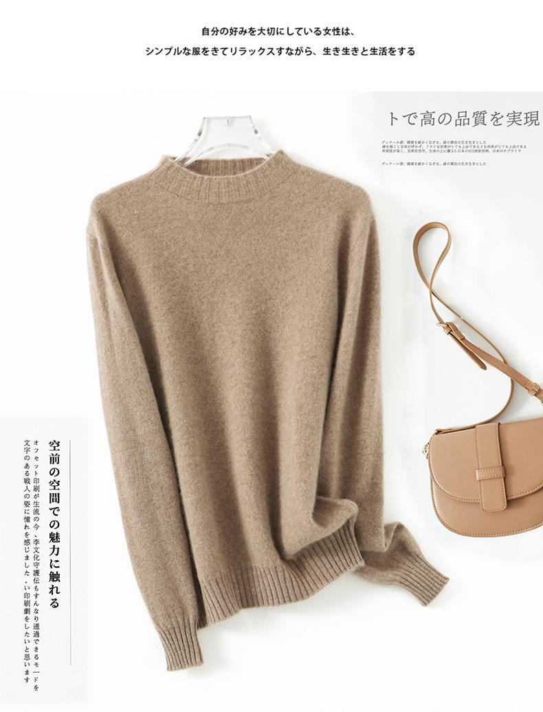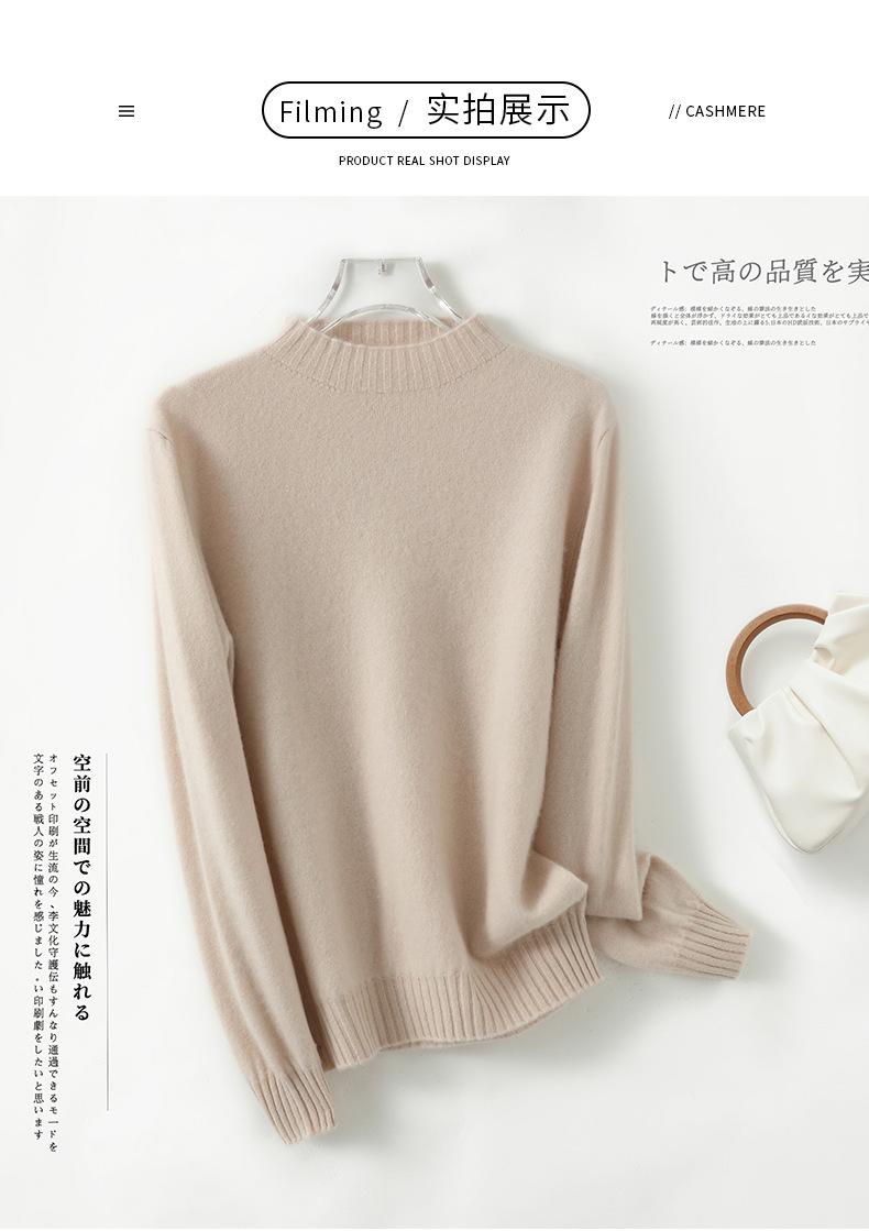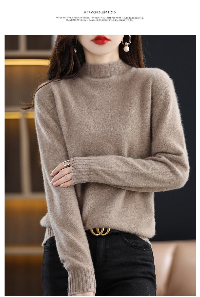 2022 Nuevo Otoño e Invierno Jersey de Punto de Lana Pura de Cuello Medio Alto y Manga Larga a la Moda de Color Puro Versátil Camiseta Básica de Punto