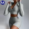 Chaqueta deportiva transfronteriza europea y americana, cárdigan ajustado para correr, fitness, ropa de yoga, top de manga larga, traje deportivo informal para mujer