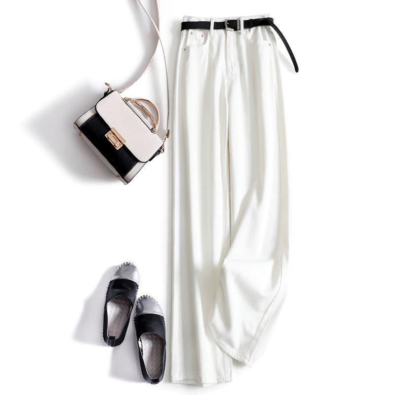 Pantalones rectos anchos de mezclilla suave de algodón Trissi para mujer, nuevos pantalones casuales ligeros de cintura alta de verano