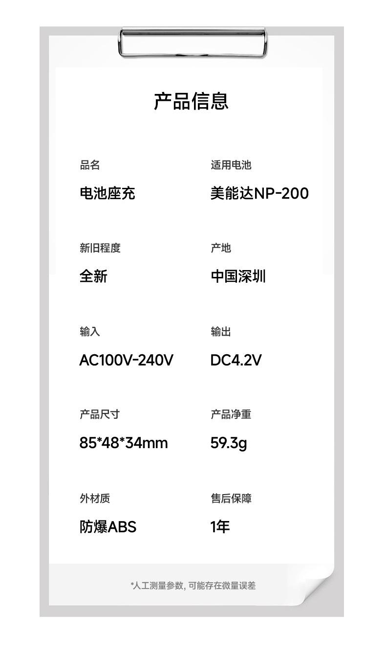 Cargador Individual de Tarjeta Yuntianmeng Np200 Adecuado para Batería de Cámara Minolta Np200 Cargador USB
