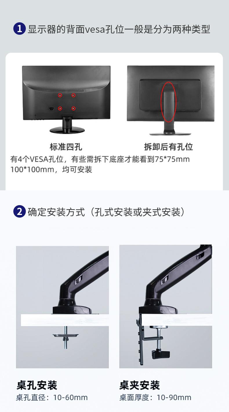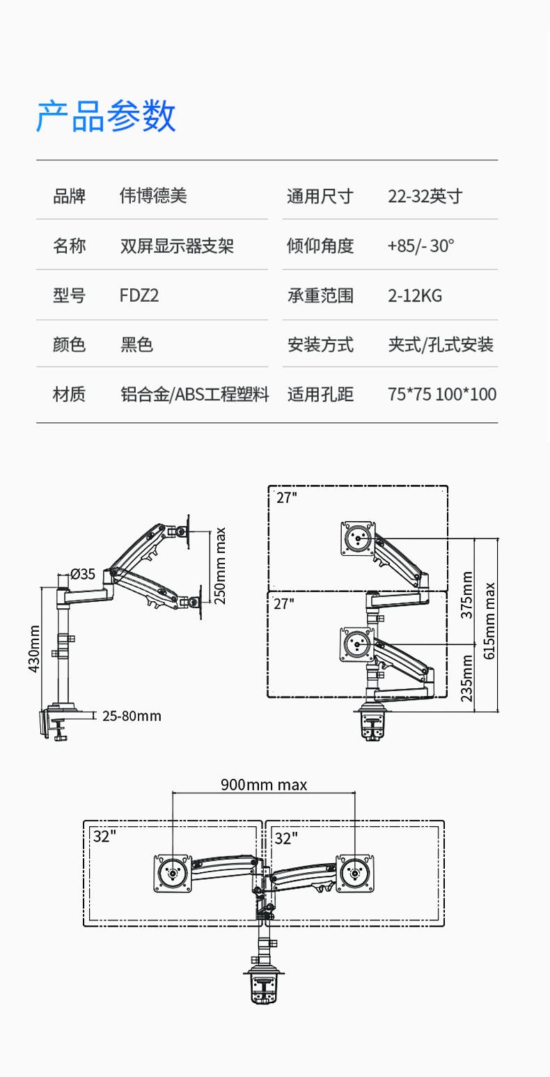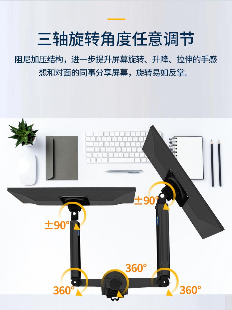Soporte para Monitor Weibo Demei Soporte para Computadora de Doble Pantalla Soporte sin Perforaciones Elevación Telescópica Giratoria para Monitor