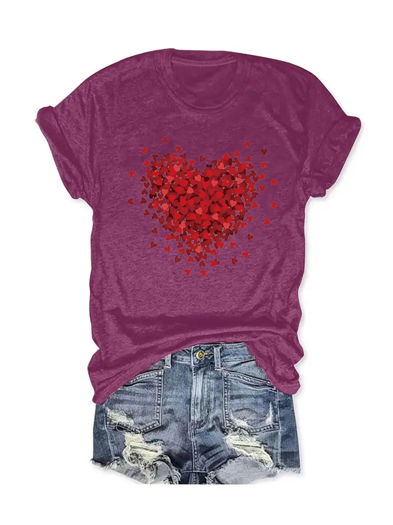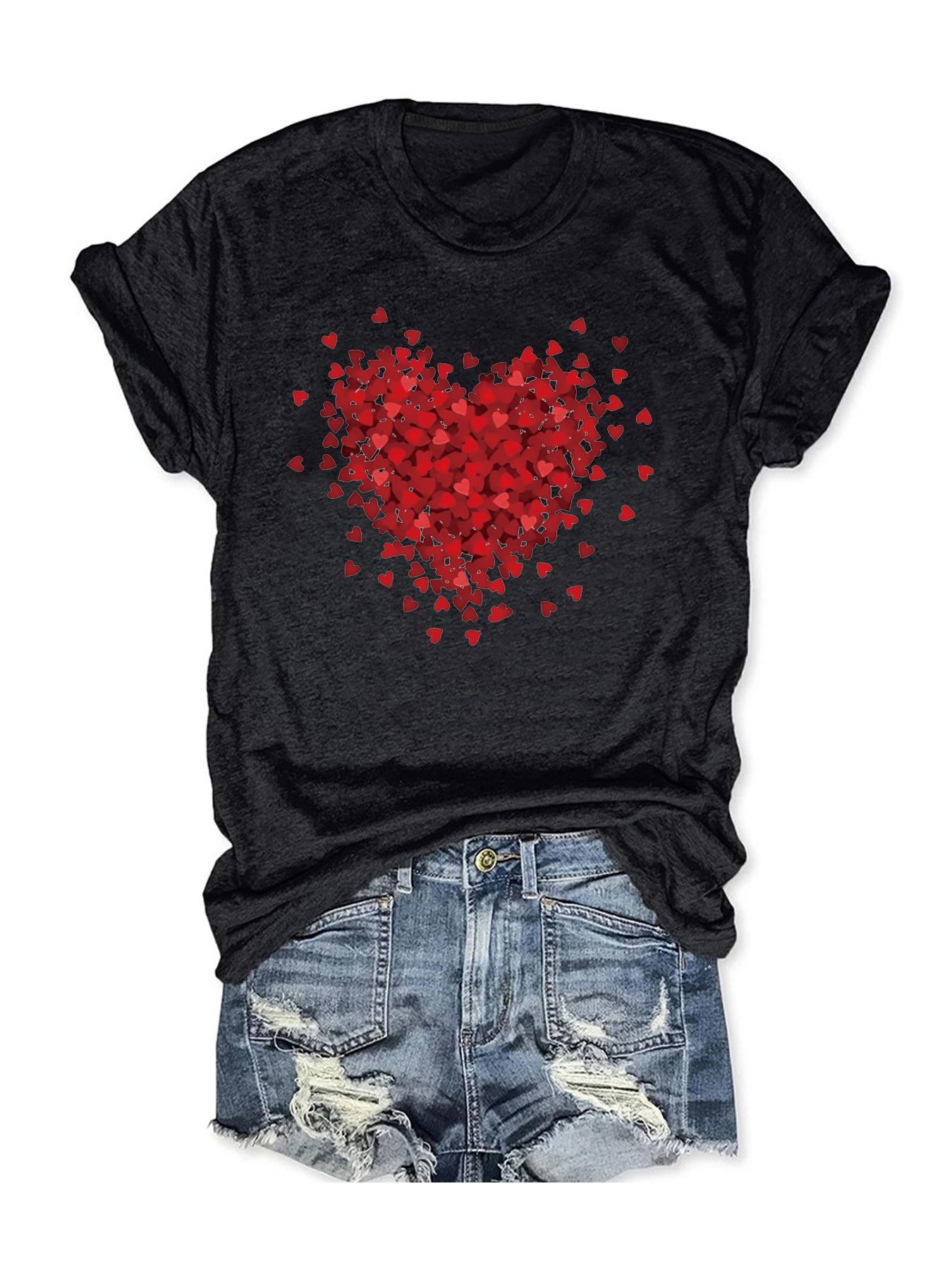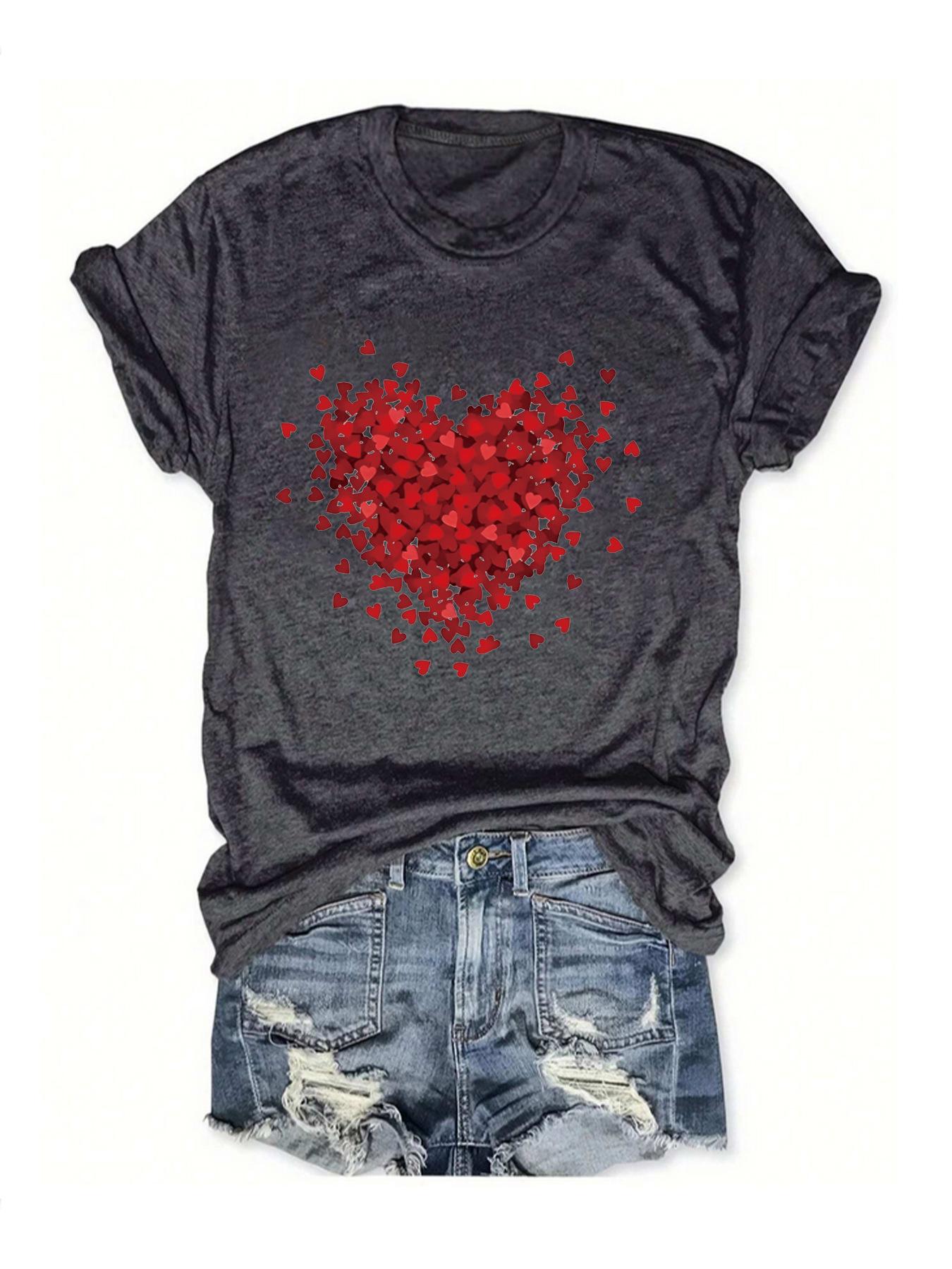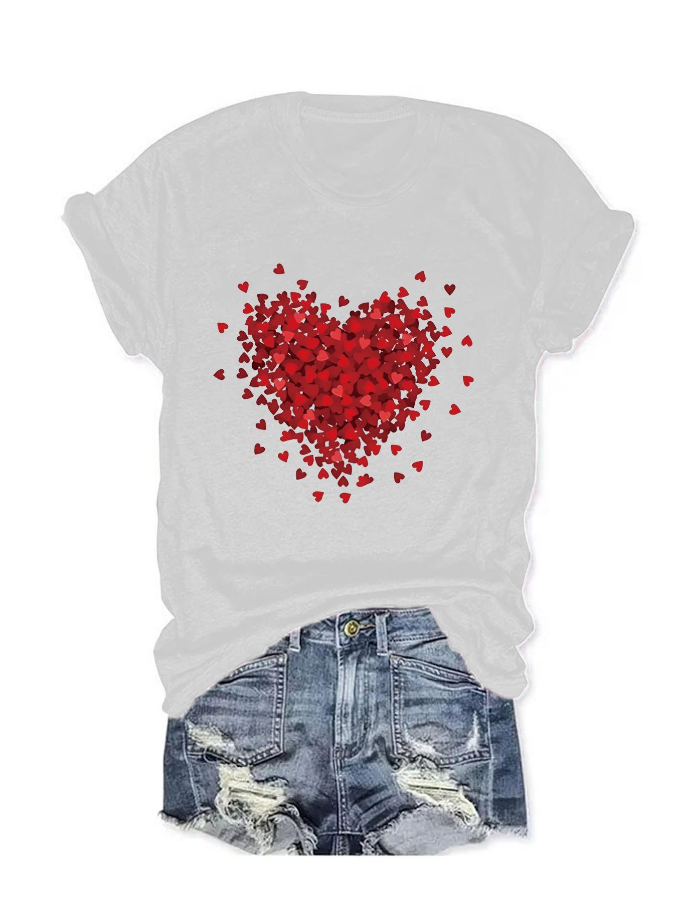 Camiseta de manga corta con cuello redondo y estampado de amor para mujer, ropa informal de moda de verano europea y americana, con explosión de comercio exterior
