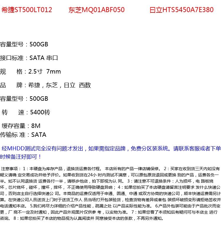 Las fechas de fabricación de los discos duros varían. Algunos tienen alrededor de 21 años y otros son nuevos. Algunos discos se prueban en la sala de informática y tienen tiempos de prueba. El tiempo y el número de prueba de cada disco varían. Los pedidos se envían aleatoriamente por defecto. Si tiene requisitos especiales, póngase en contacto con el servicio de atención al cliente. Puede devolverlo o cambiarlo en un plazo de una semana a partir de la firma. Si supera una semana, puede repararlo o reemplazarlo, pero no puede devolverlo. ¡Por favor, comprenda!Acerca de la garantía: Los discos de inventario desmontados no permiten la verificación del número de serie. Si se produce una falla durante el uso normal, nuestra tienda se hace responsable de la garantía. El período de garantía suele ser de 2 años a partir de la fecha de recepción. Los discos nuevos suelen tener una garantía de 3 años, y algunos productos tienen una de 5 años. Por favor, contacte con el servicio de atención al cliente al realizar un pedido.