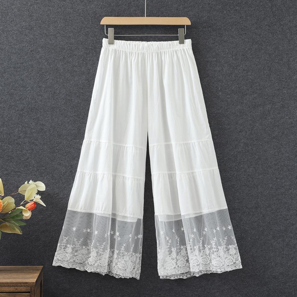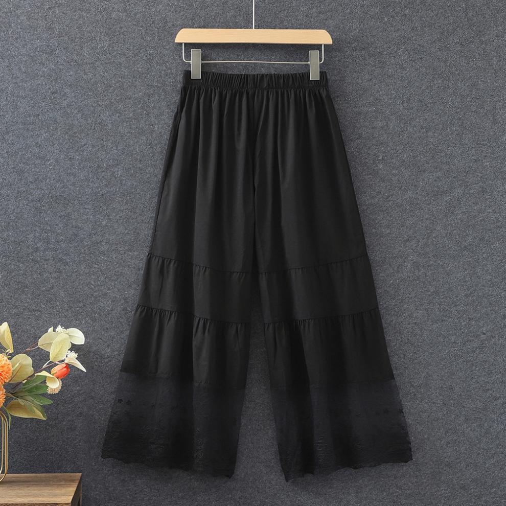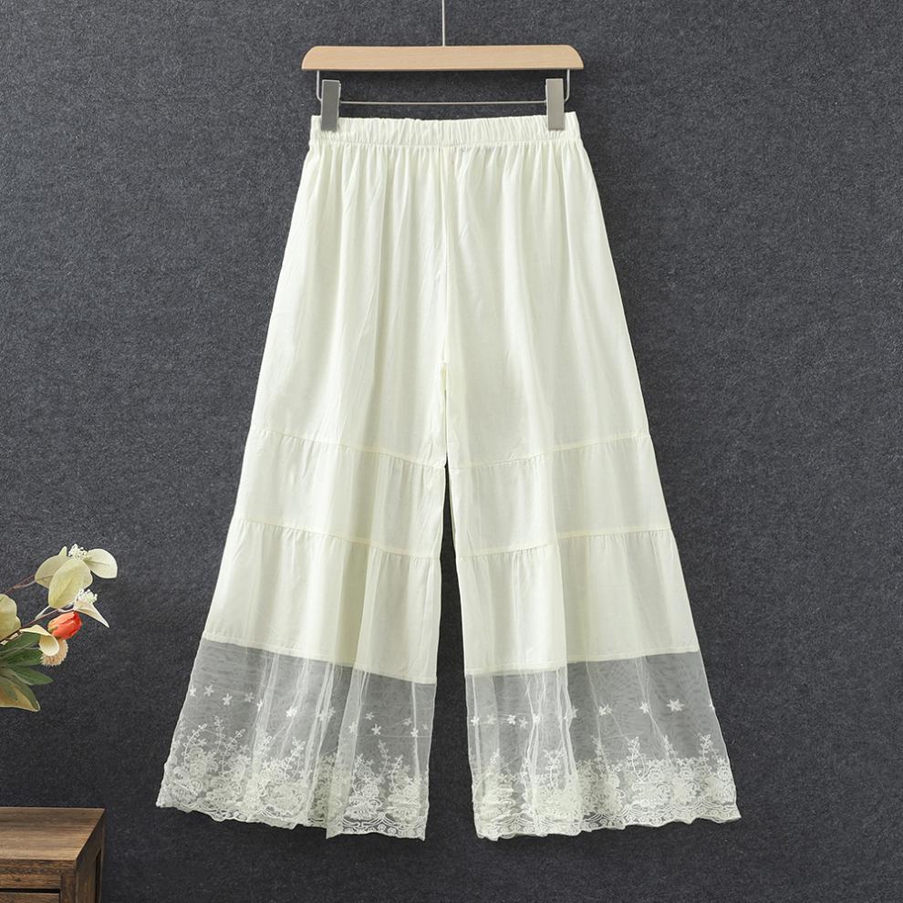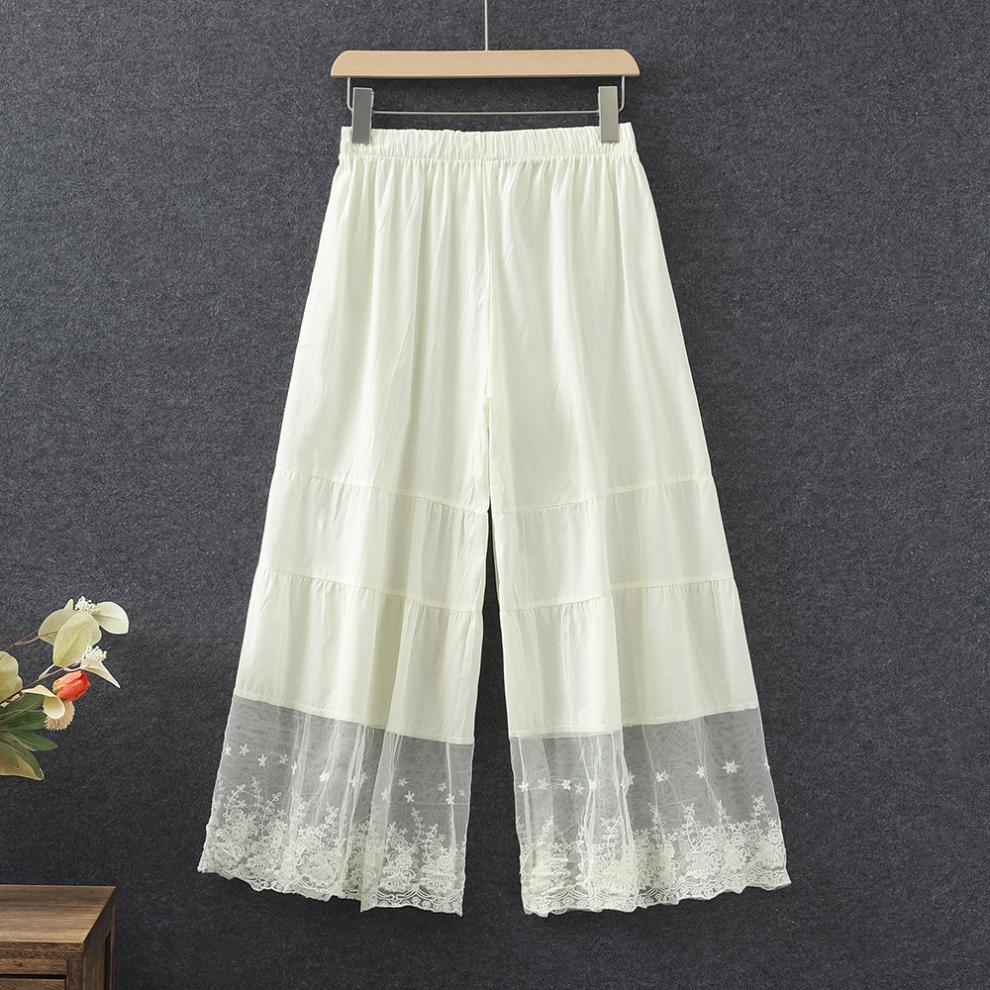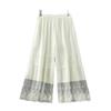 Primavera 2025 Ropa Nueva para Mujer Estilo Japonés Fresco Cintura Elástica Empalme de Encaje Leggings Algodón Lino Color Sólido Pantalones de Pierna Ancha