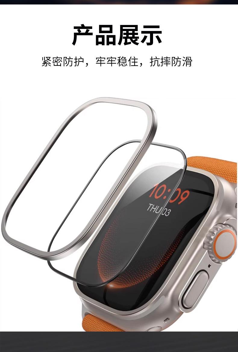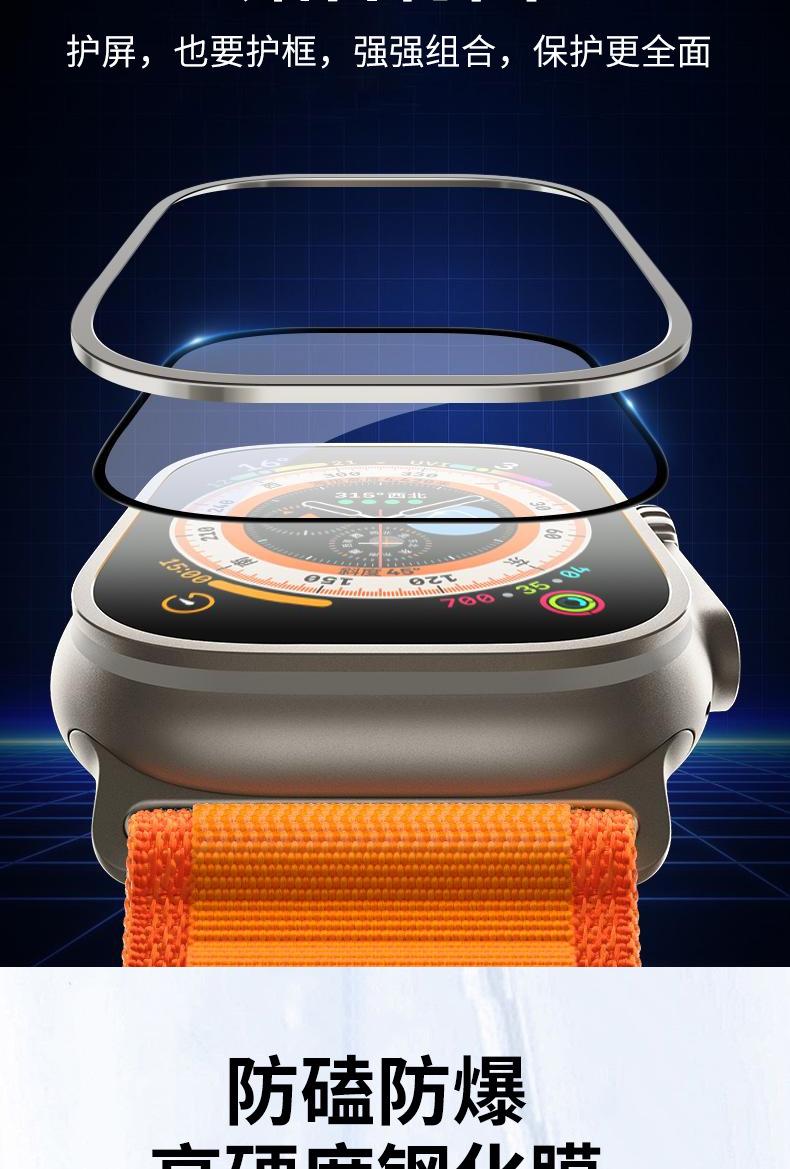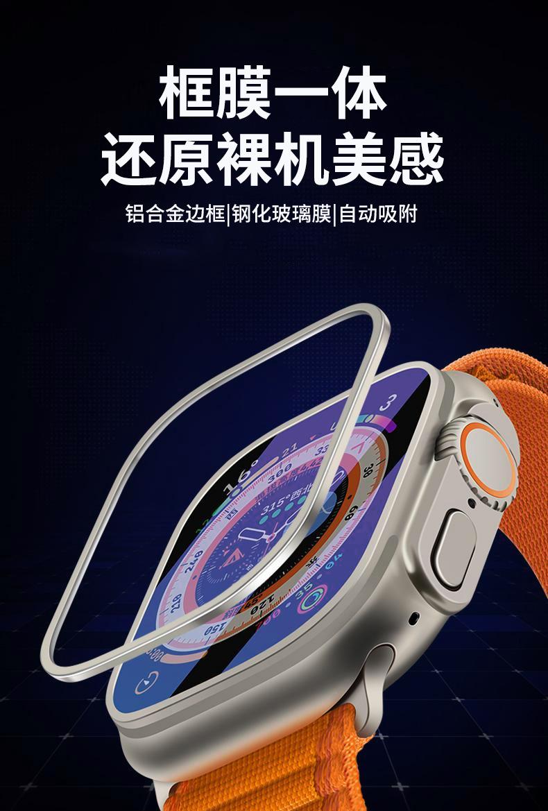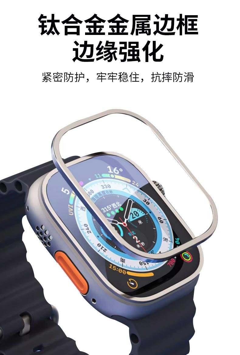 Película protectora ultra adecuada para Apple Watch de 49 mm con marco de metal, venta al por mayor