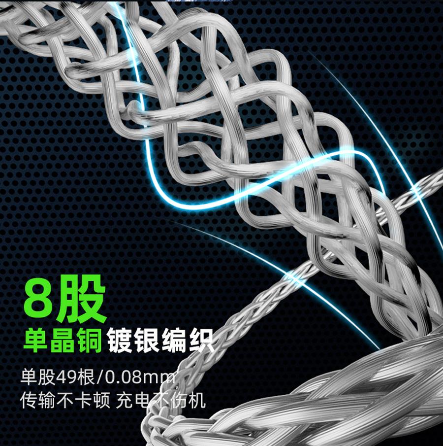 Cable de datos USB a tipo C de carga rápida Huawei para teléfono móvil Xiaomi Mijia DIY8, cable de datos tejido de cobre de un solo cristal.