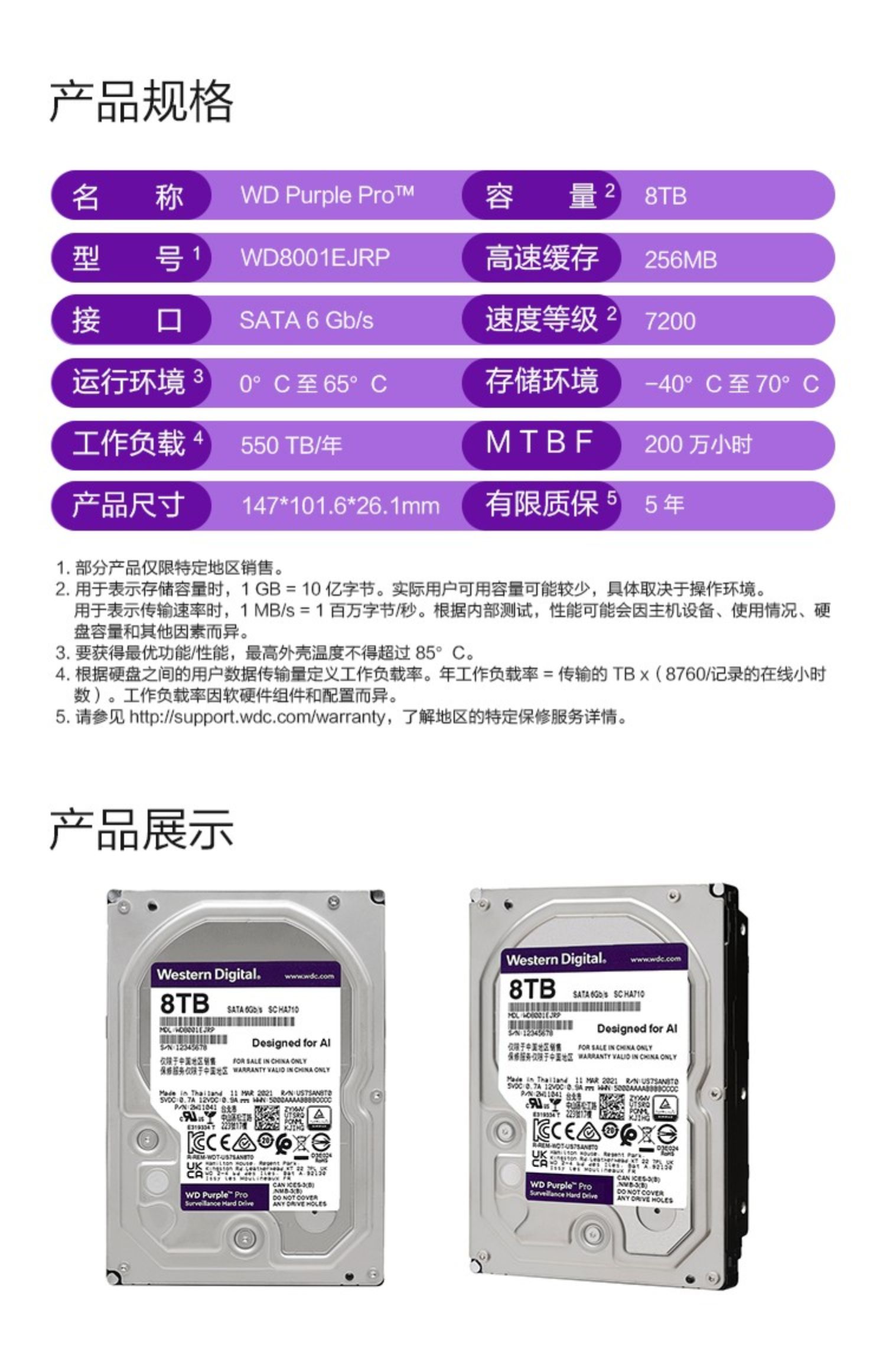Nuevo Disco Duro Wd8001Ejrp 7200 a 8Tb 256m Disco Duro de Vigilancia 8t Púrpura