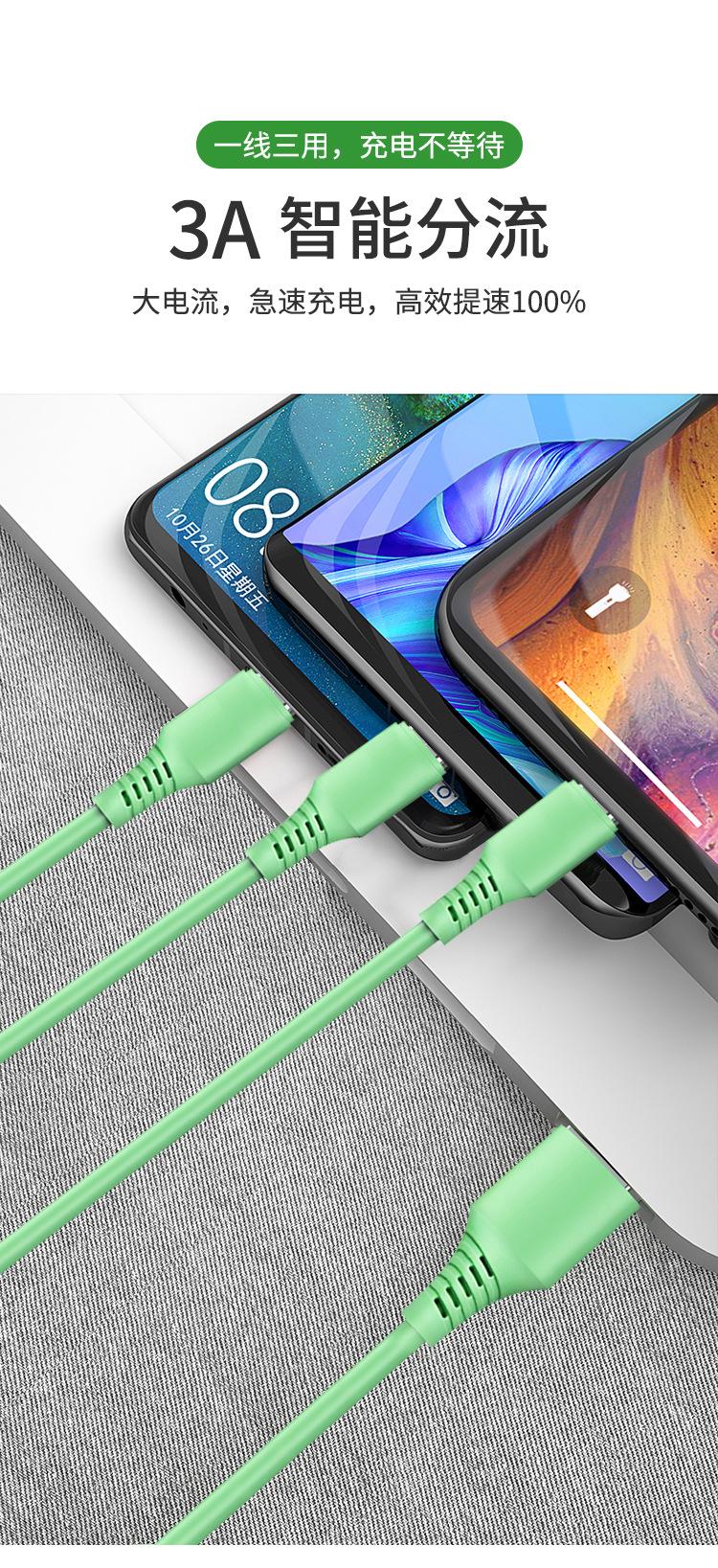 Cable de carga tres en uno de PVC en caja de 1 metro de largo 5 colores opcionales