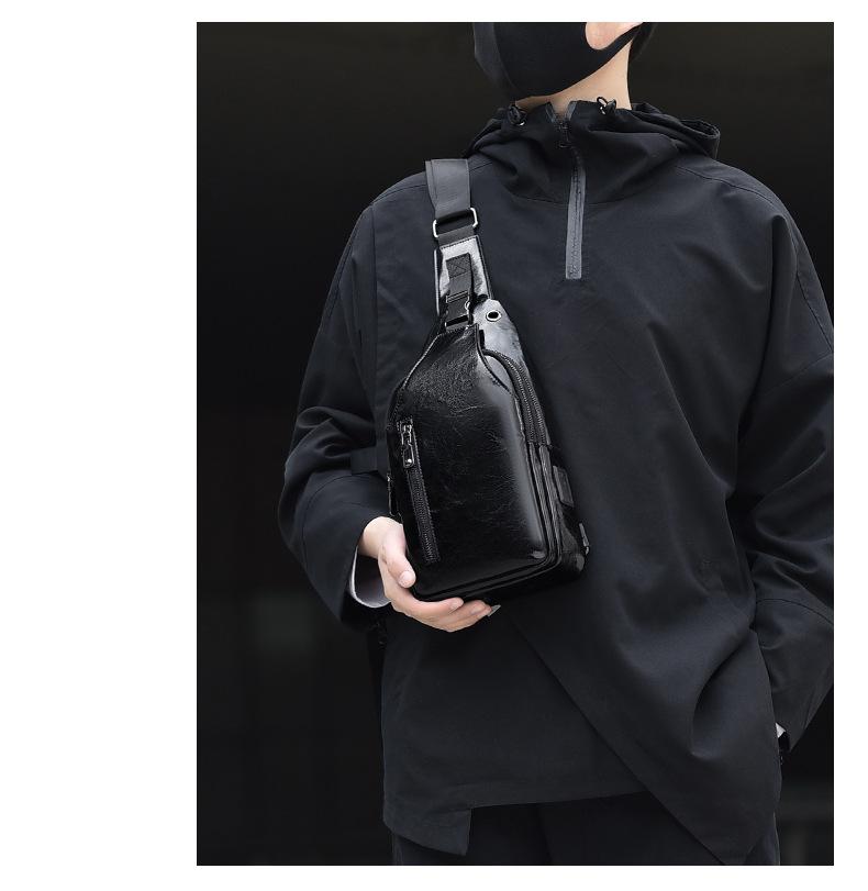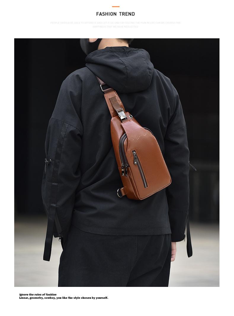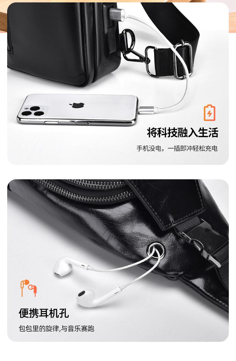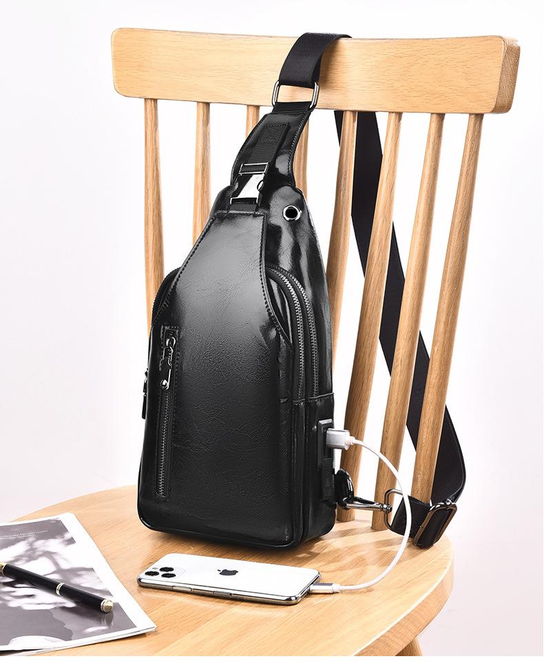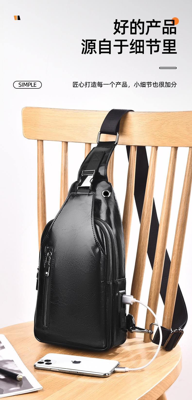 Tendencia transfronteriza nuevo ocio viajero bolso de hombro para hombre al por mayor puerto de carga USB bolso bandolera coreano PU riñonera