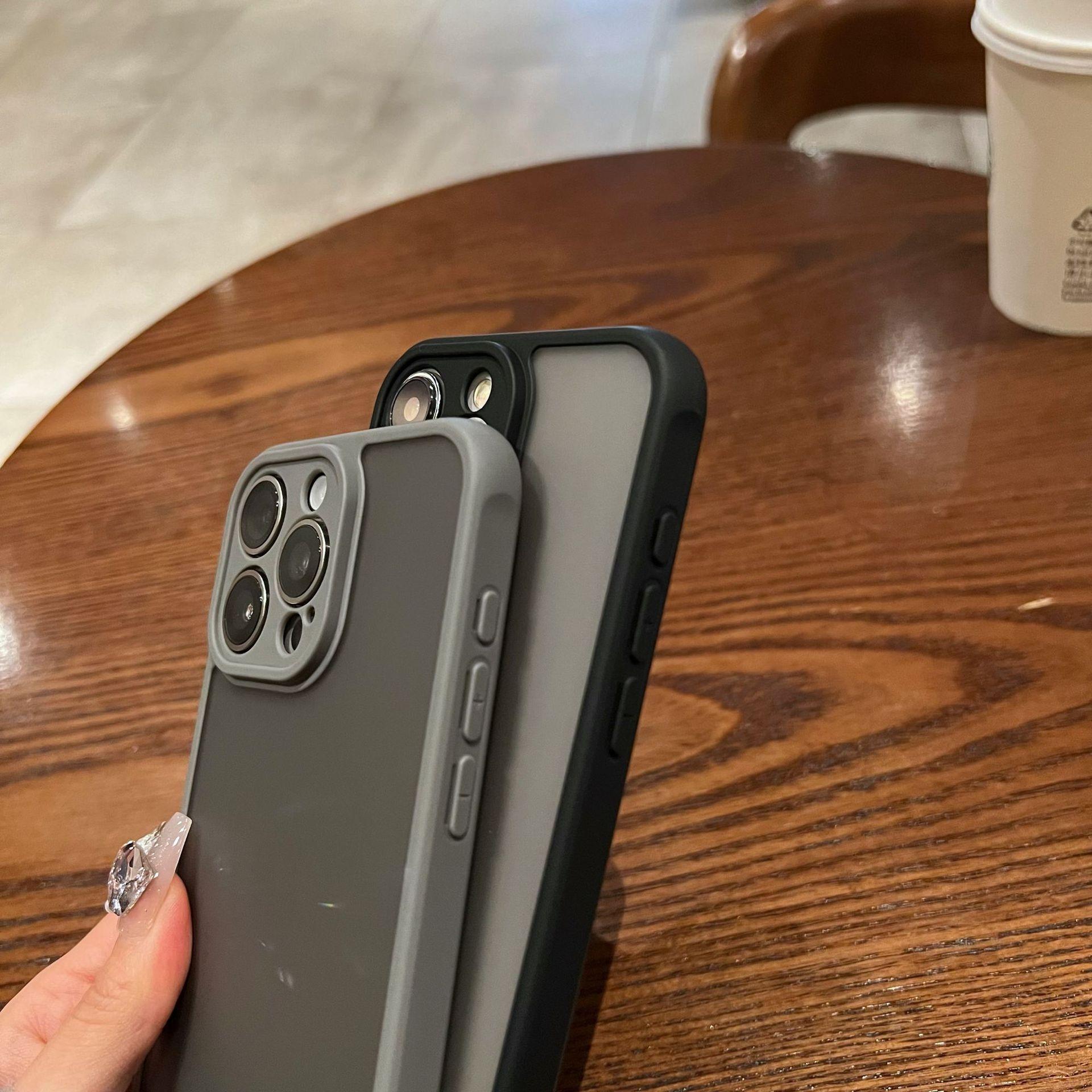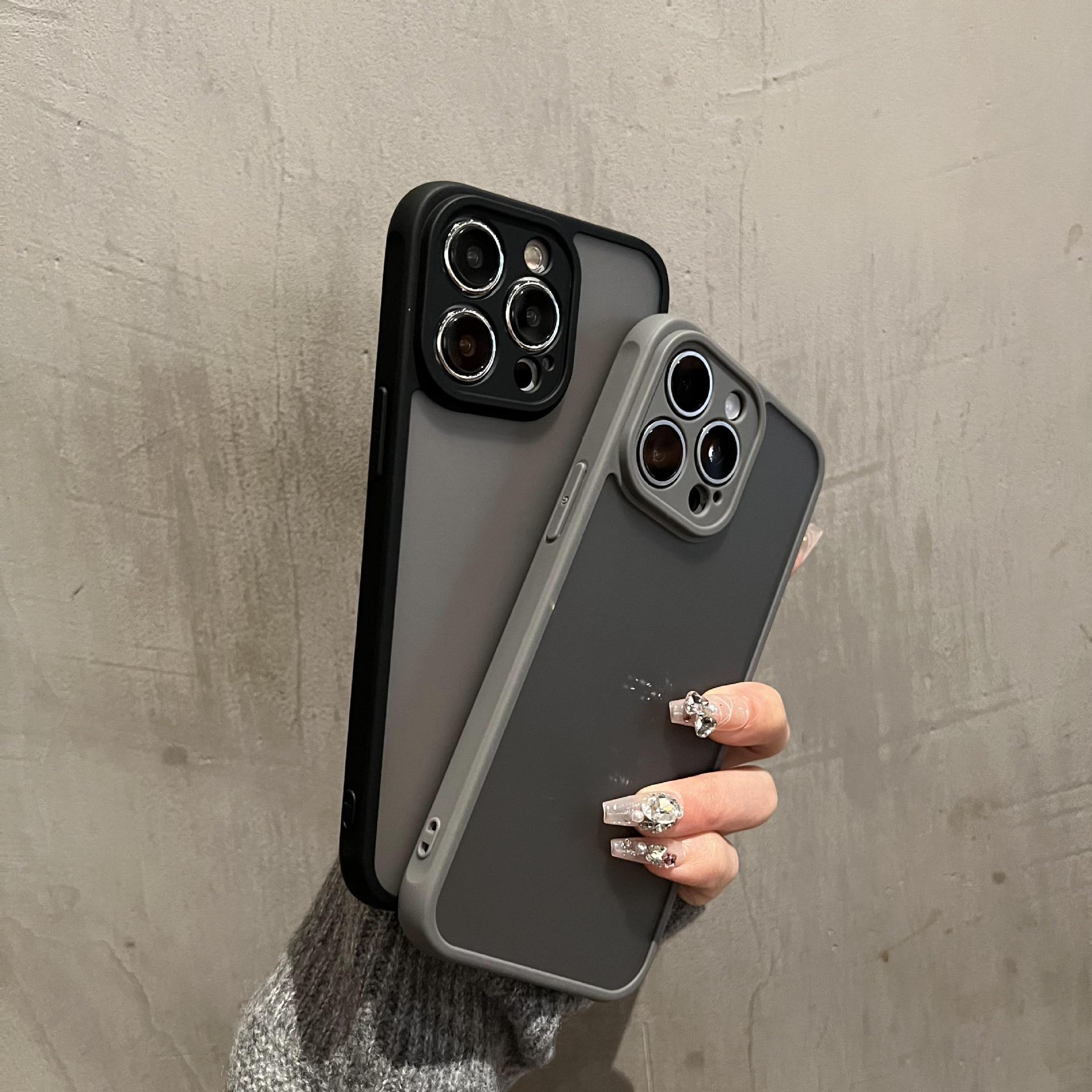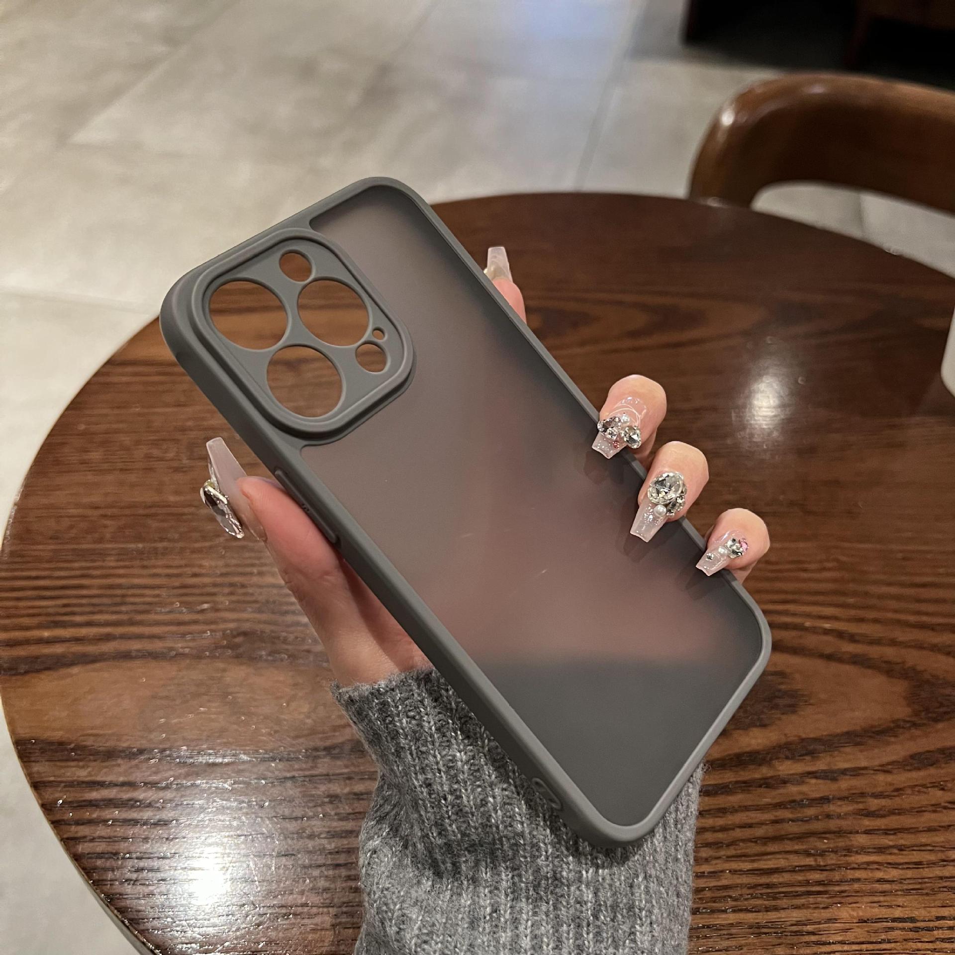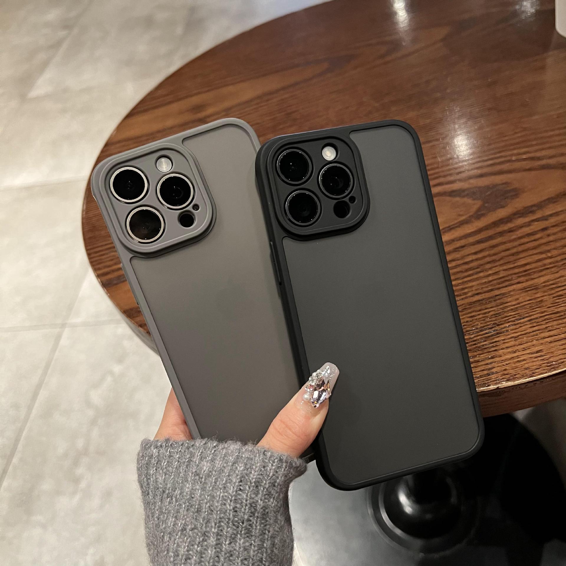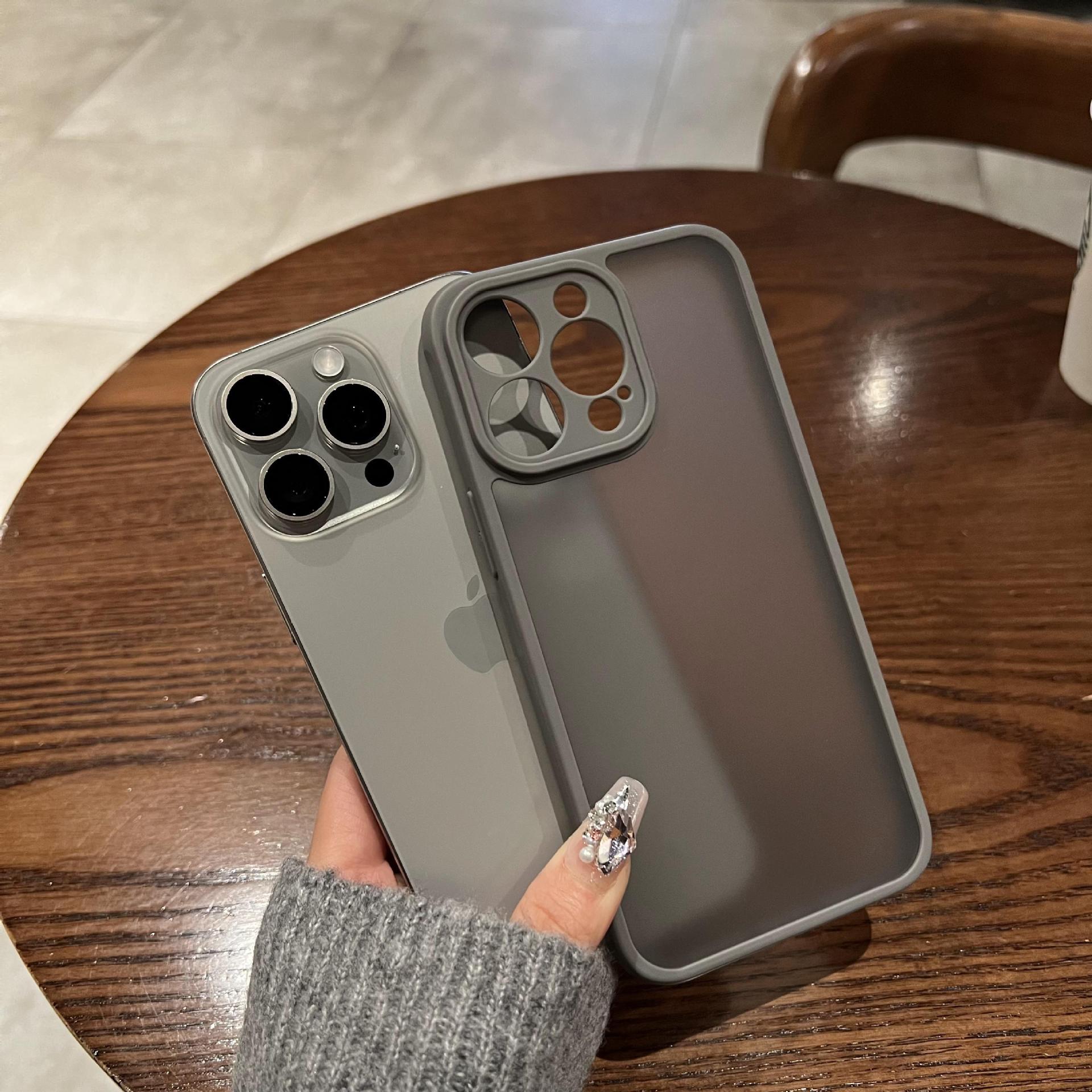 Adecuado para iPhone 15, carcasa de teléfono móvil gris titanio con sensación de piel, lente esmerilada 14ProMax, cubierta protectora todo incluido 12/13 dura