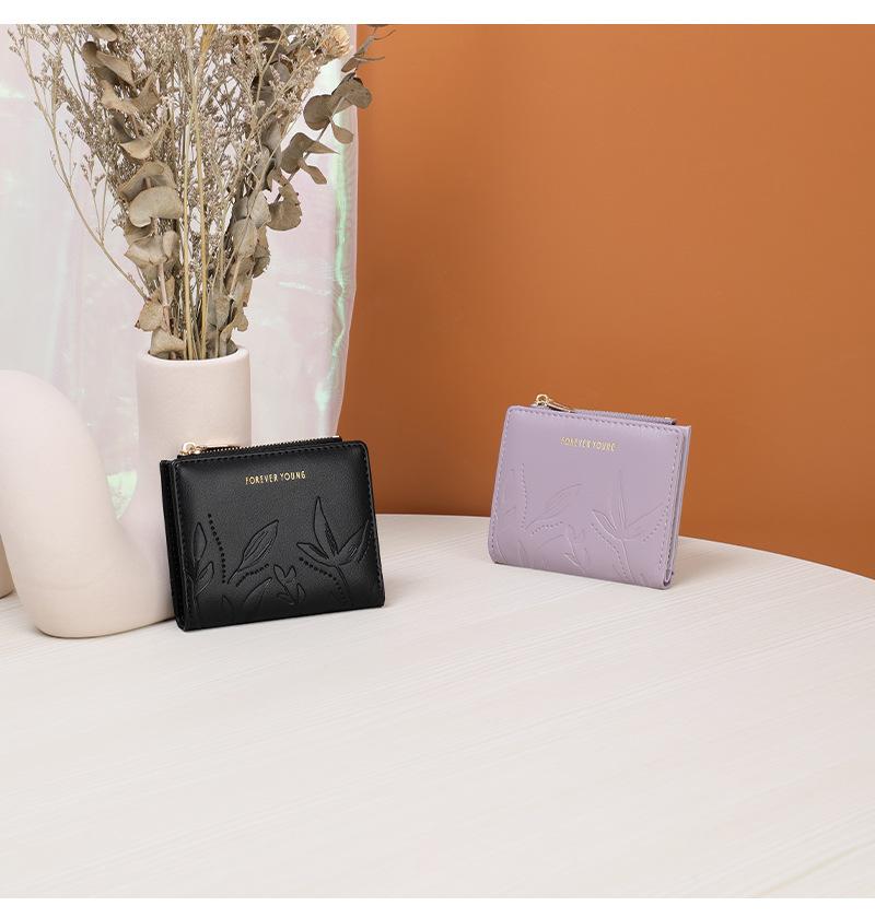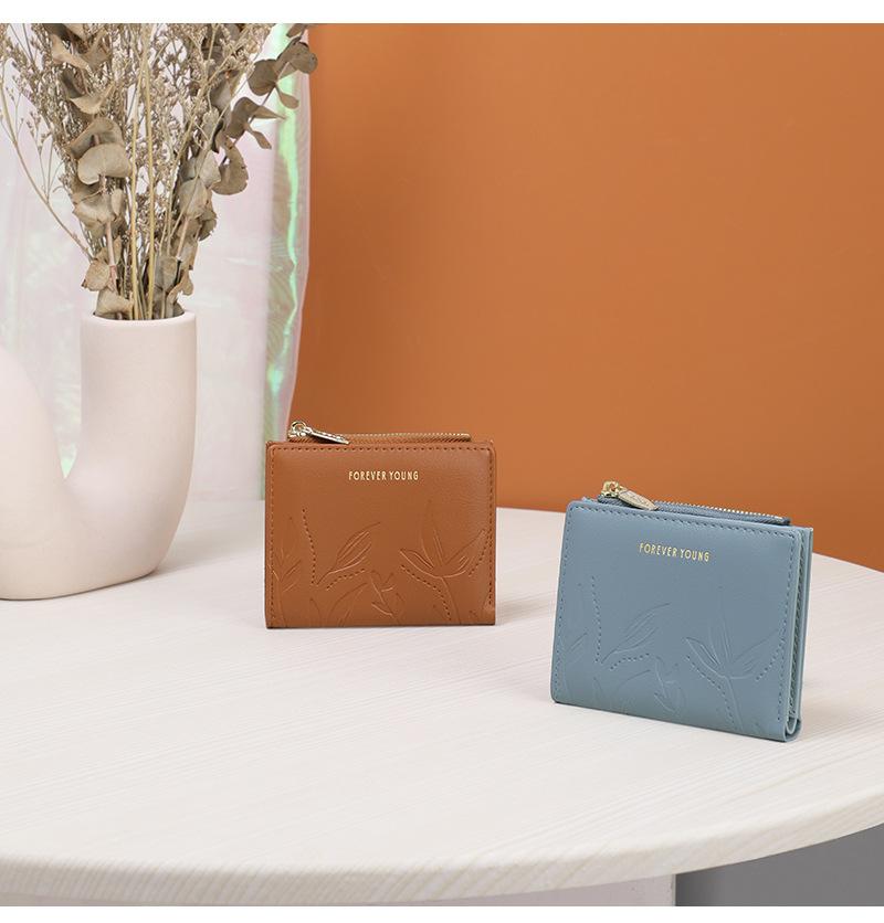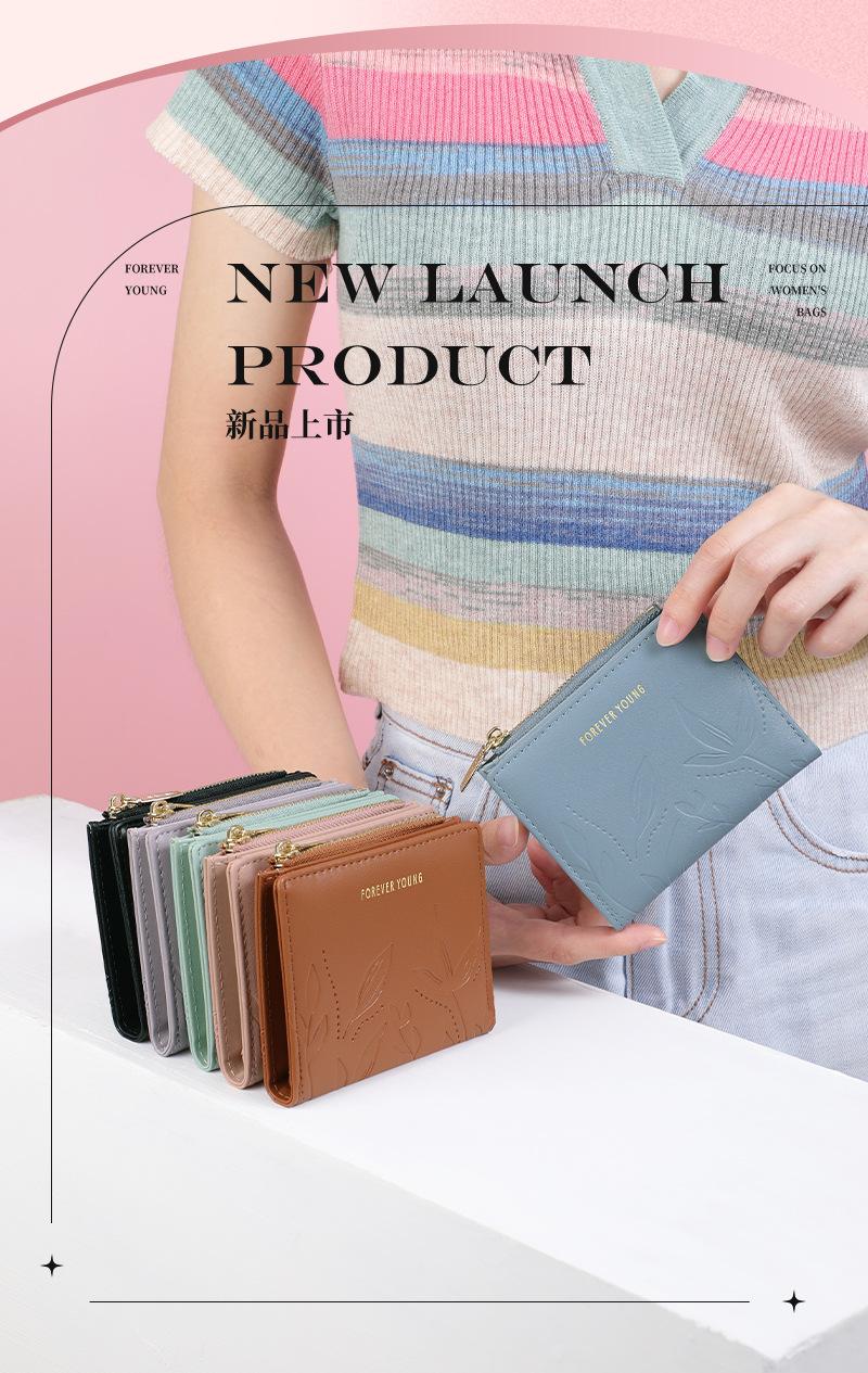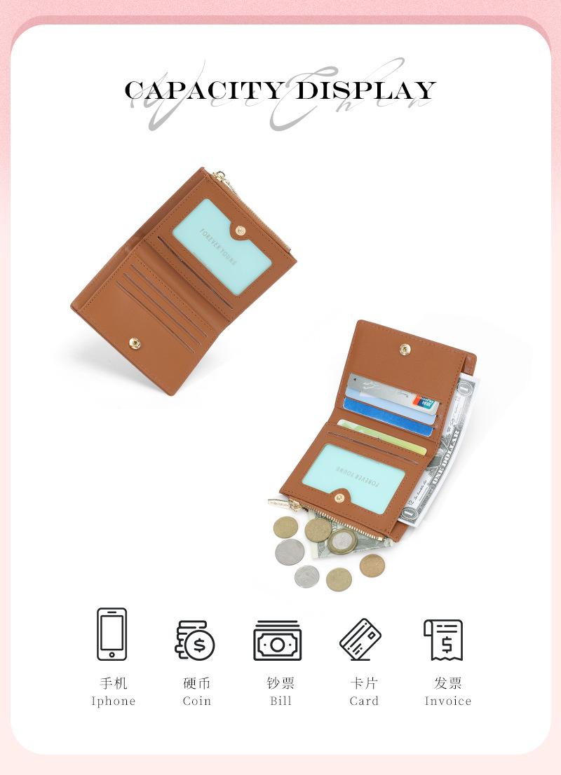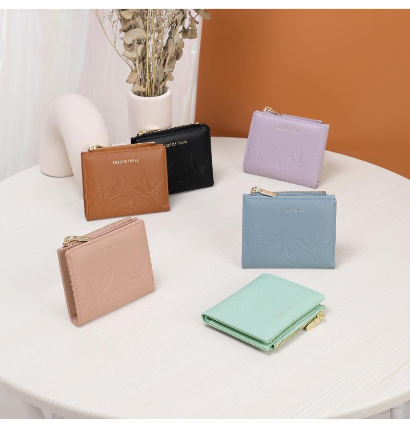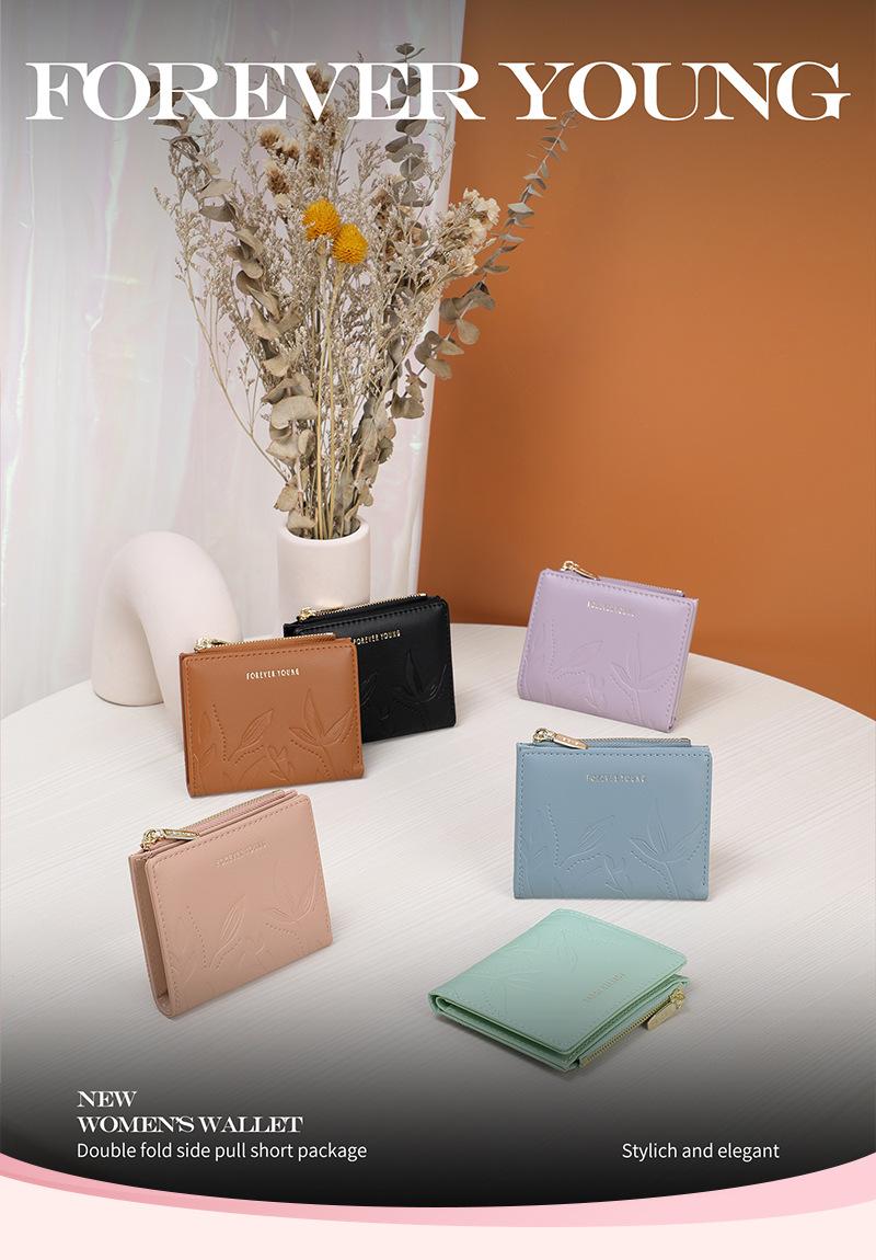 Cartera corta para mujer forever young, multitarjeta, estilo coreano, con diseño transfronterizo, tarjetero de PU de color liso
