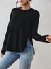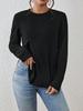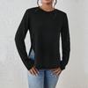 2024 Nueva Ropa de Otoño e Invierno para Mujer Transfronteriza Europea y Americana Ins Suelta Casual Cuello Redondo Abertura Camiseta de Manga Larga Top Versátil