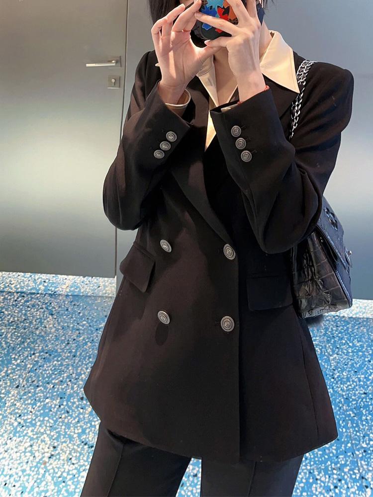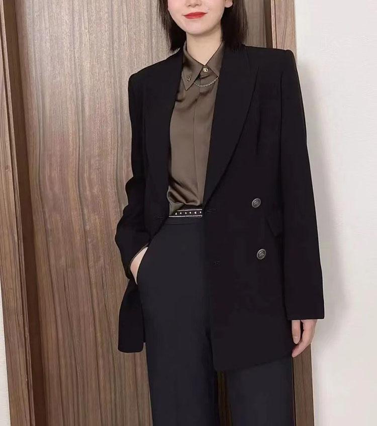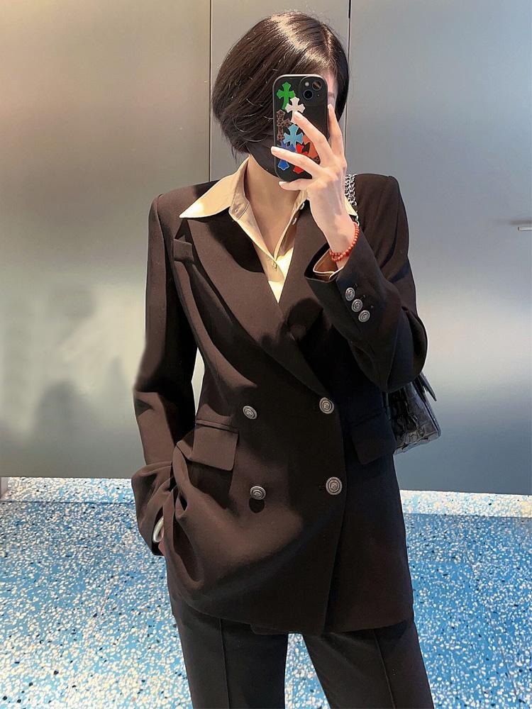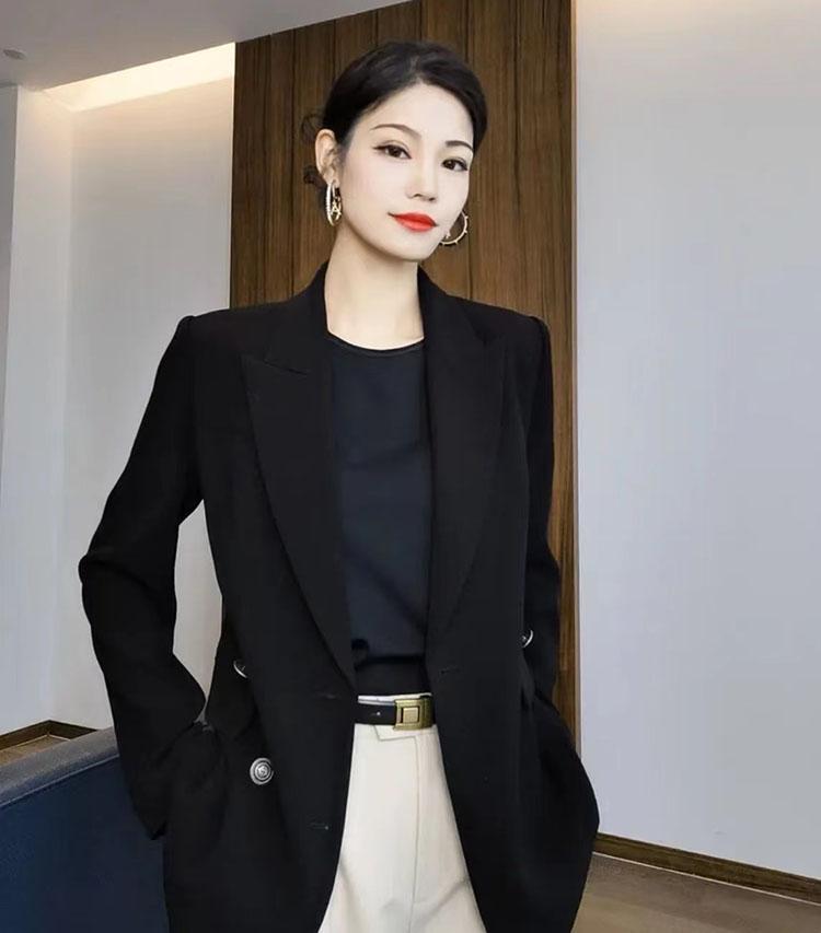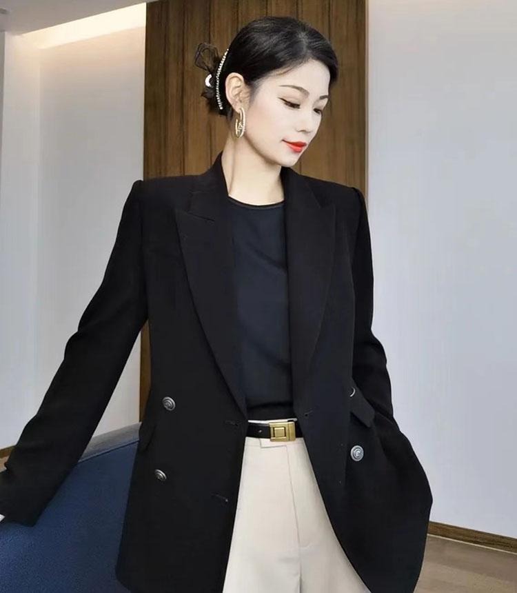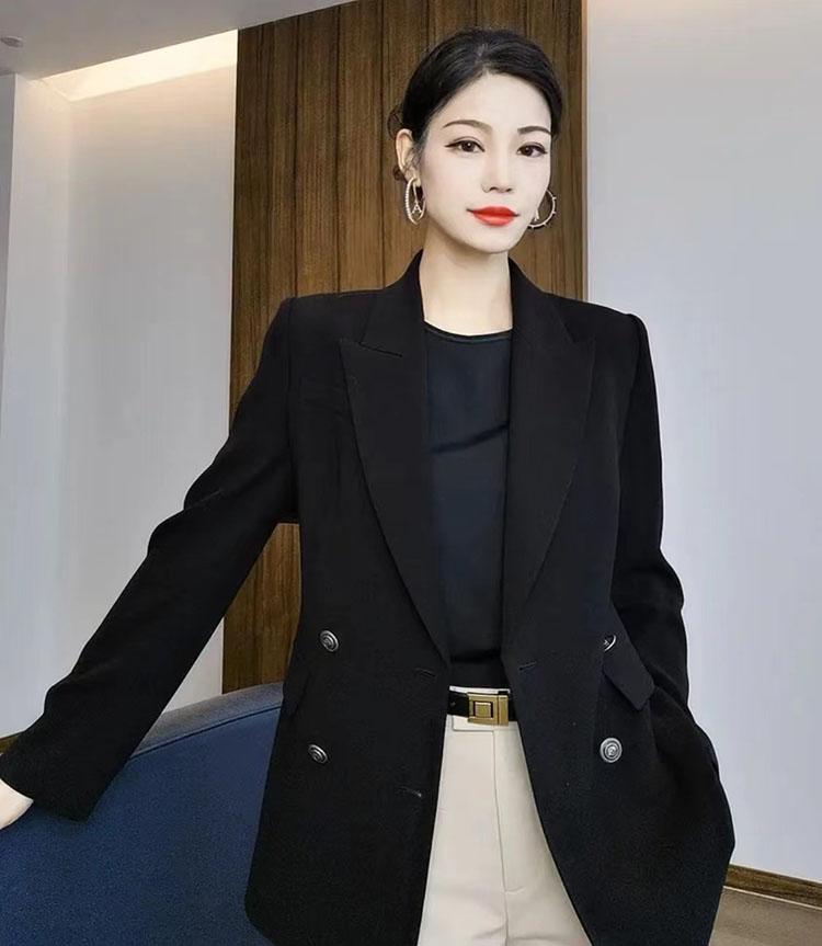 Retiro de descuento de comercio exterior 2024 otoño nuevo diseño sentido nicho delgado de doble botonadura traje profesional chaqueta de mujer traje