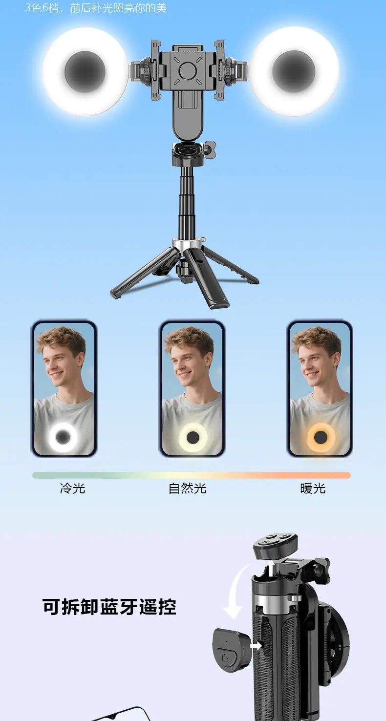 2025 nuevo palo selfie trípode universal artefacto para grabación de vlogs rotación de 360 grados teléfono móvil en vivo soporte bluetooth
