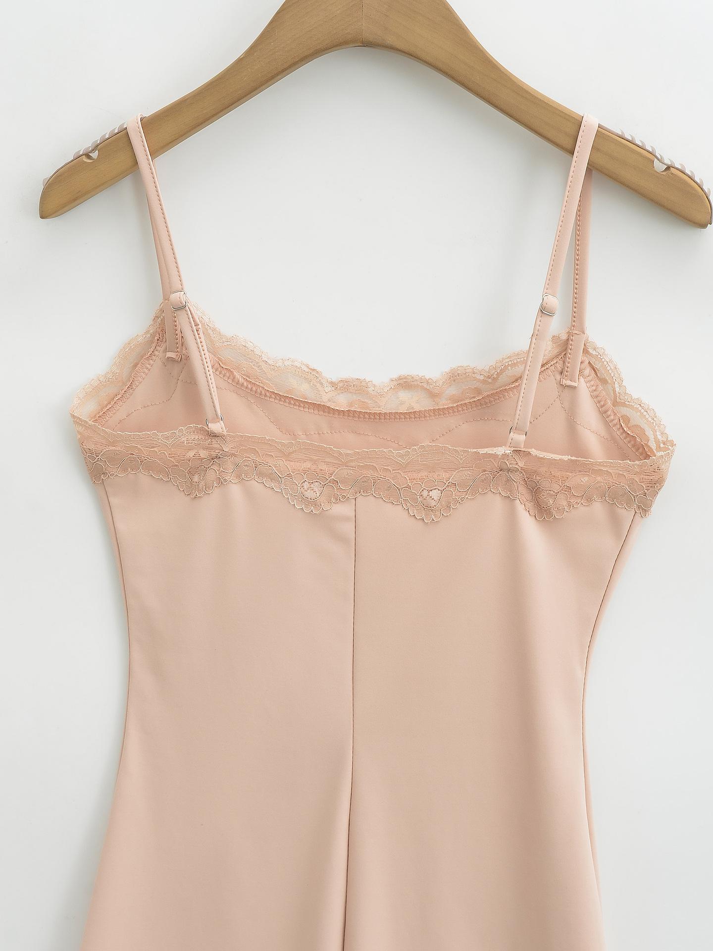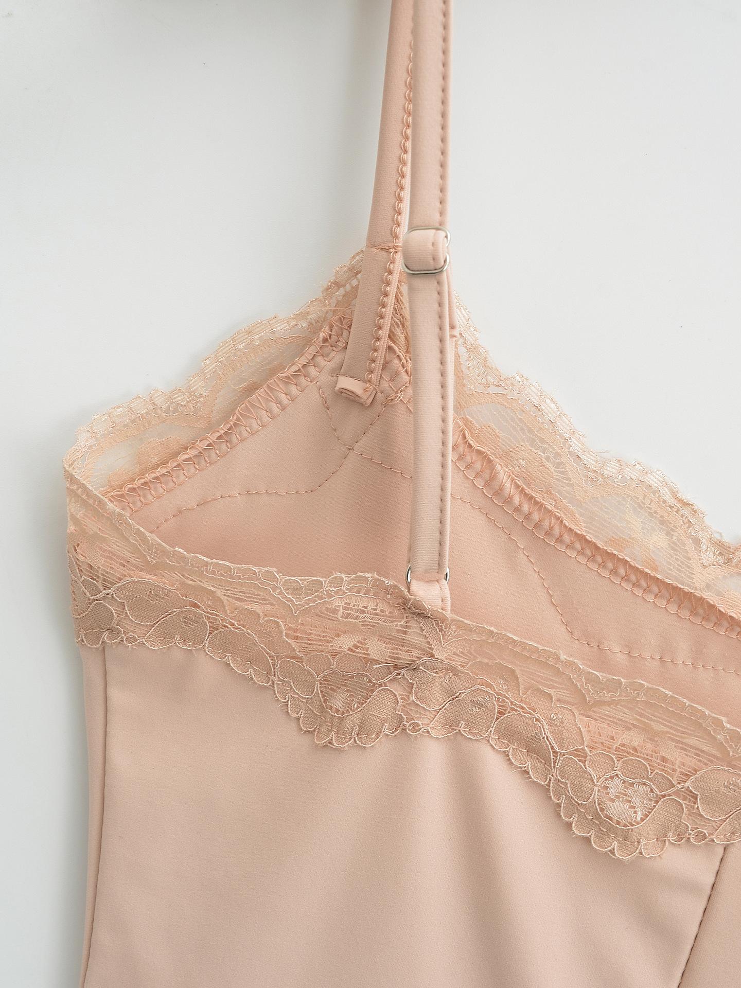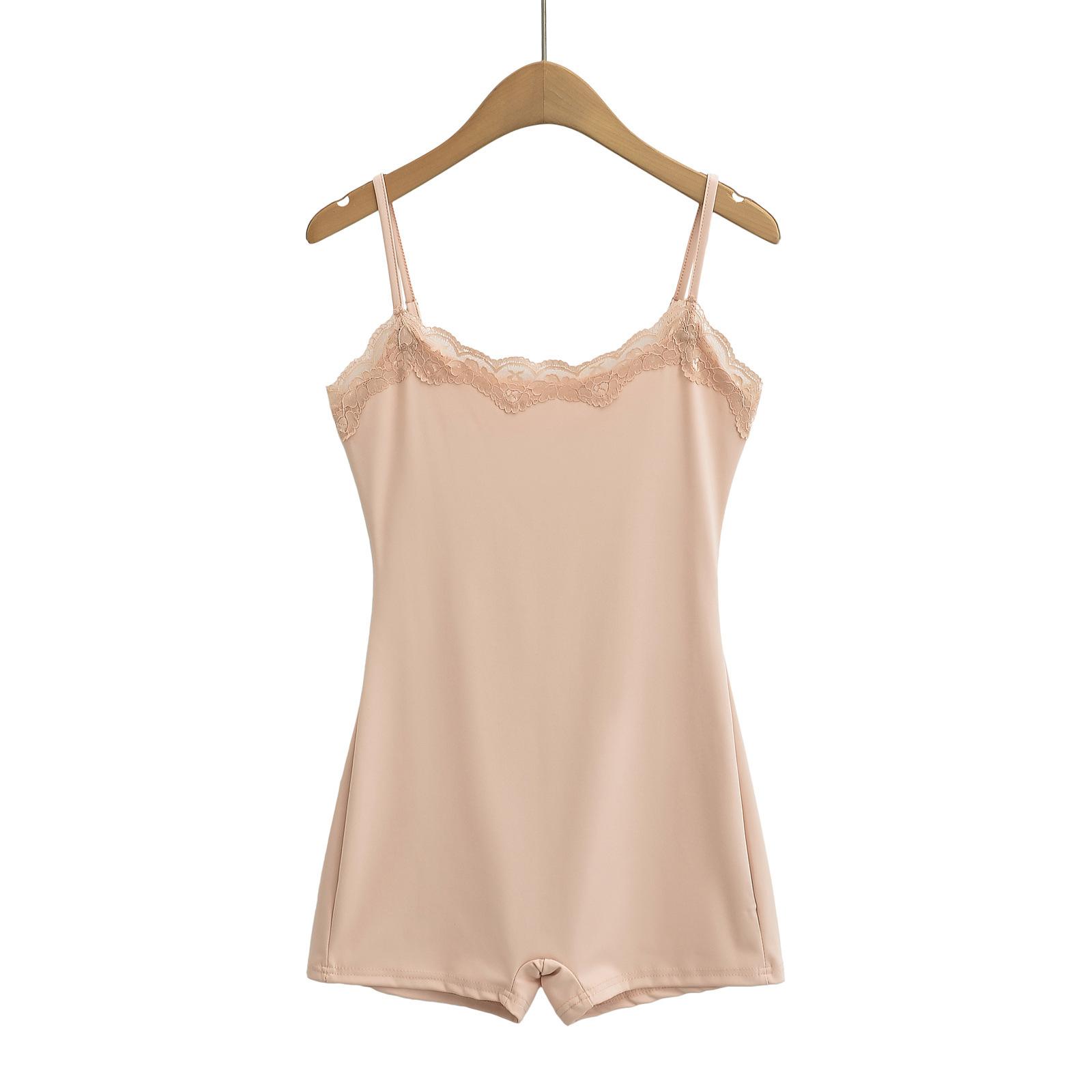 AY586-24 Pantalones cortos de tirantes ajustados elásticos con costuras de encaje para niña, estilo europeo y americano, primavera