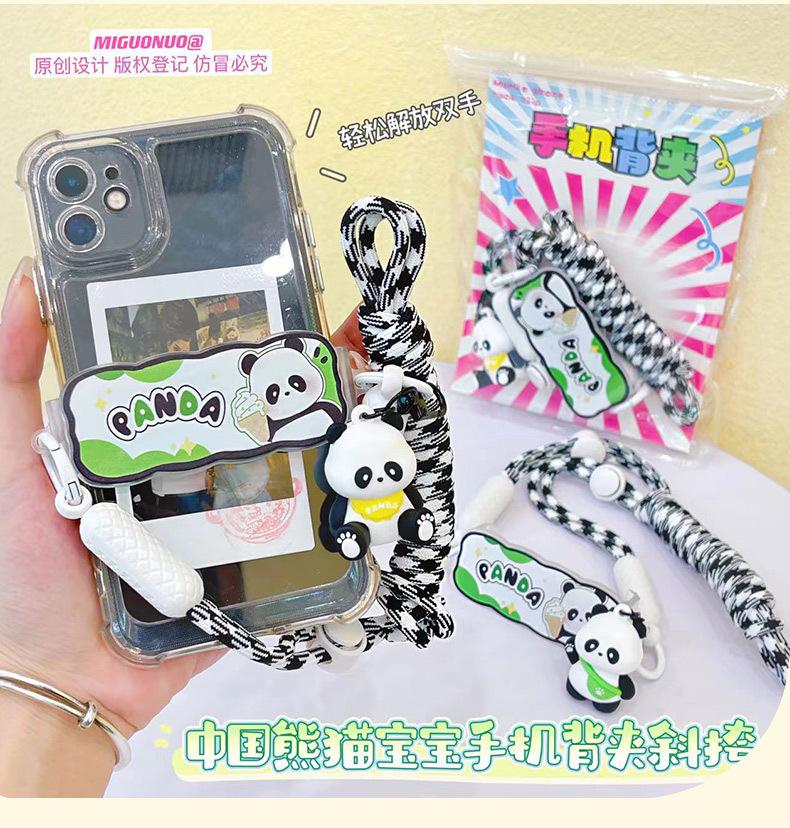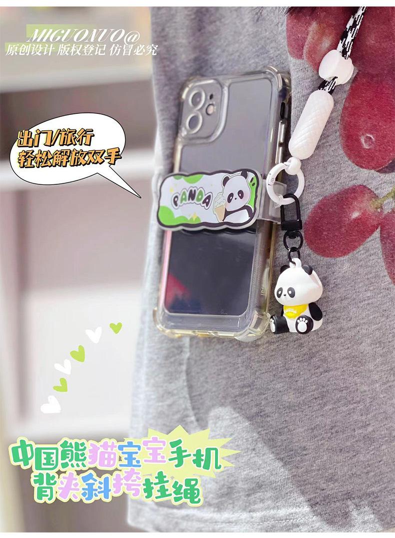 Chinese panda baby mobile phone back clip crossbody lanyard