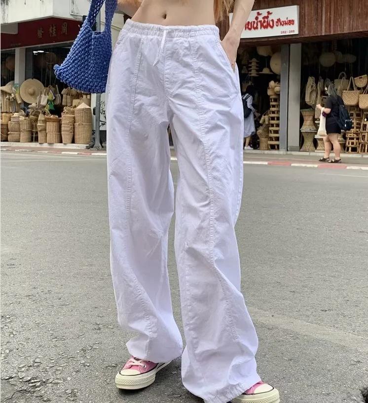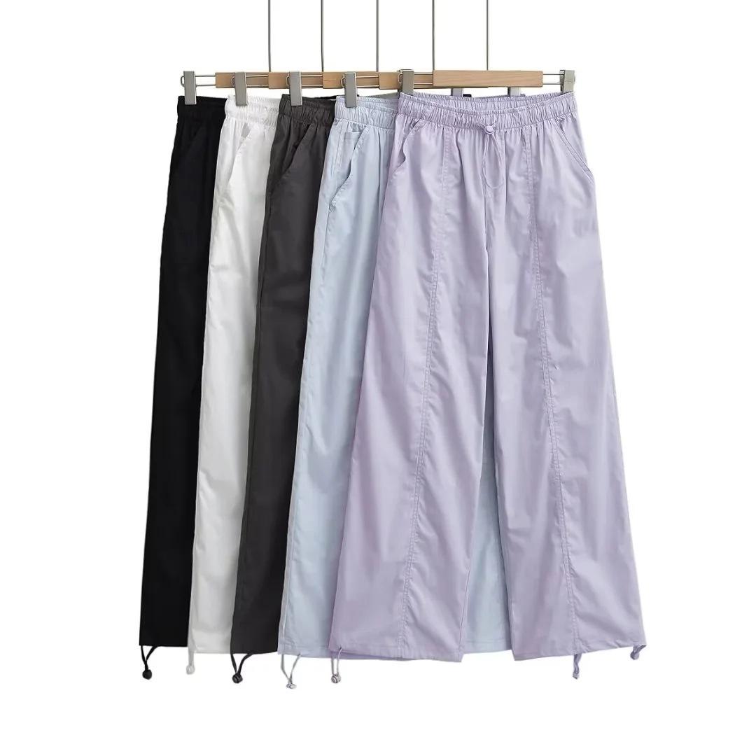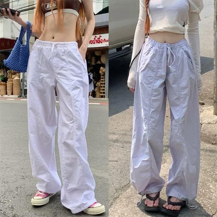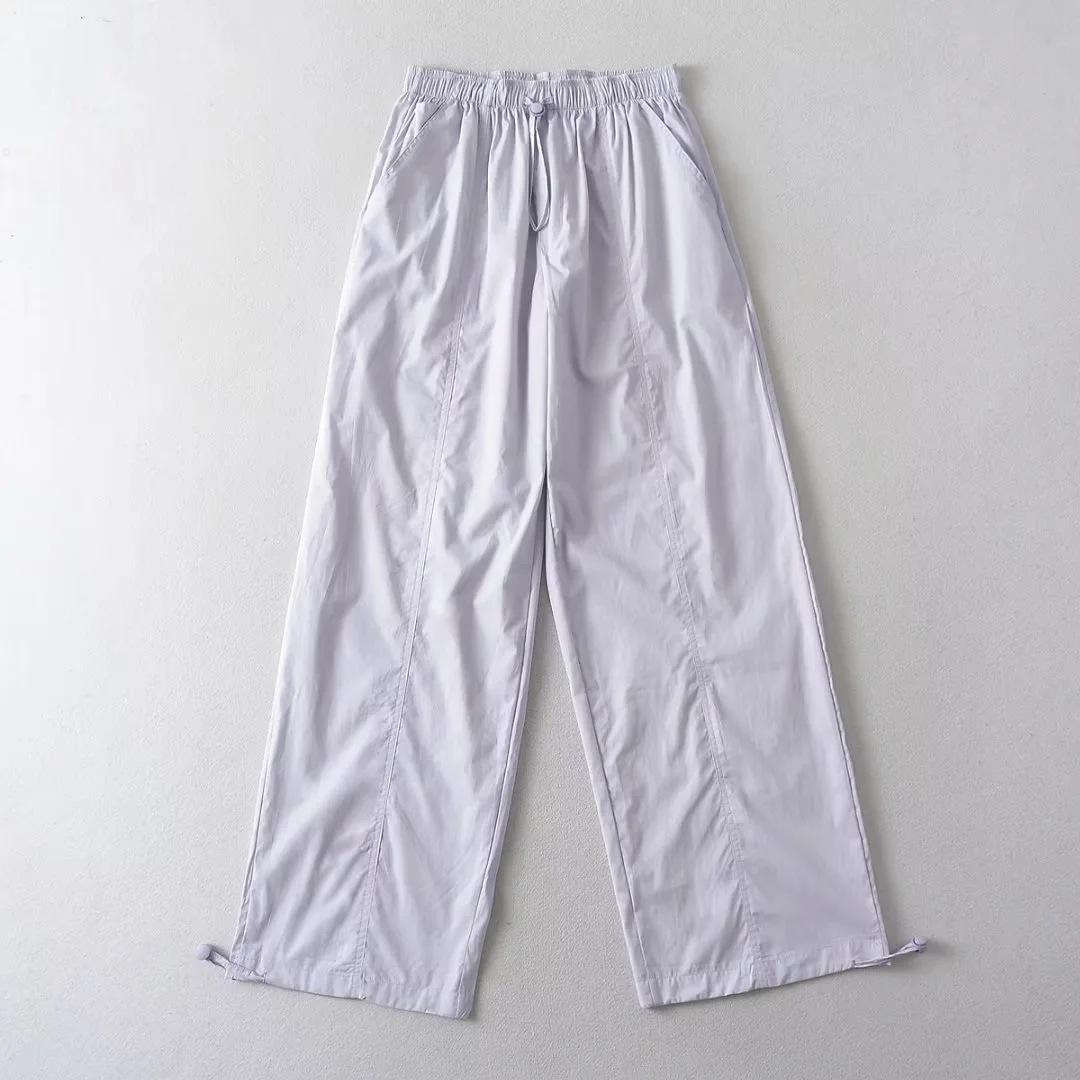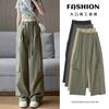 Pantalones de trabajo retro americanos de pierna ancha para mujer, pantalones largos finos con cordón y cintura elástica, pantalones de jazz informales de principios de otoño