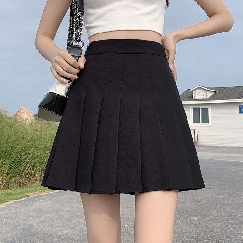 Falda plisada popular para mujer, nueva falda de talla grande, línea A, falda de estudiante, primavera y verano, versátil, para chica gordita, falda de cintura alta, para universidad