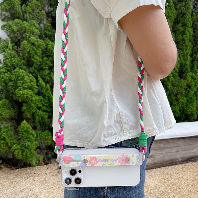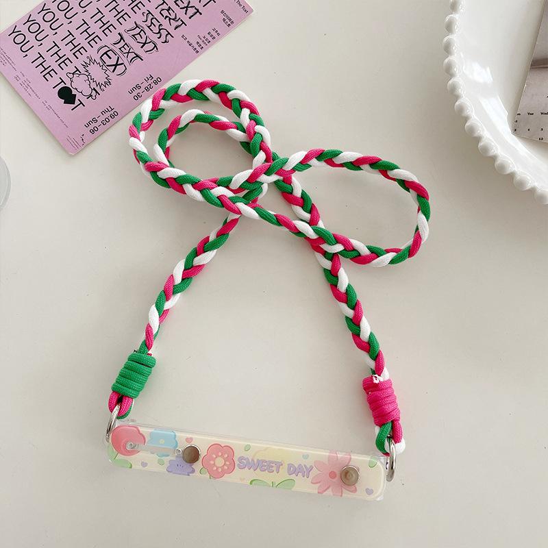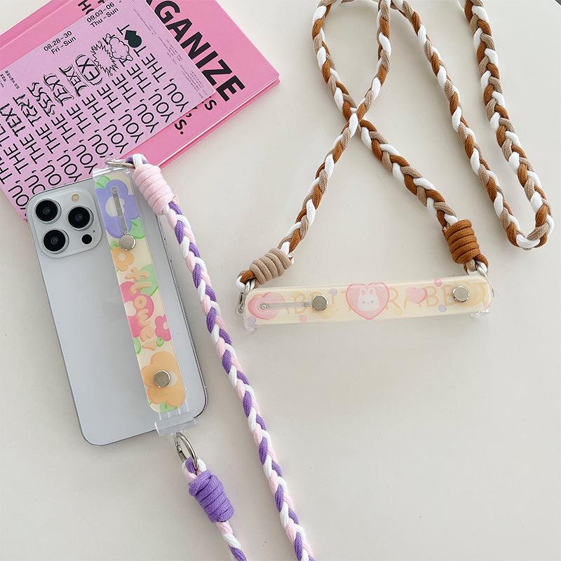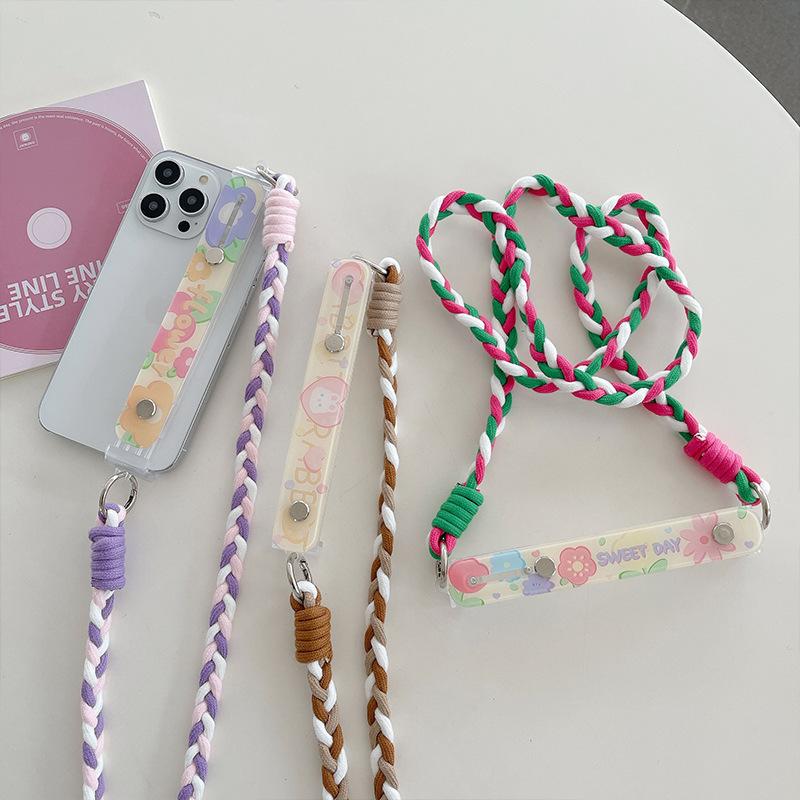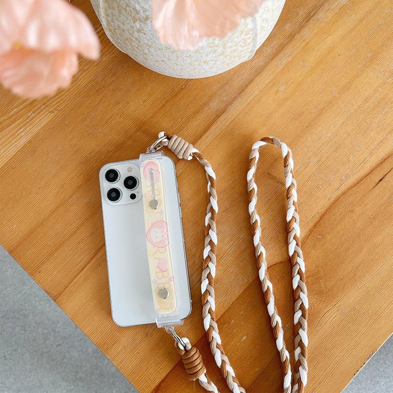 Cordón vertical para teléfono móvil con clip trasero, soporte de dibujos animados, rectangular, bonito y moderno cordón tejido para teléfono móvil con clip.