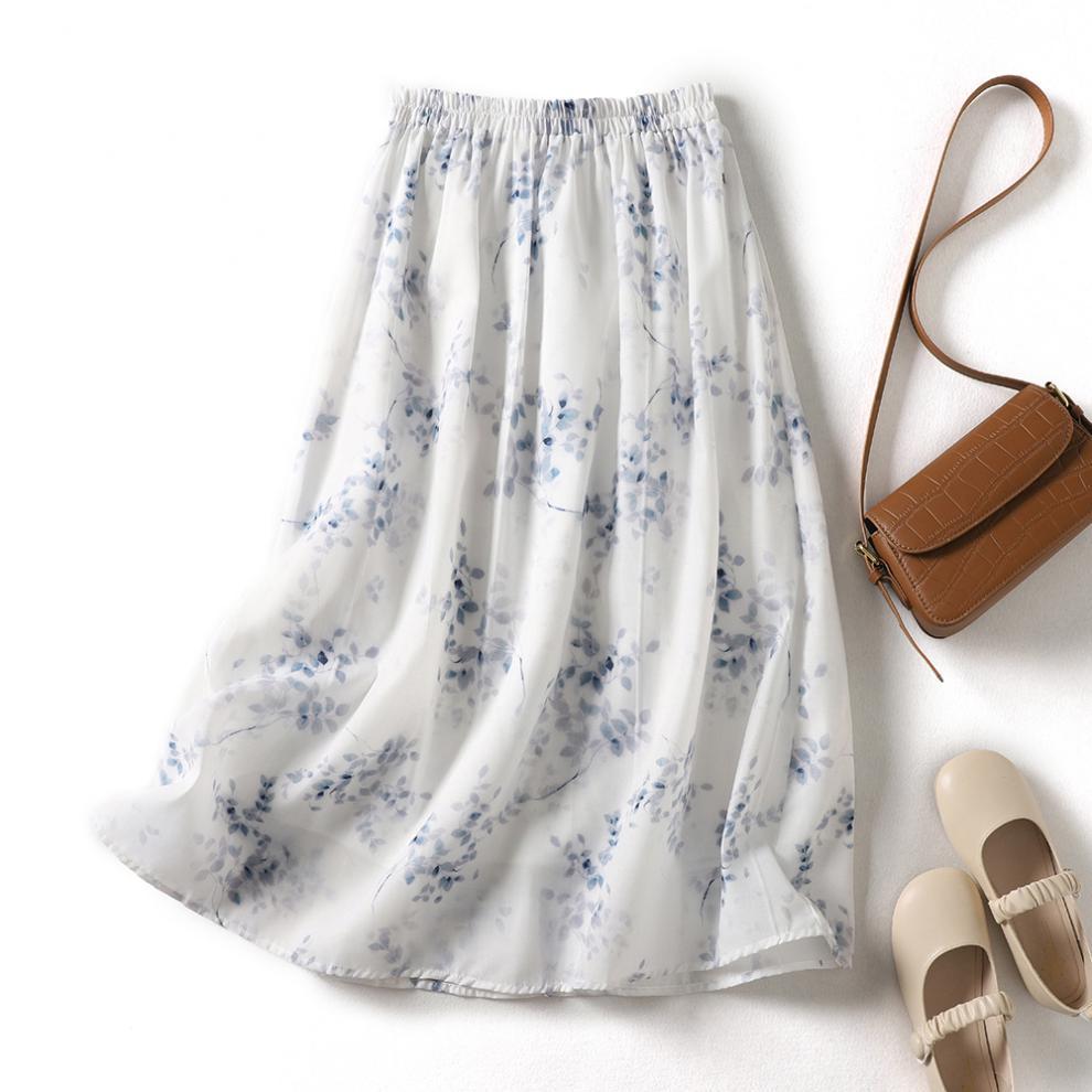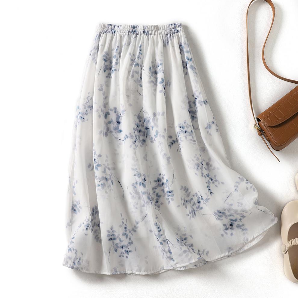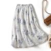 Falda Floral Fresca de Doble Capa 2025 con Cintura Elástica, Falda Acampanada de Largo Medio para Mujer, Falda Artística Versátil para Mujer