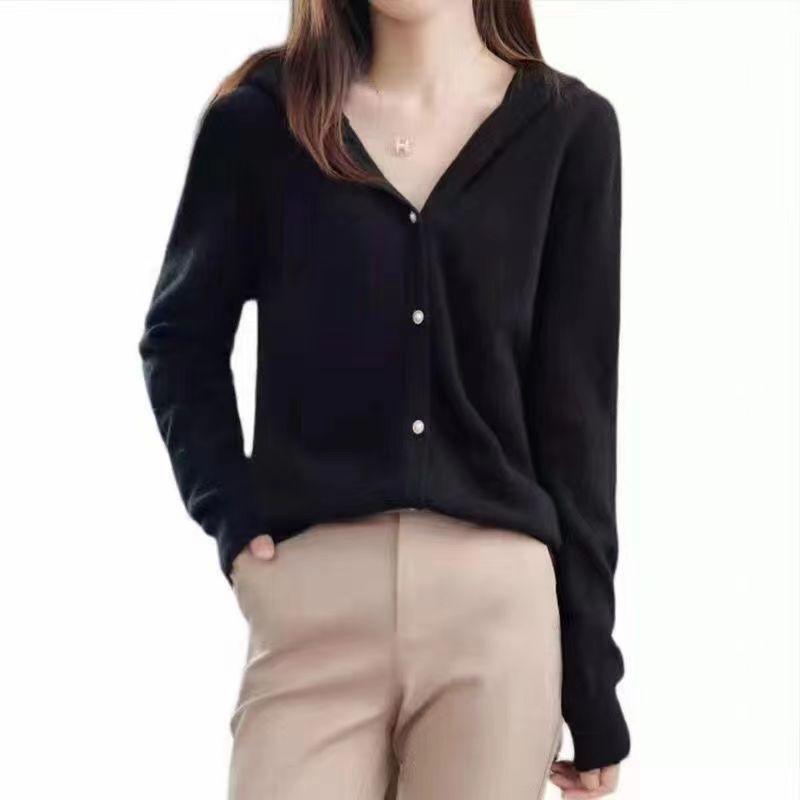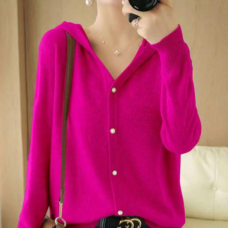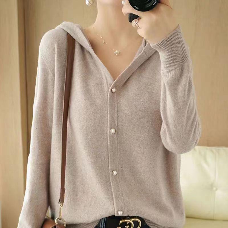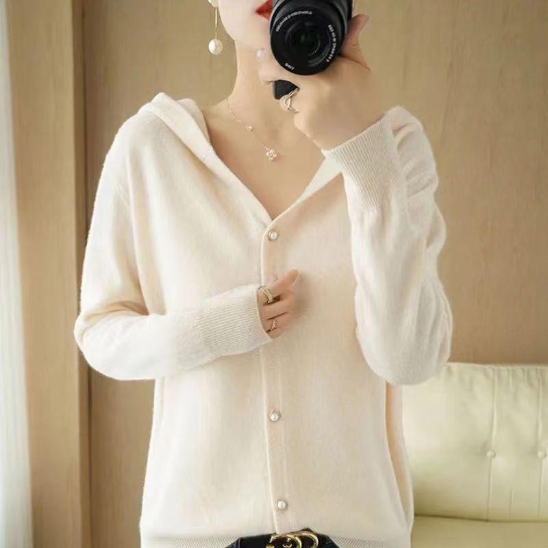Suéter tipo cárdigan de color liso de buena calidad 2022 para mujer, suéter holgado con capucha, informal, combinable con todo.