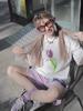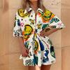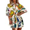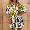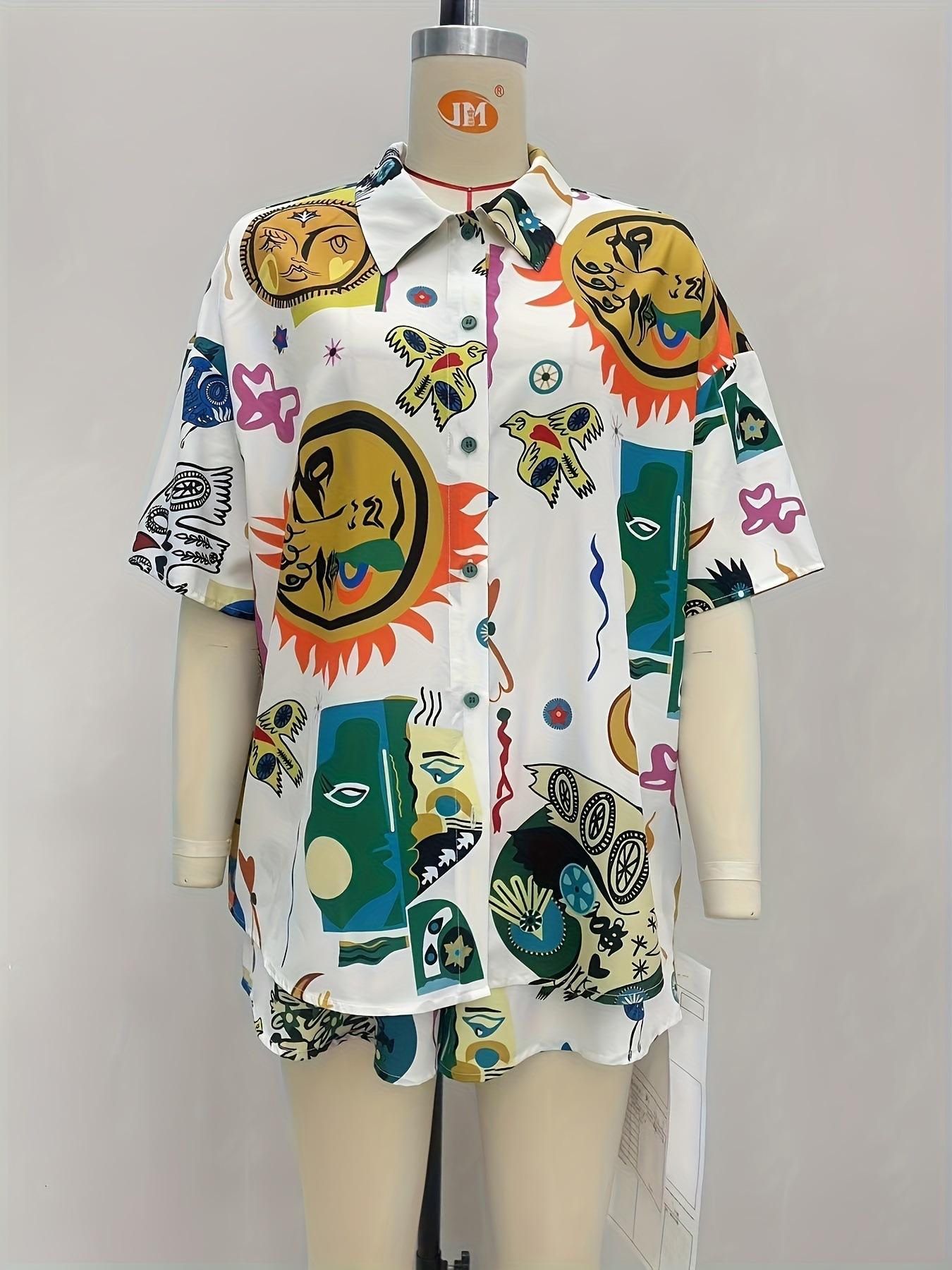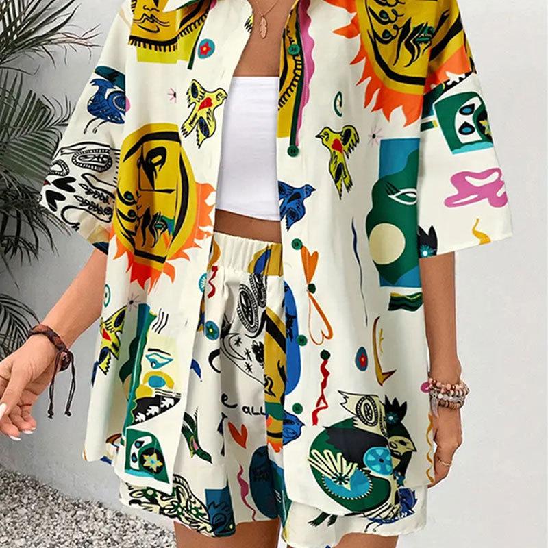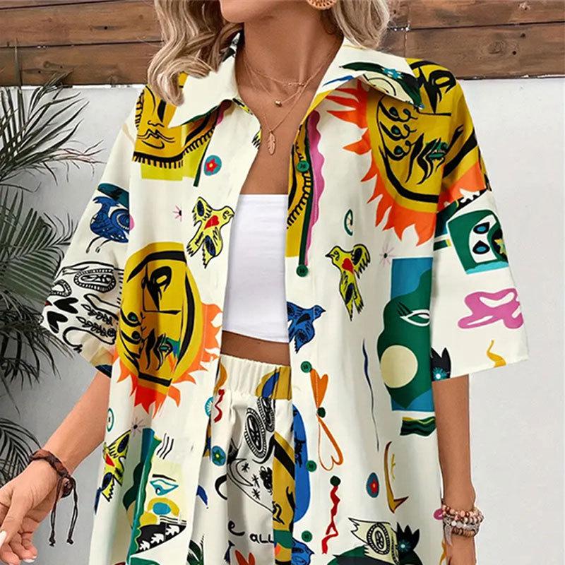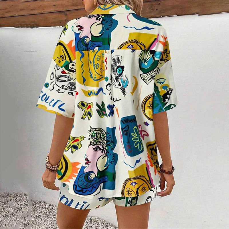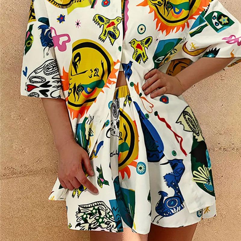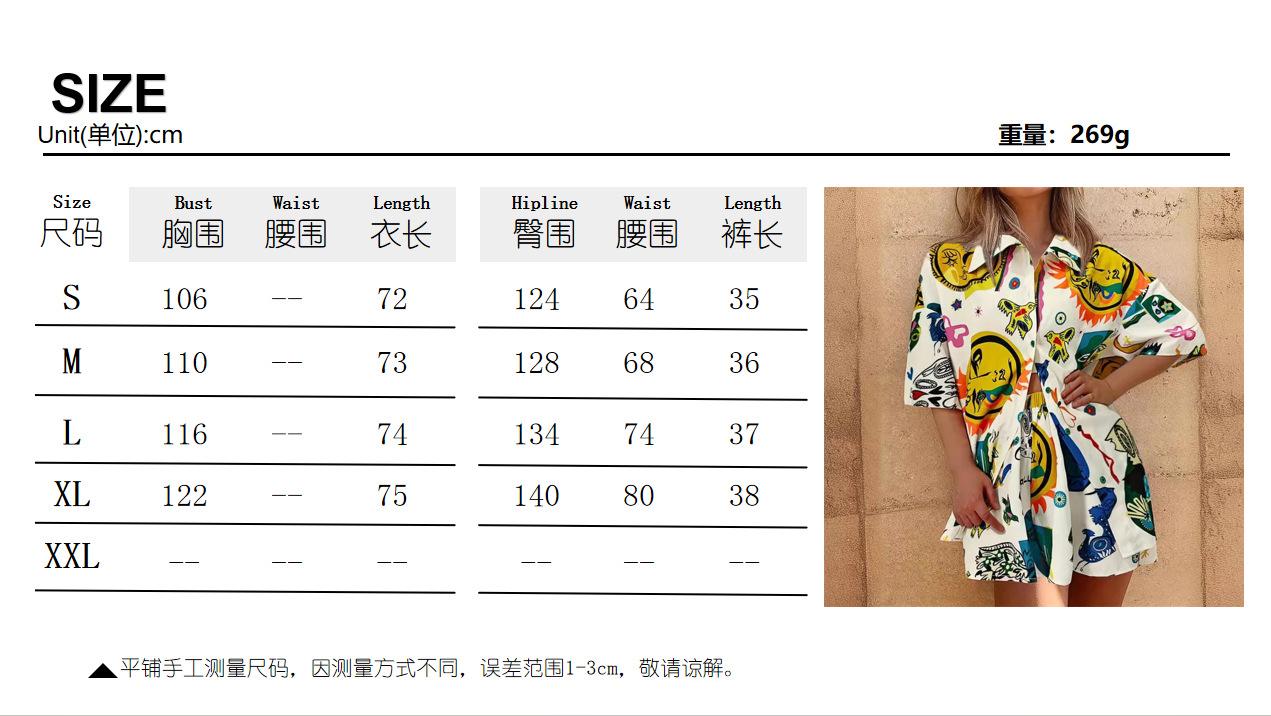 Cárdigan Camisa Shorts Conjunto de Dos Piezas Estampado Graffiti Comercio Exterior Transfronterizo Pantalones Casuales en Contraste Traje Casual Ropa de Primavera y Otoño para Mujer