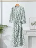Vestido de seda estampado de verano para mujer, vestido de seda morera de siete mangas con cuello en V y largo medio, nuevo vestido de hadas para vacaciones
