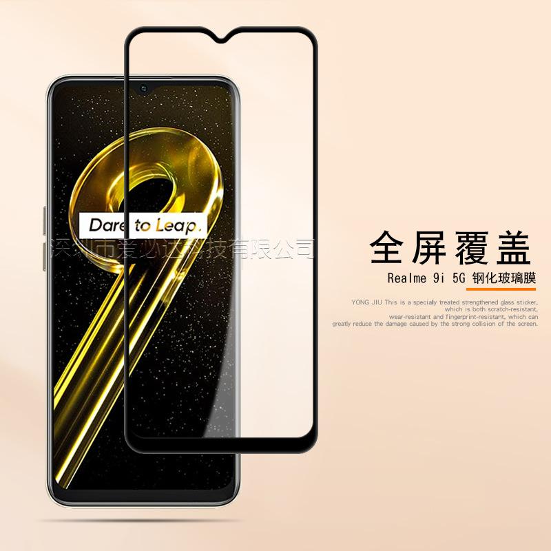 Aplicable a la película de vidrio templado de pantalla completa real me 9i 5G Realme 9i 5G dos películas de vidrio templado de pegamento completo de pantalla de seda fuerte