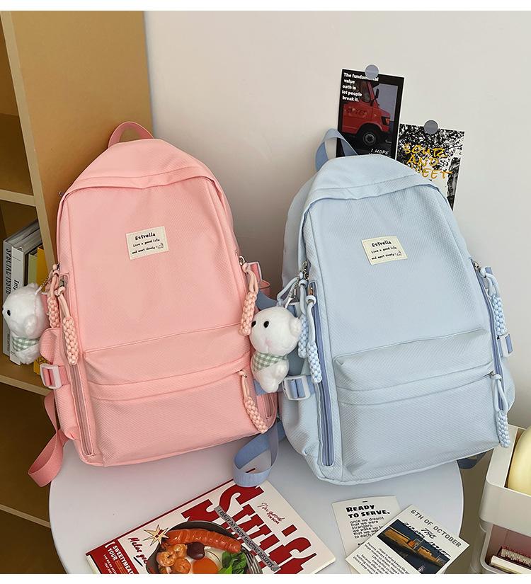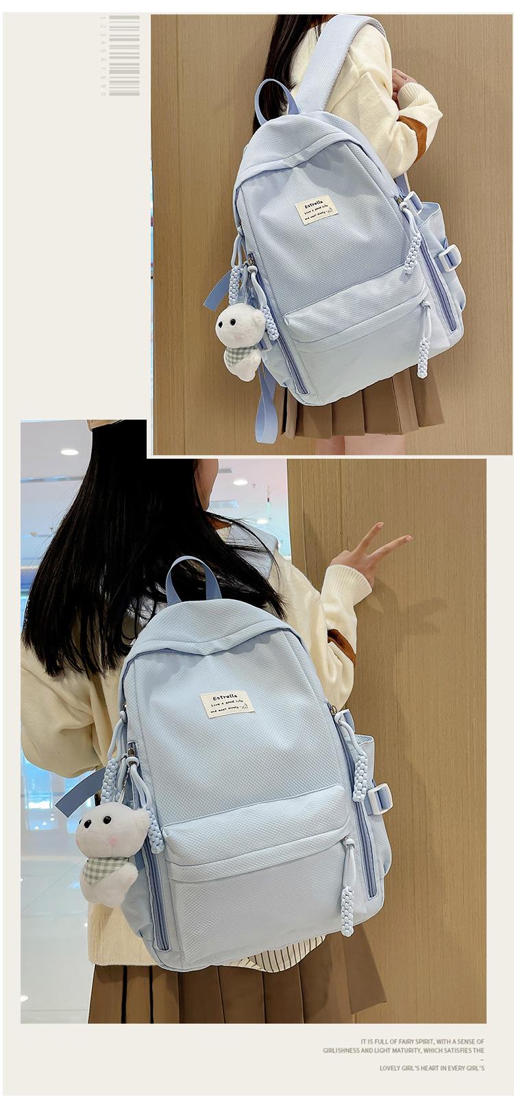 Mochila para estudiantes de secundaria, estilo coreano, estilo preppy, ligera, de gran capacidad, versátil para el campus.