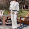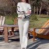Otoño 2023, nuevo traje de suéter informal holgado con cuello redondo de color contrastante de moda de comercio exterior transfronterizo de Amazon para mujer de Europa y América