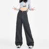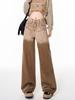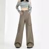 Pantalones vaqueros color marrón chocolate para mujer, rectos, sueltos, de cintura alta, adelgazantes, informales, de trabajo, de pierna ancha, primavera 2024