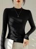 Camiseta básica de manga larga y cuello redondo de color sólido para mujer 23 Otoño e Invierno Nueva, holgada, con efecto adelgazante, pequeño cuello alto tipo jersey con camiseta interior