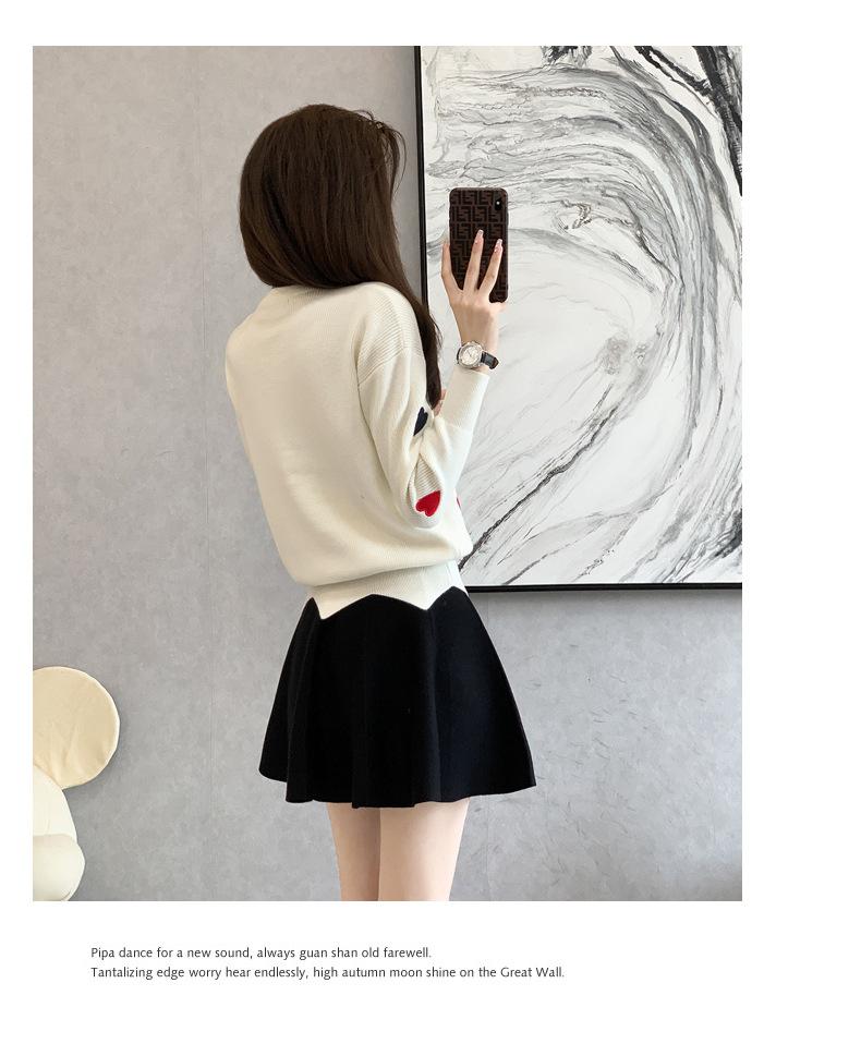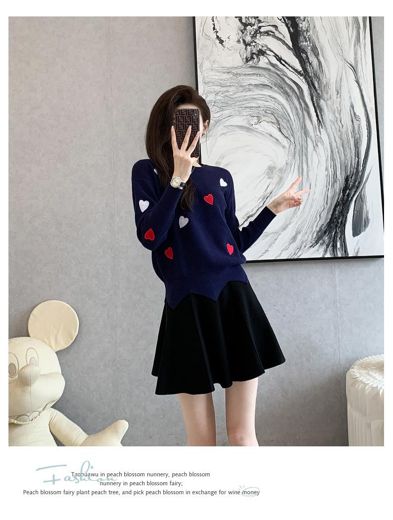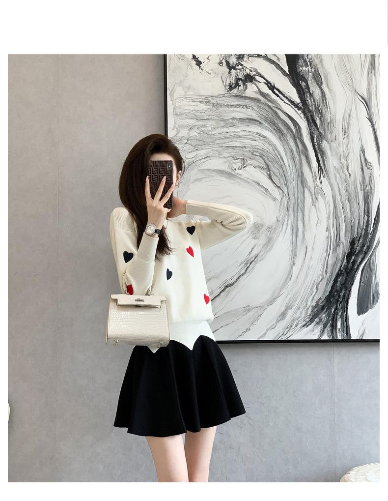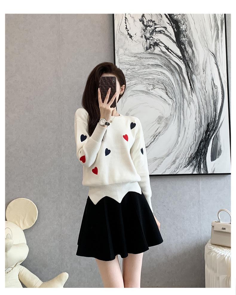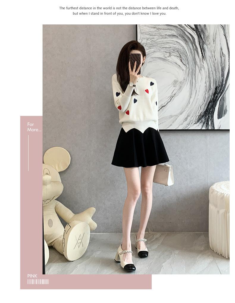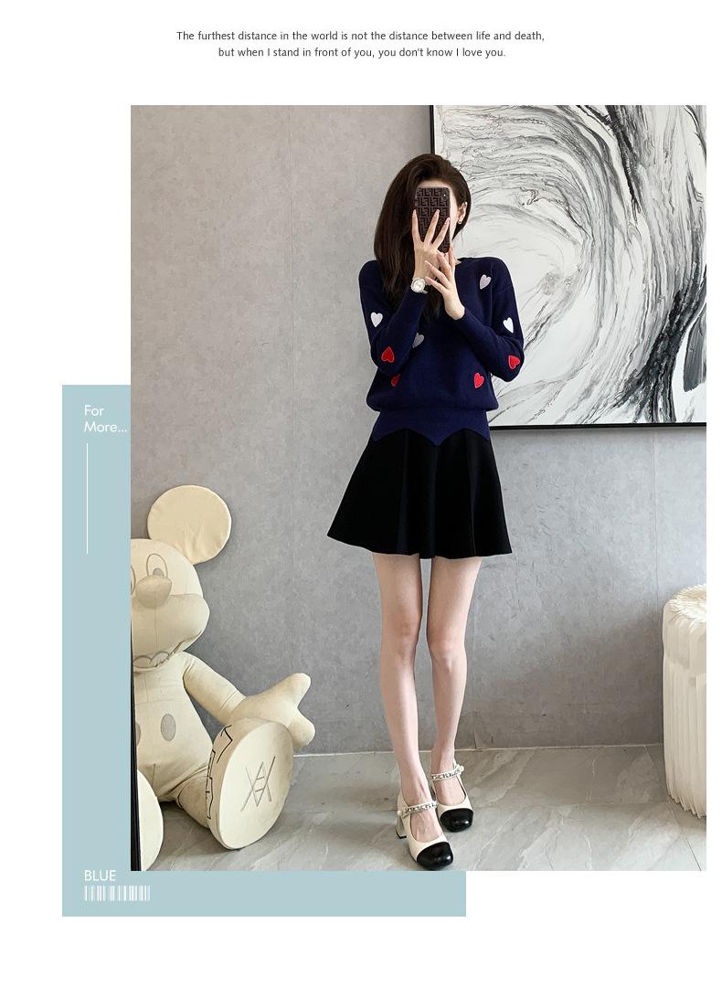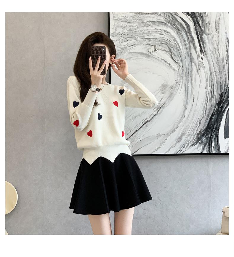 Traje Casual de Moda para Mujer 2024 Otoño e Invierno Suéter Bordado de Corazoncito de Durazno Falda Línea A Traje de Punto de Dos Piezas Falda