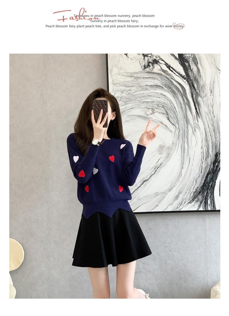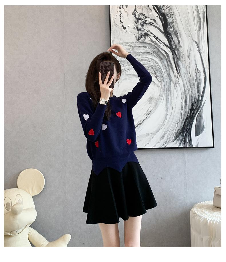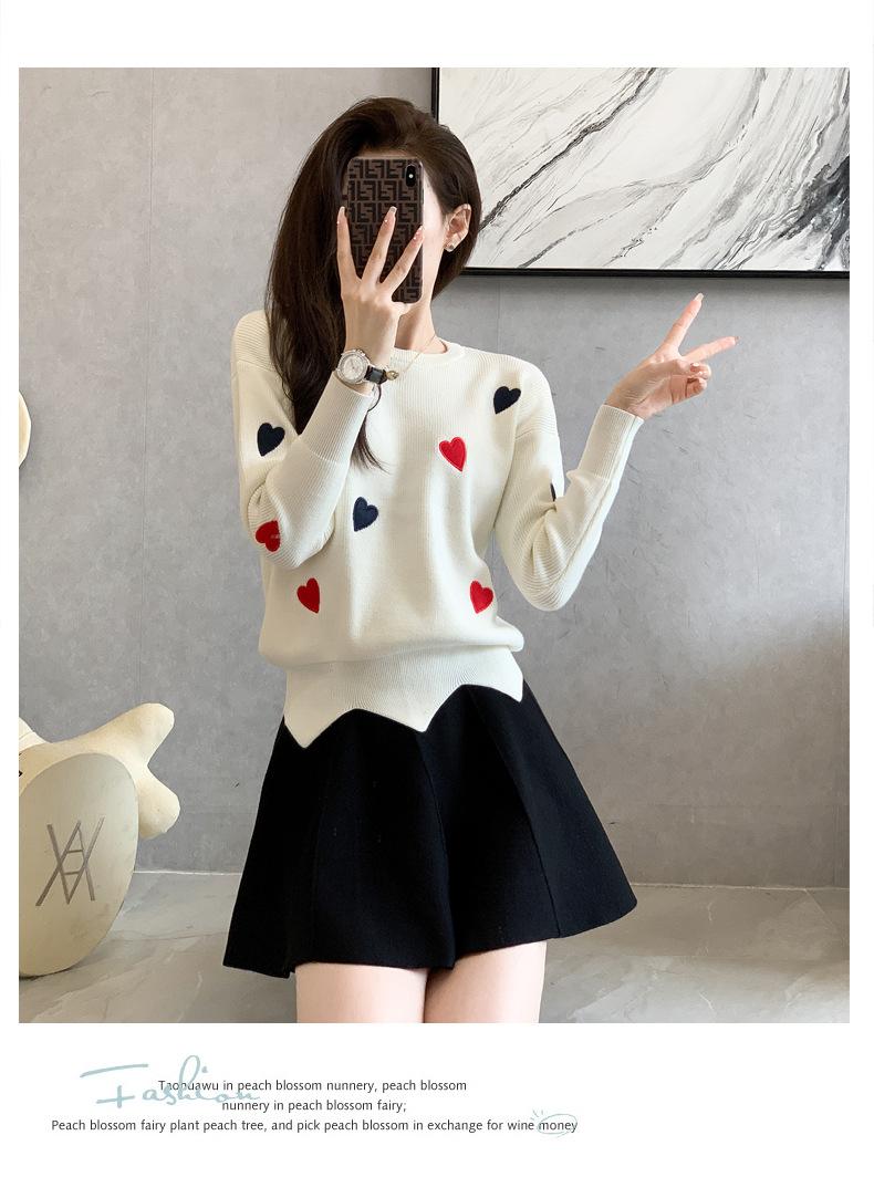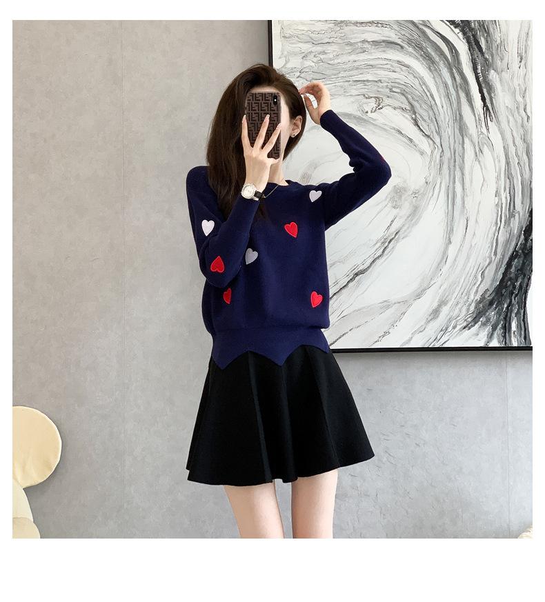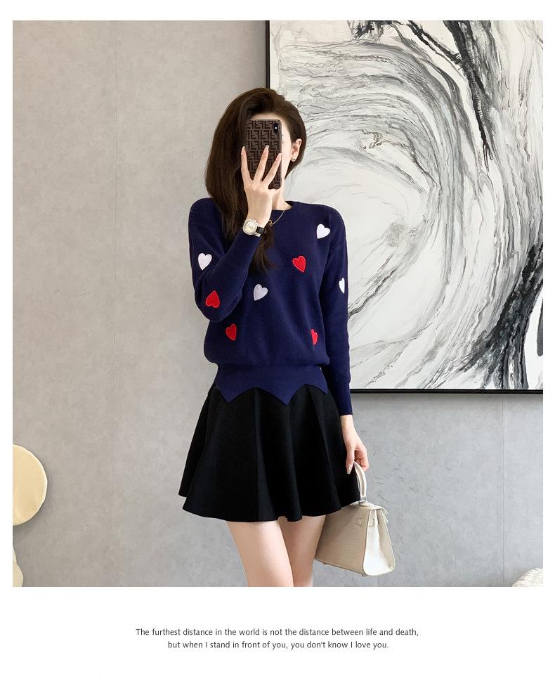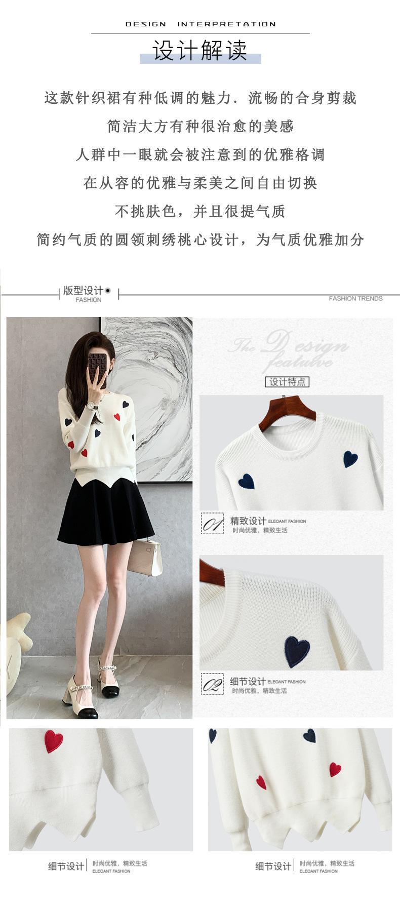 Traje Casual de Moda para Mujer 2024 Otoño e Invierno Suéter Bordado de Corazoncito de Durazno Falda Línea A Traje de Punto de Dos Piezas Falda