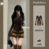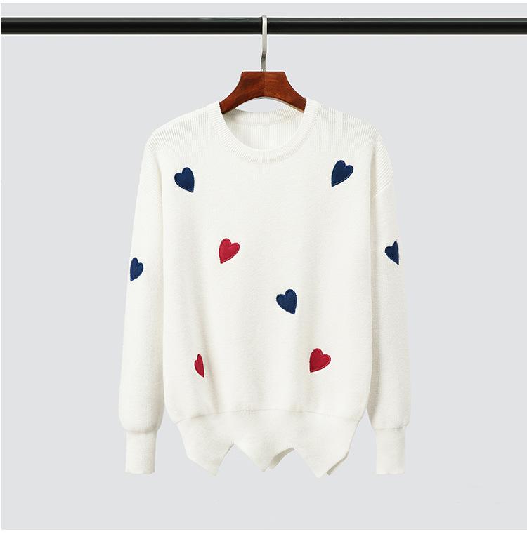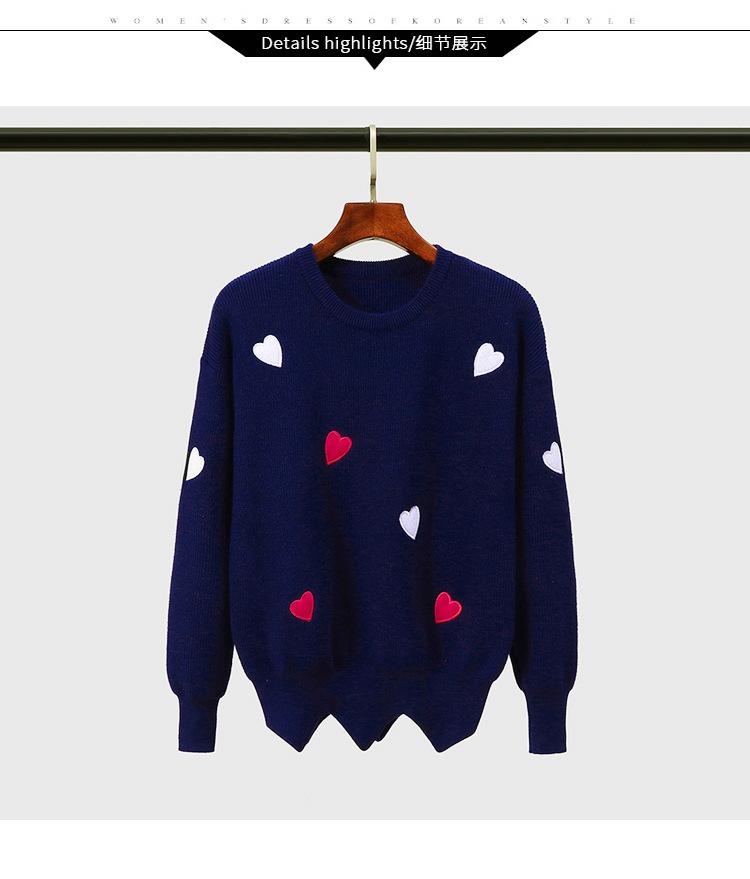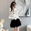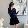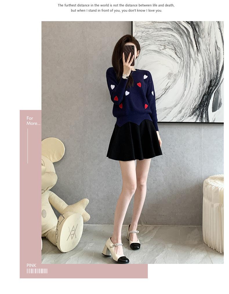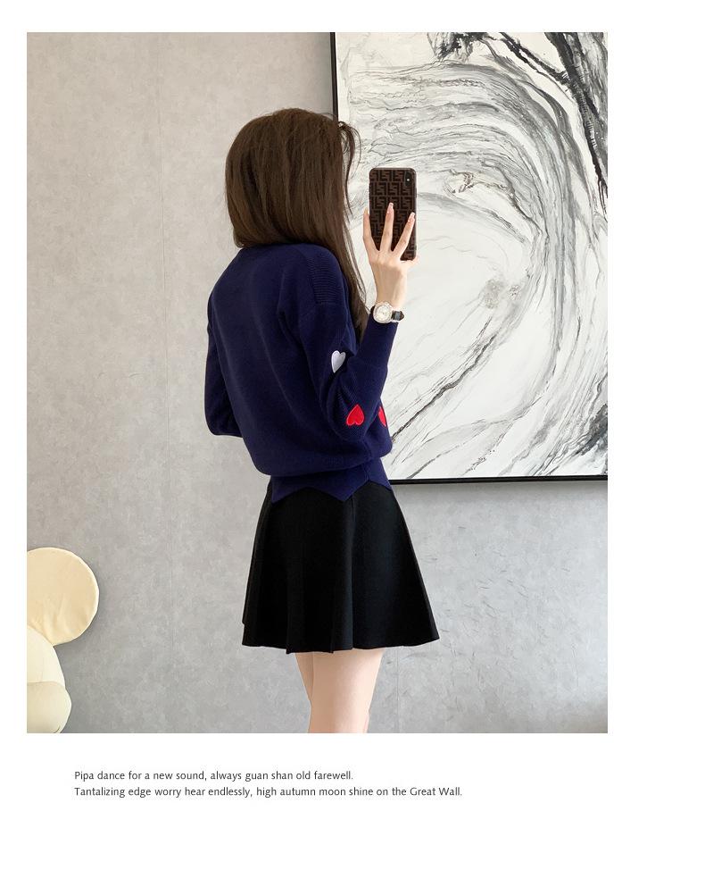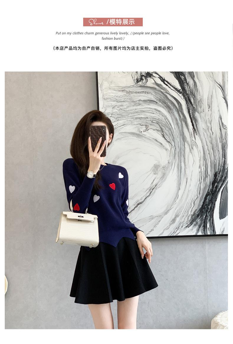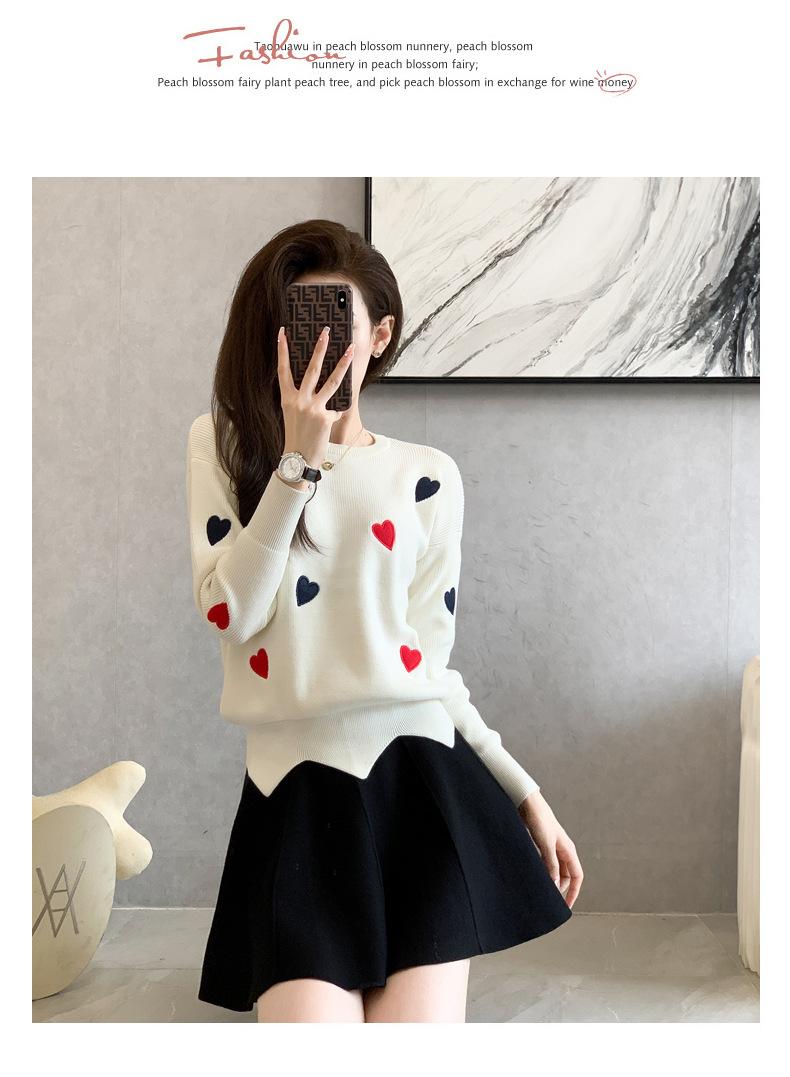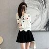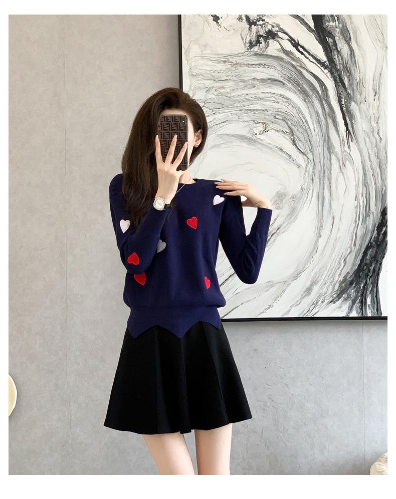 Traje Casual de Moda para Mujer 2024 Otoño e Invierno Suéter Bordado de Corazoncito de Durazno Falda Línea A Traje de Punto de Dos Piezas Falda