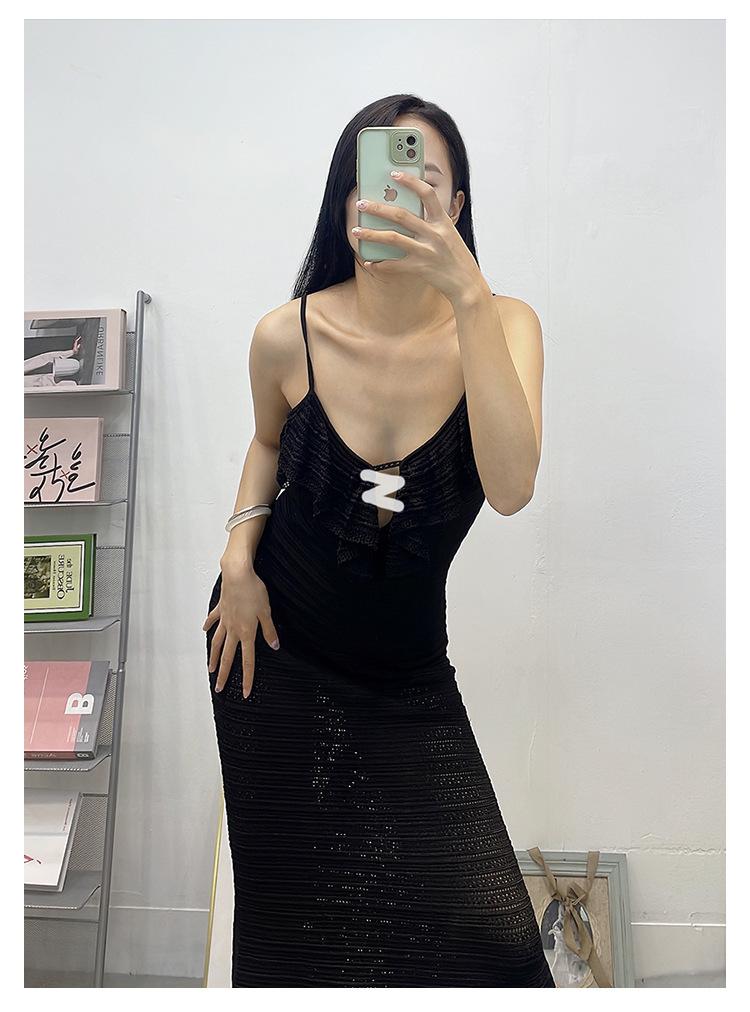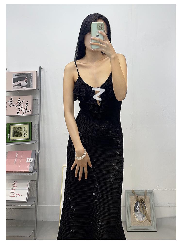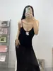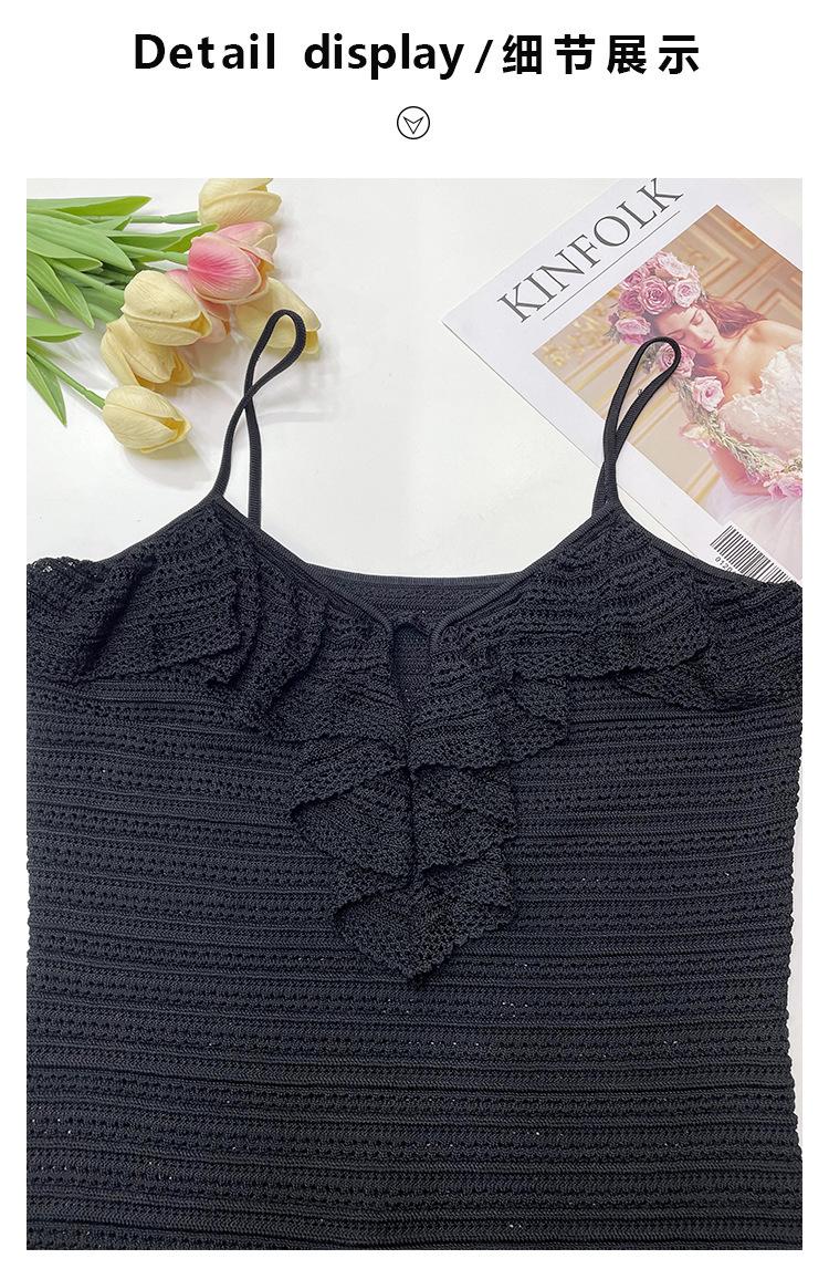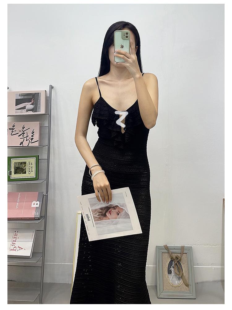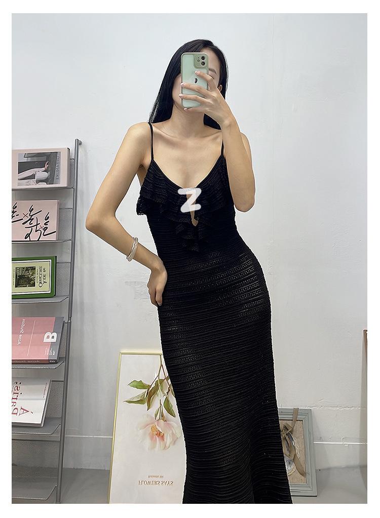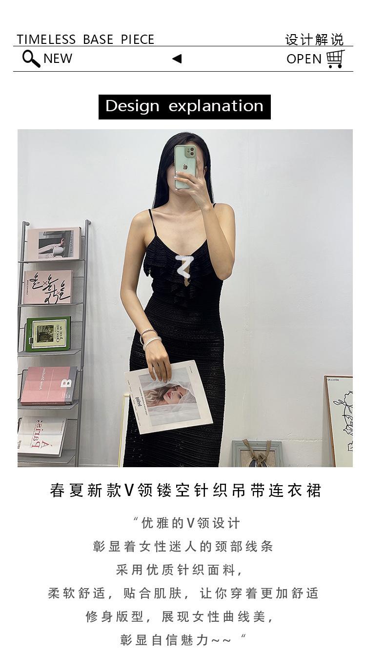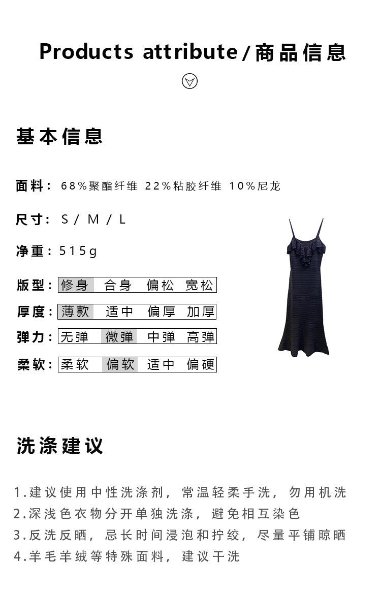 SP Shenzhen Nanyou - Vestido de verano de alta gama para mujer, estilo francés clásico, negro, ajustado, de punto, con cola de pez